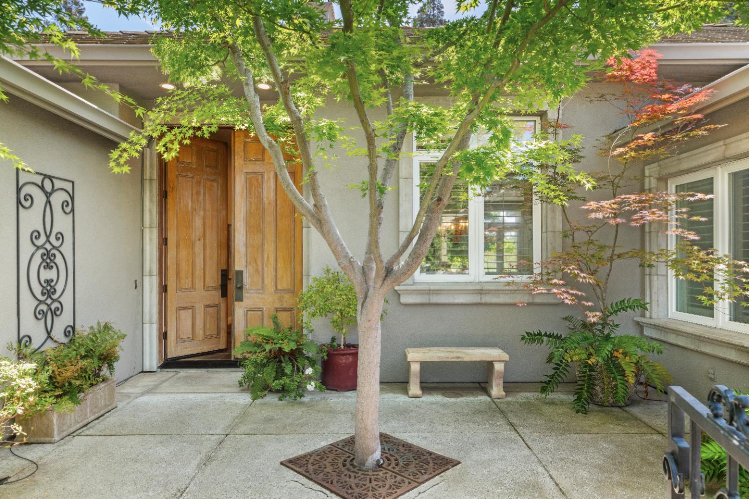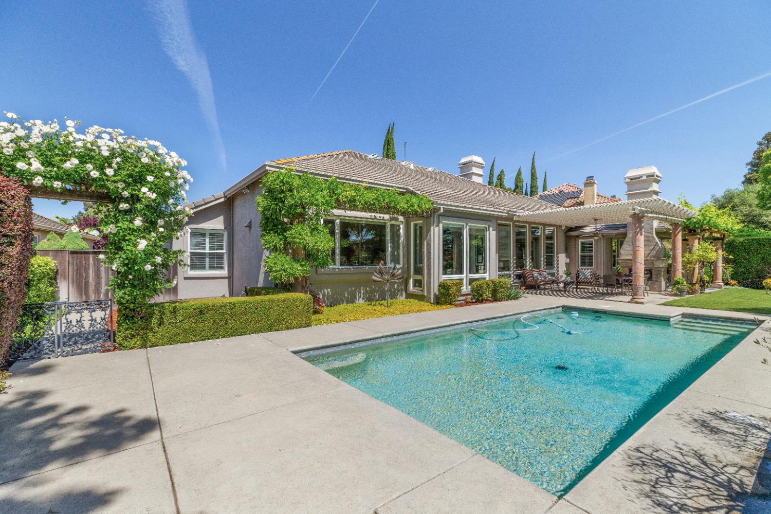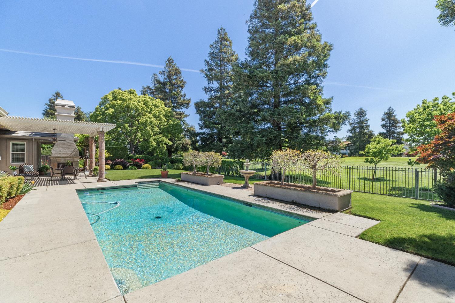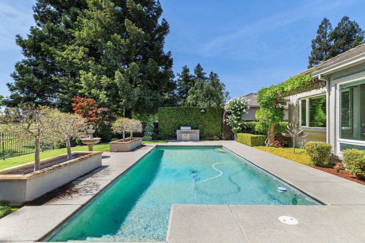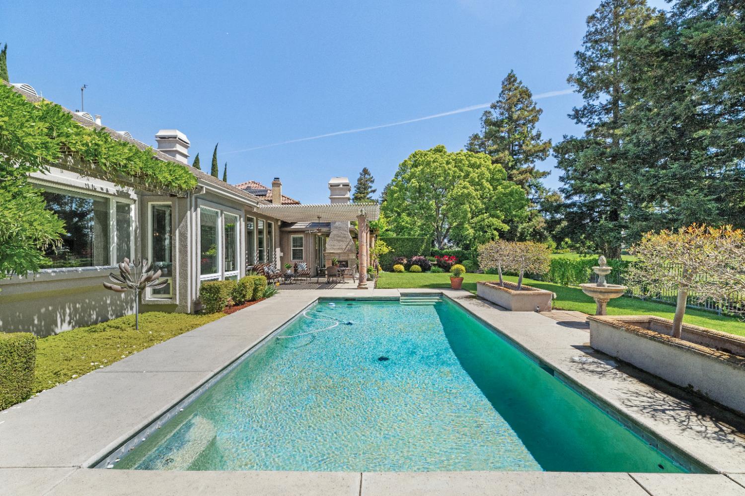 Experience refined living in this mostly single-story masterpiece, perfectly positioned on the golf course with wonderful, picturesque views. Custom-built by a builder for his own family, this exceptional home showcases superior quality, thoughtful design and distinctive craftsmanship throughout. Enter through a private courtyard and large, grand, wood antique double doors into a warm and inviting space. Inside youll find walls of windows that flood the home with natural light, soaring, dramatic, high ceilings, spacious, generous living areas and a highly desirable floor plan featuring primarily single-story living, with only a generous loft upstairs. The formal living room impresses with a stunning coffered ceiling, a beautiful cast stone fireplace, a built-in wall of bookshelves and cabinets and expansive windows overlooking the extensive patio areas, desirable pool and lush golf course beyond. The thoughtfully remodeled kitchen offers abundant counter space, beautiful cabinetry and picturesque views of the pool. A charming breakfast nook provides the perfect spot for casual dining. The luxurious primary suite features its own private patio and a cozy fireplace - ideal for peaceful evenings. Three additional bedrooms provide flexibility, including one currently used as an office and another en suite bedroom, offering the option for dual primary suites. Upstairs, a large loft space serves perfectly as a game room, fitness area or additional office. Set on almost a 1/3 acre lot, the backyard is designed for both relaxation and entertaining. Enjoy expansive patio areas, a dramatic double-sided fireplace and a refreshing pool for summertime enjoyment. Mature trees and a generous setback from the course ensure privacy while preserving breathtaking views. In addition, the four car garage provides ample room for vehicles, storage and hobbies. This is a rare opportunity to own a truly unique and desirable single-story golf course home, where elegance, comfort and lifestyle come together beautifully.