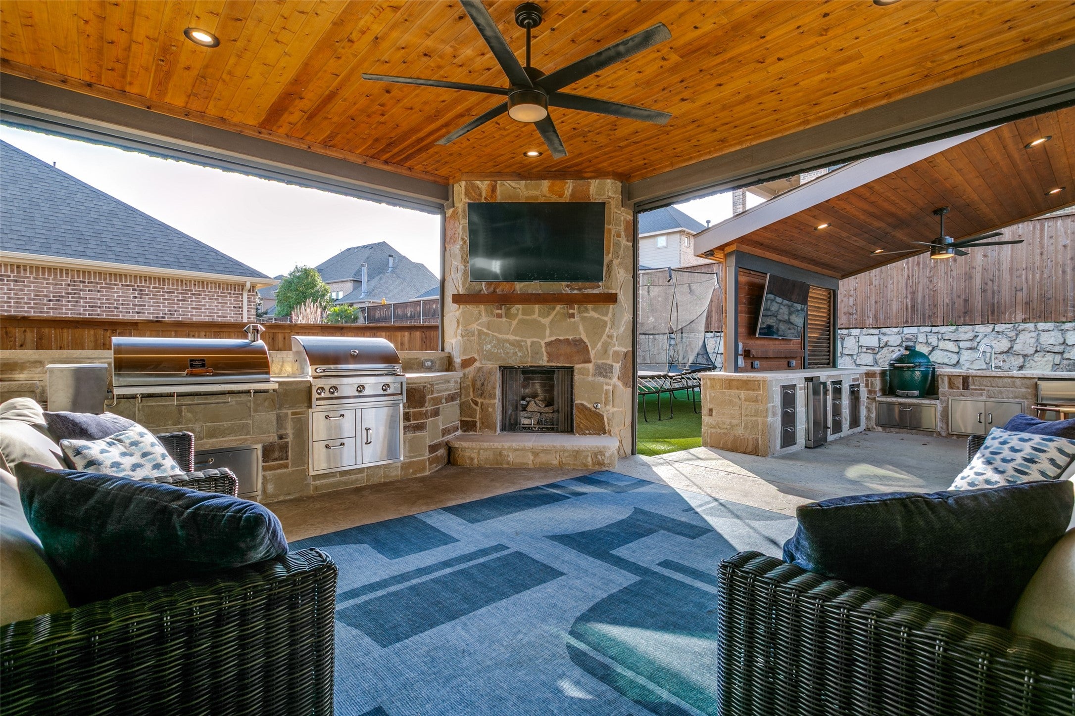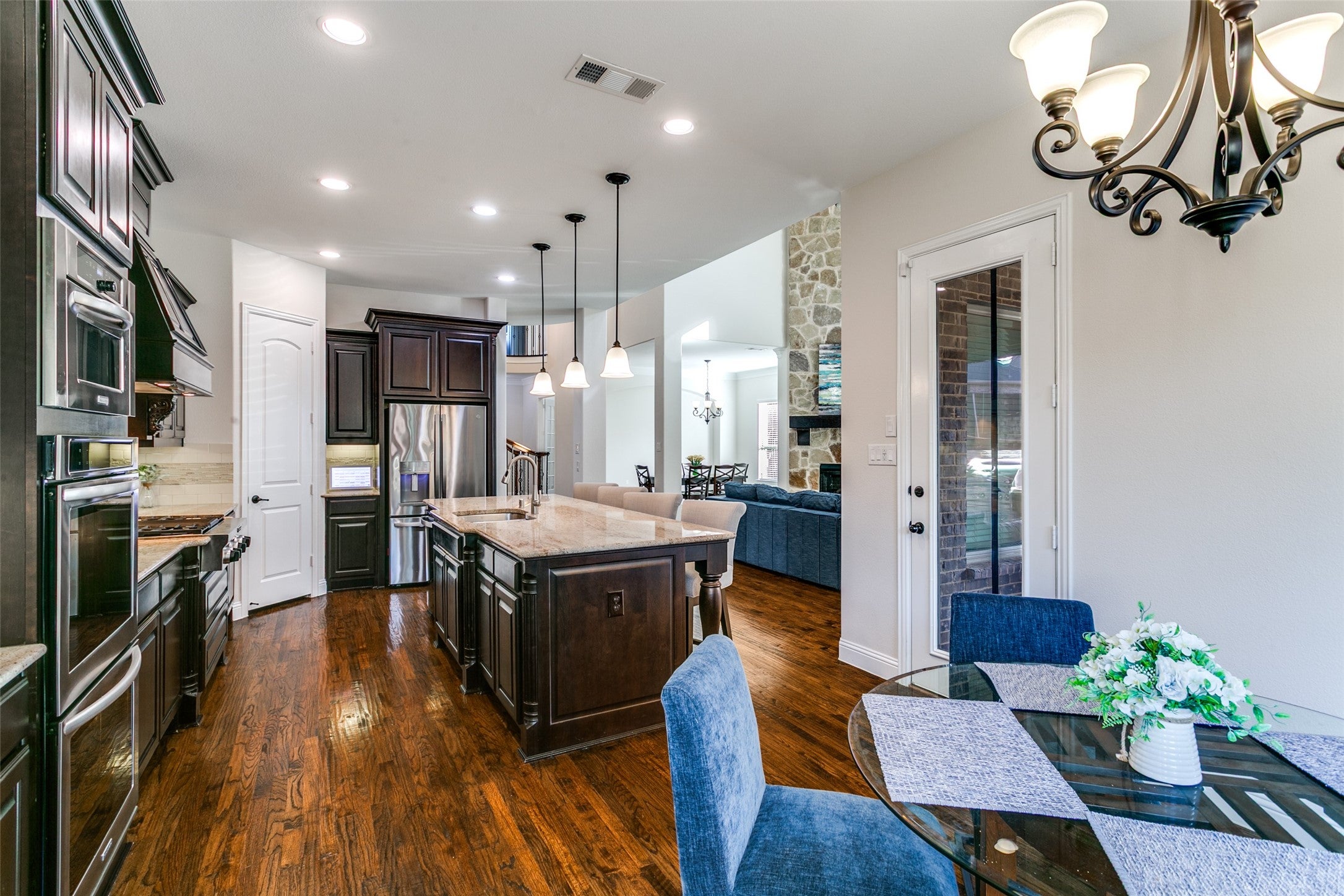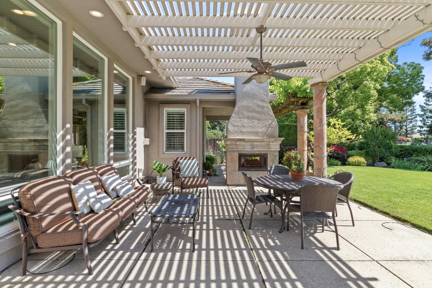 This exceptional original-owner home blends luxury, comfort, and functionality across 5 bedrooms, 5.5 bathrooms, multiple living and dining areas, a dedicated office, game room, media room, and a 3-car garageall centered around a beautiful pool and spa.The grand entry showcases rich hardwood floors and cathedral ceilings that flood the home with natural light. A private office with French doors sits at the front of the home. The open-concept living and dining areas flow seamlessly into the well-appointed kitchen featuring stainless steel appliances, gas cooktop, double ovens, granite countertops, and a beautiful tile backsplash. The breakfast nook overlooks the backyard oasis and opens to the family room.The downstairs primary suite offers a newly renovated spa-inspired bathroom with a striking light fixture, soaking tub, oversized shower, upgraded cabinetry, and dual walk-in closets. A second downstairs bedroom with an ensuite bath provides ideal guest accommodations.Upstairs includes a spacious game room, media room, three bedrooms, 3 full baths, and a versatile study area. Additional highlights include an oversized walk-in attic for exceptional storage.The outdoor living space is designed for year-round enjoyment with a covered patio, remote-control sunscreens, gas grill, pellet smoker, and a cozy fireplace. The outdoor kitchen area sits just steps from the sparkling pool and spa. Conveniently located near schools, parks & golf, this home is the perfect blend of elegance and everyday comfort.