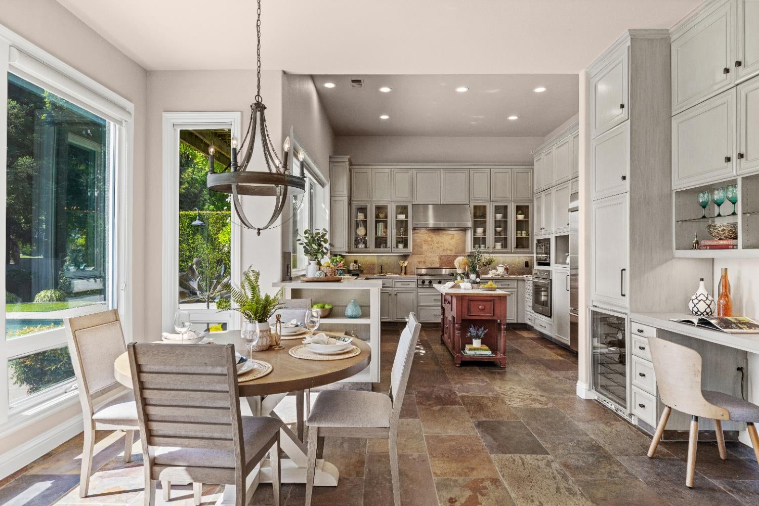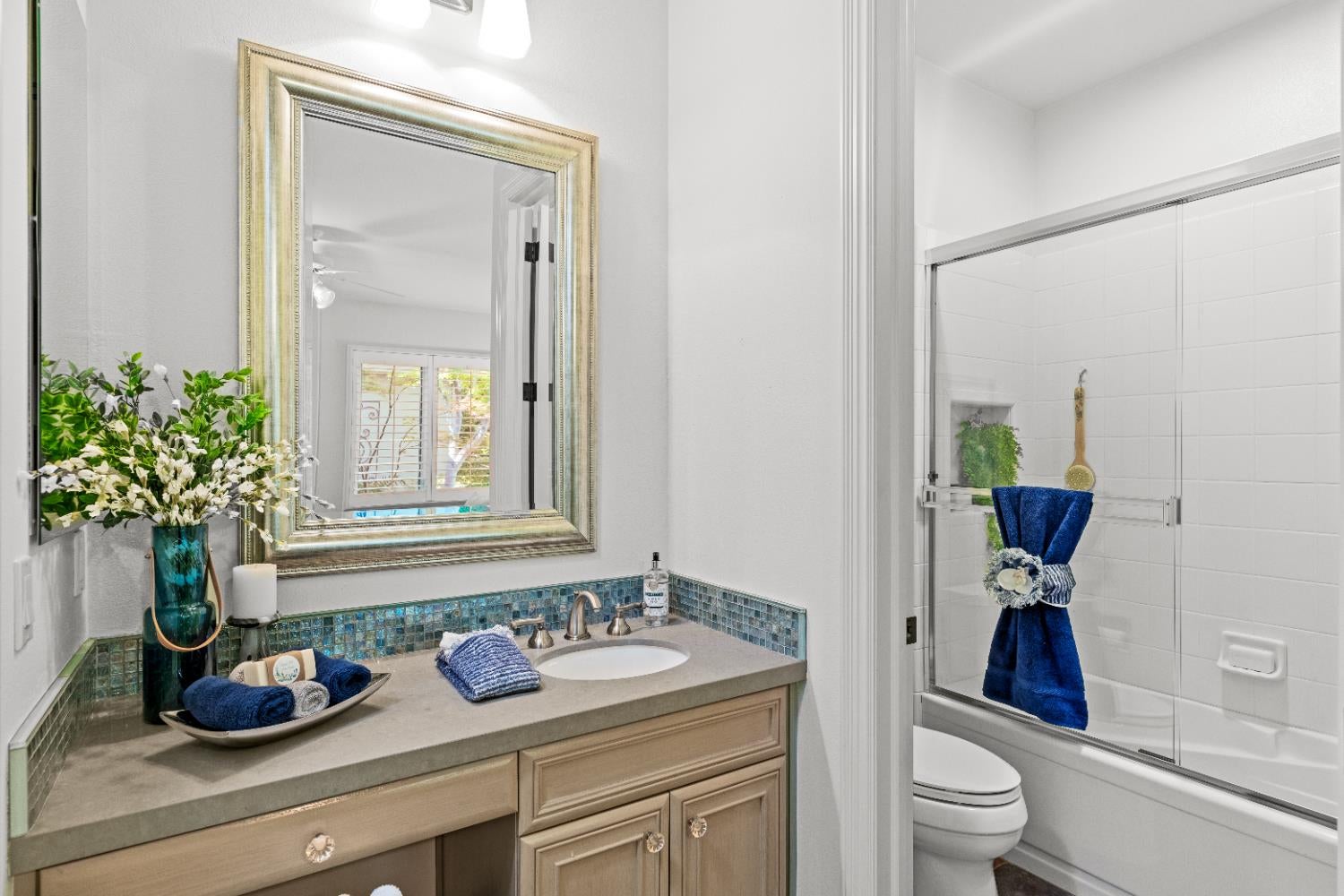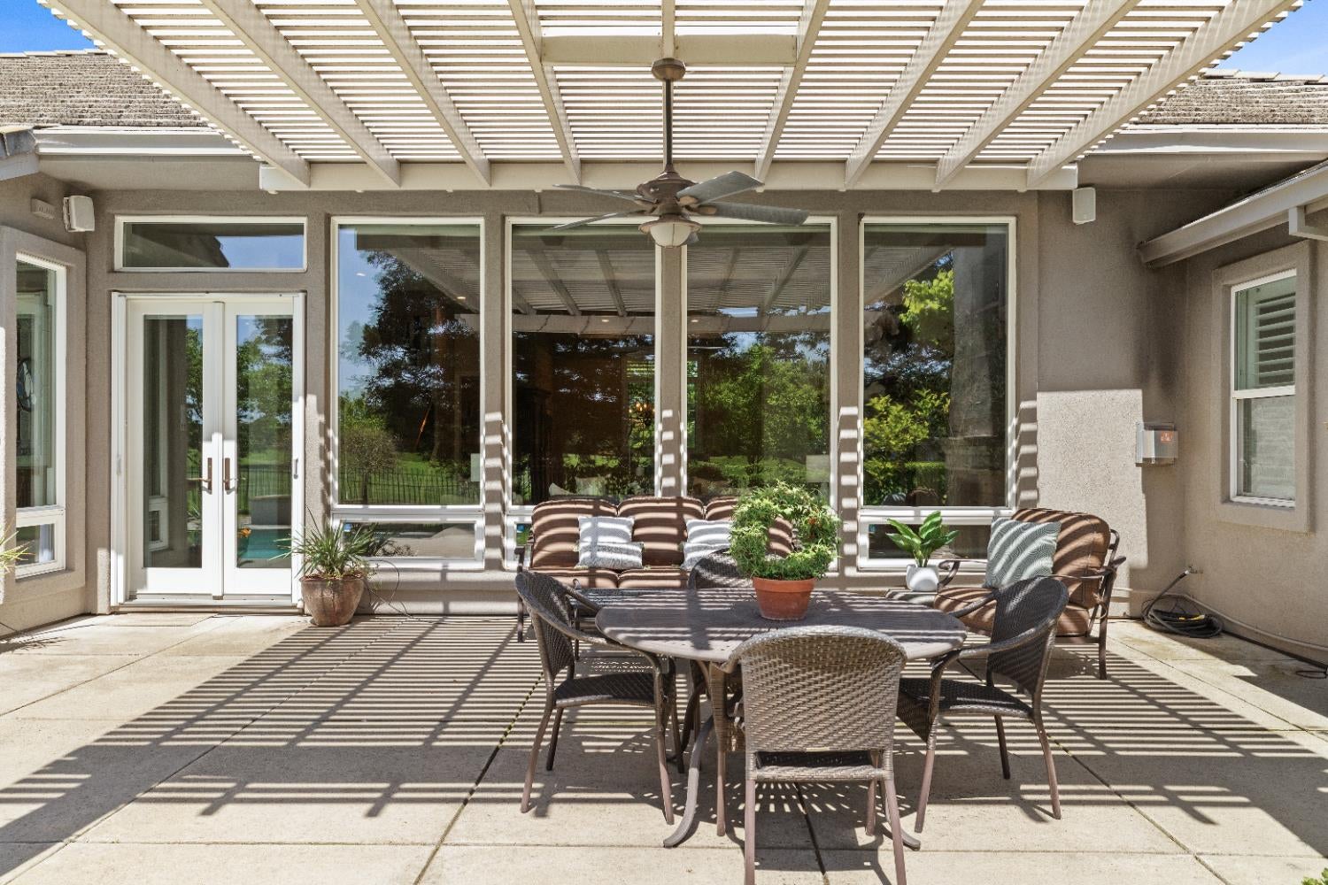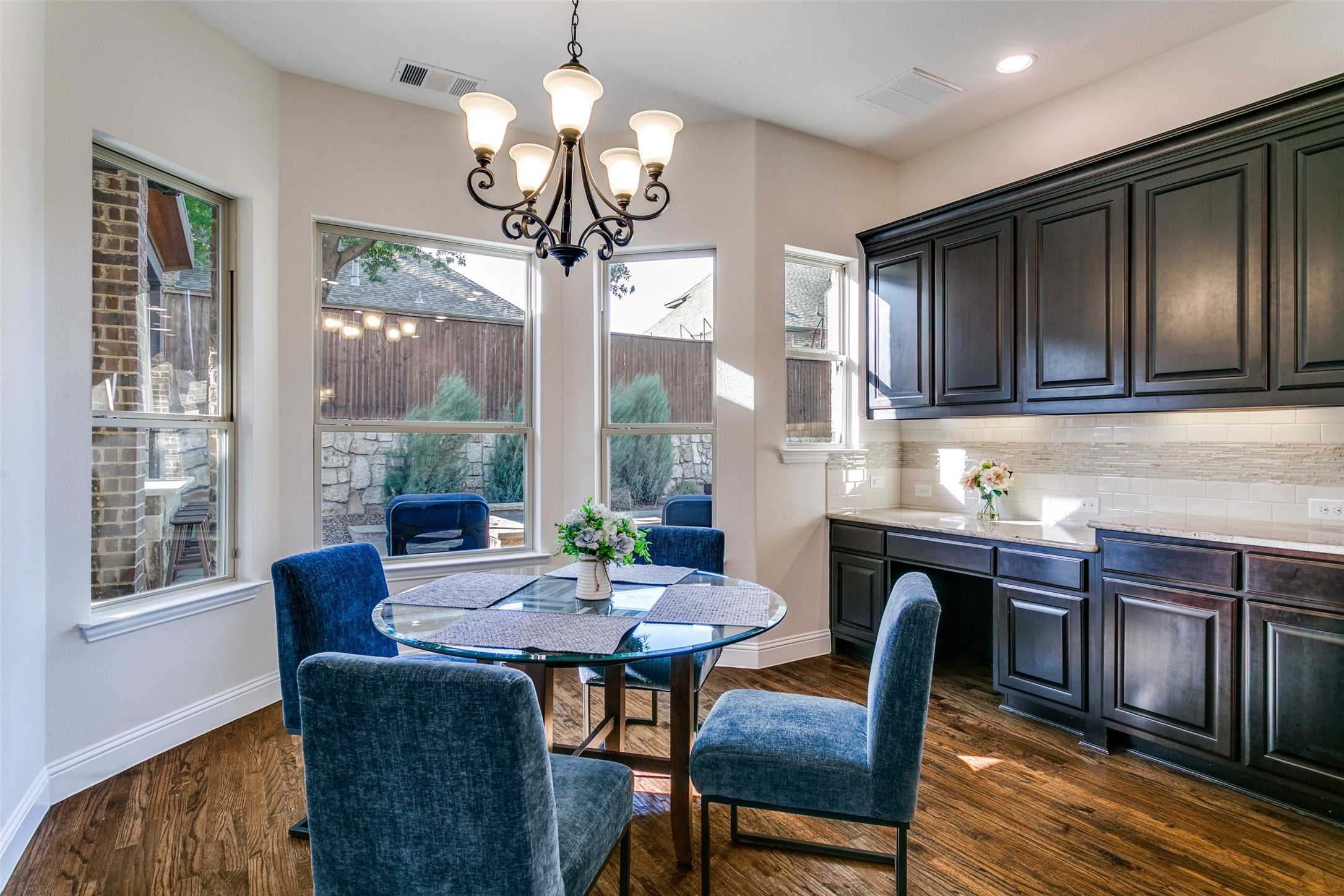This exceptional original-owner home blends luxury, comfort, and functionality across 5 bedrooms, 5.5 bathrooms, multiple living and dining areas, a dedicated office, game room, media room, and a 3-car garageall centered around a beautiful pool and spa.The grand entry showcases rich hardwood floors and cathedral ceilings that flood the home with natural light. A private office with French doors sits at the front of the home. The open-concept living and dining areas flow seamlessly into the well-appointed kitchen featuring stainless steel appliances, gas cooktop, double ovens, granite countertops, and a beautiful tile backsplash. The breakfast nook overlooks the backyard oasis and opens to the family room.The downstairs primary suite offers a newly renovated spa-inspired bathroom with a striking light fixture, soaking tub, oversized shower, upgraded cabinetry, and dual walk-in closets. A second downstairs bedroom with an ensuite bath provides ideal guest accommodations.Upstairs includes a spacious game room, media room, three bedrooms, 3 full baths, and a versatile study area. Additional highlights include an oversized walk-in attic for exceptional storage.The outdoor living space is designed for year-round enjoyment with a covered patio, remote-control sunscreens, gas grill, pellet smoker, and a cozy fireplace. The outdoor kitchen area sits just steps from the sparkling pool and spa. Conveniently located near schools, parks & golf, this home is the perfect blend of elegance and everyday comfort.