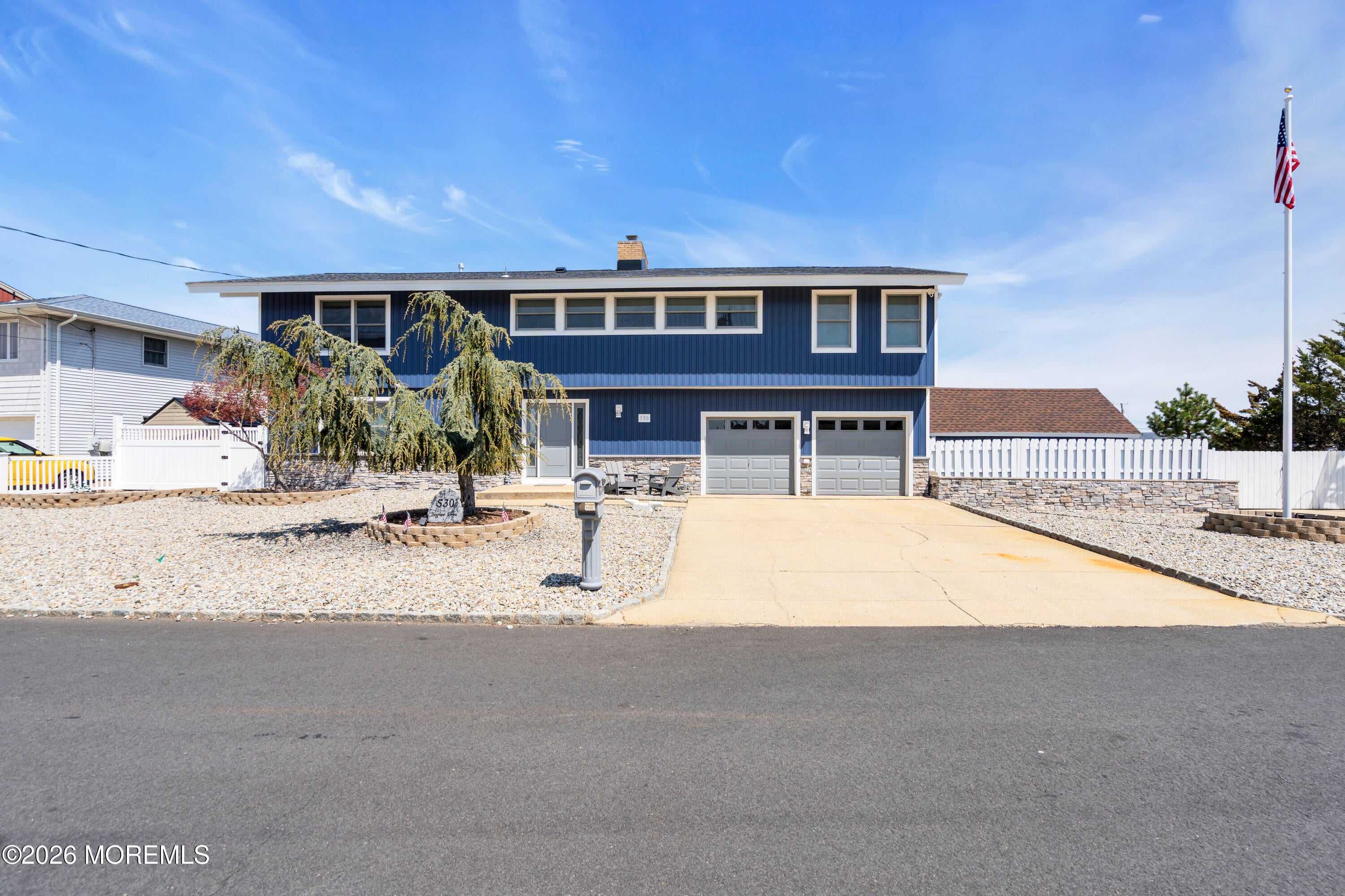 Stunning Green Island Waterfront Multi-Generational Home. This 3 bedroom, 3 full bath Contemporary is situated on a 122 x 110 oversized lot, which offers direct bay access and expansive views. The home was extensively updated in 2024 with a new roof, siding, HVAC, Furnace, washer/dryer and much more. (Please see the detailed Sellers Disclosure). The clean architectural design with an open-concept layout, maximizes natural light through all NEW windows/sliders with seamless sight lines to the water. The newly renovated upstairs includes a spacious great room with vaulted ceilings, designer porcelain tile and a gorgeous gas fireplace as its focal point. The new kitchen has granite countertops, all custom cabinetry and all new appliances. The updated primary bedroom has a new en suite full bathroom and sitting area. A fully renovated full bath in the hallway rounds out the top floor. The lower living level has its own dedicated kitchen area, with all new appliances, two bedrooms, one full bath and an oversized two car garage. Outdoor amenities include a generous yard--which could accommodate a very large pool-- 115 feet of Wolf waterfront decking, new vinyl bulkhead and a ramp for kayak/jet ski lagoon access. This oversized lot provides privacy, a large storage shed, expansion potential, and space for additional outdoor features. Professional photos forthcoming.