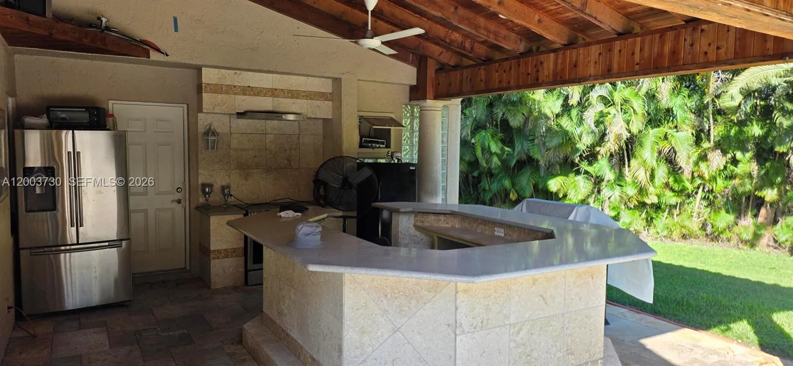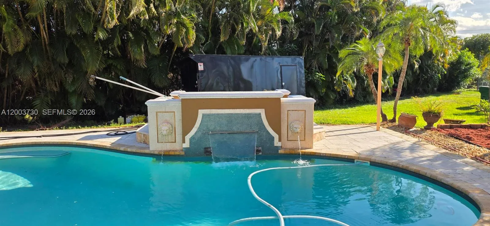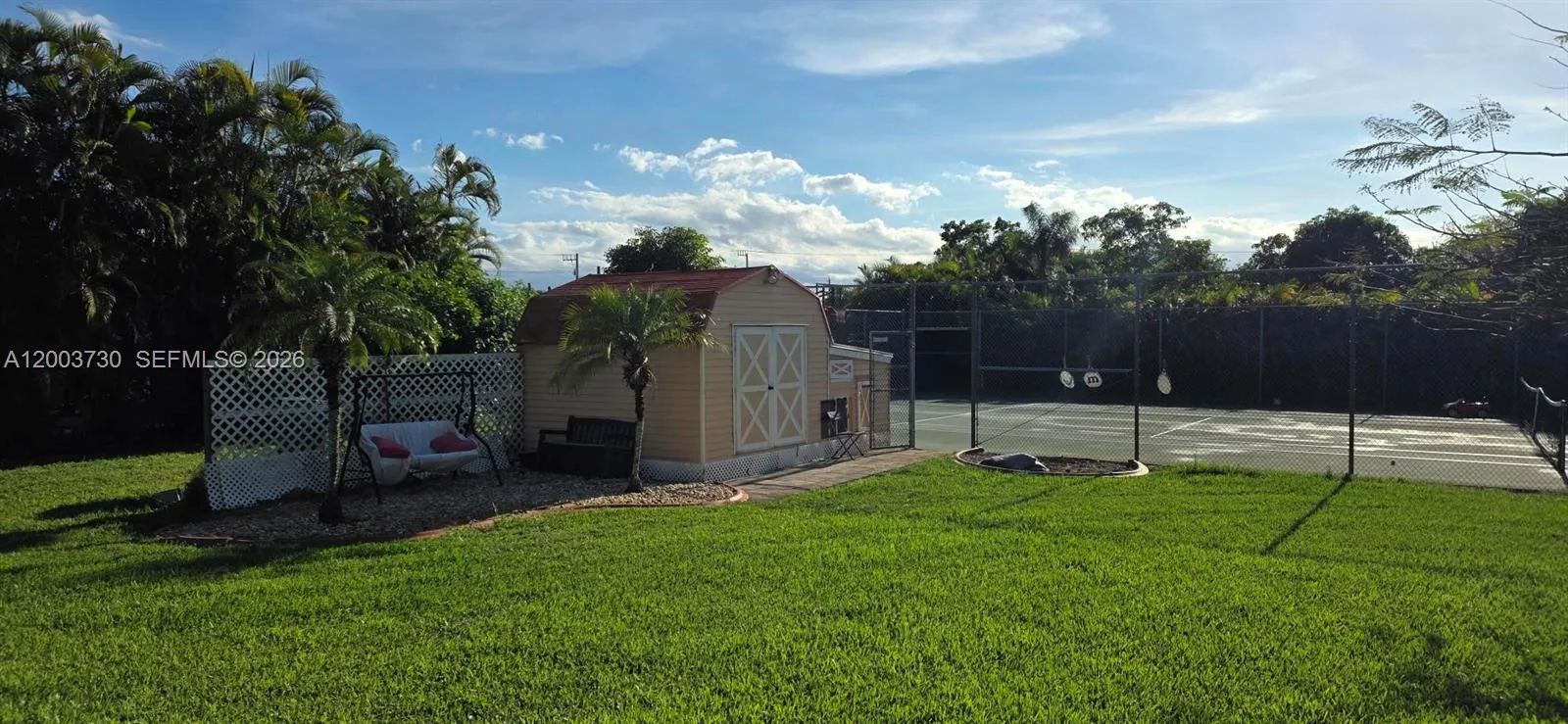 Magnificent 5 bed 3 and 1/2 bath plus office 2 car garage, private gate and fenced, huge driveway. This home is priced for a quick sale. Just under an acre features pool with waterfall outside shower, bar / kitchen large shed and tennis ct. Lots of green space to enjoy. There is a barrel tile roof new impact windows and doors custom kitchen, cabana bath vaulted ceilings French doors.