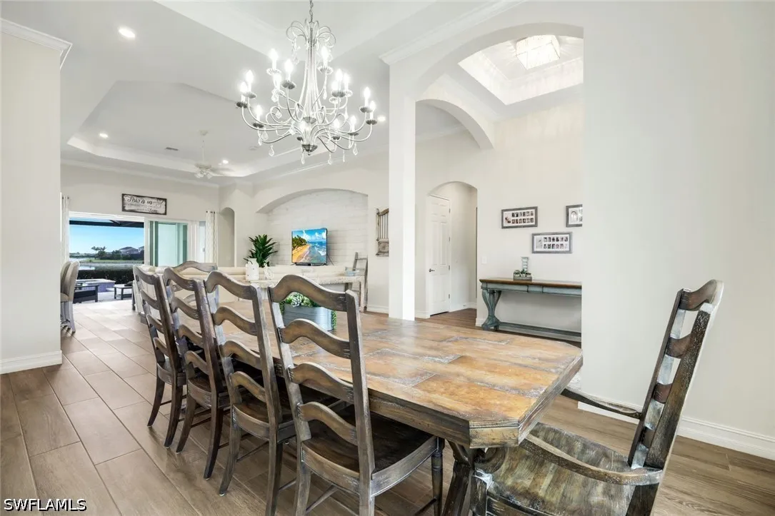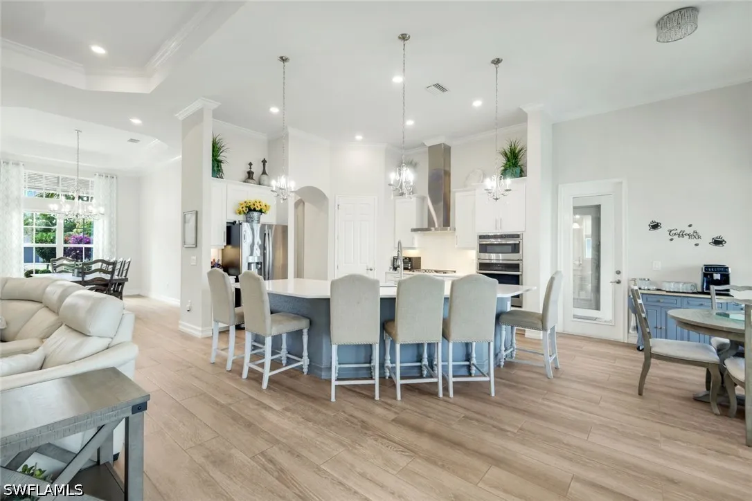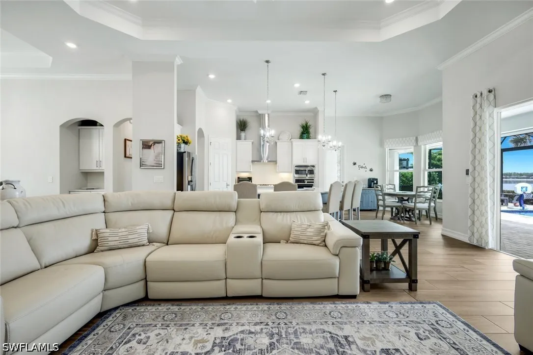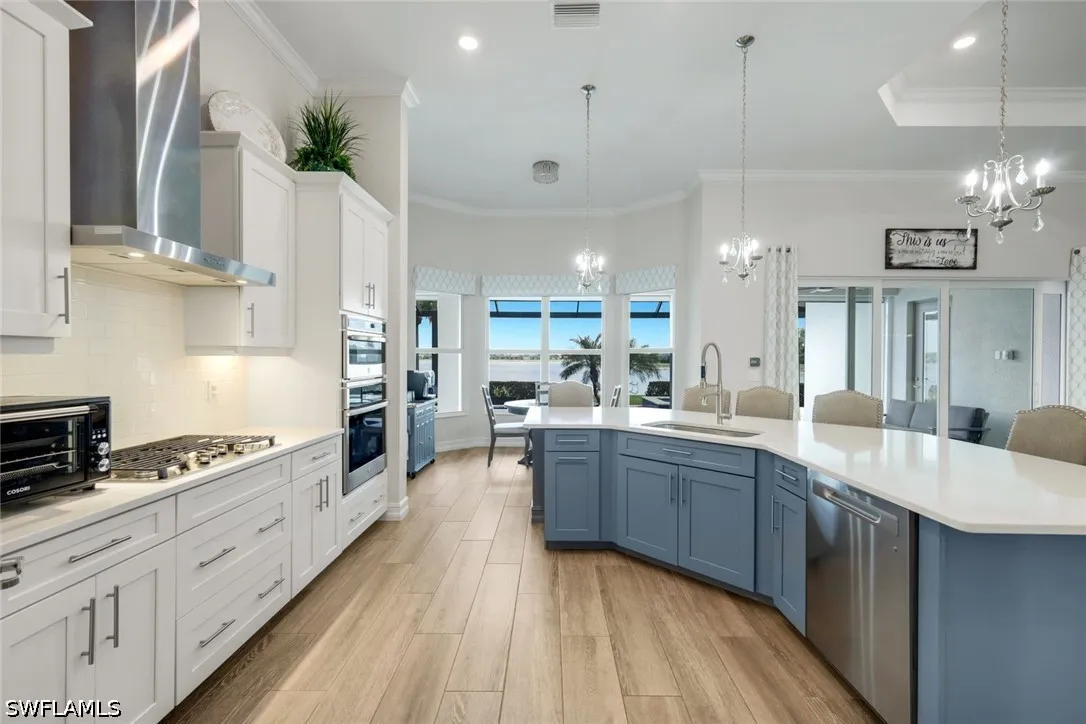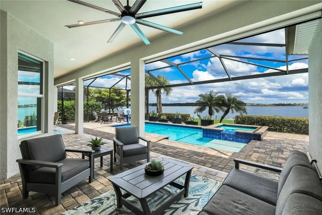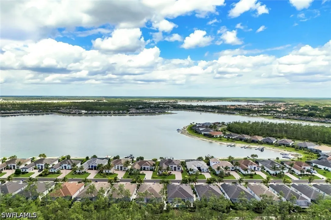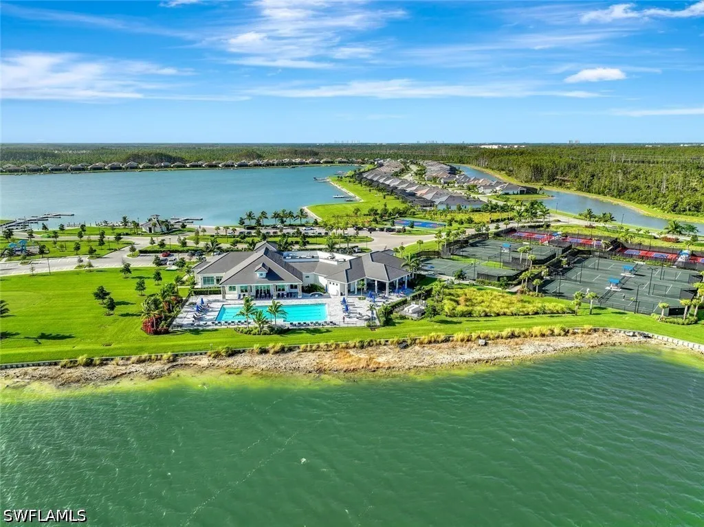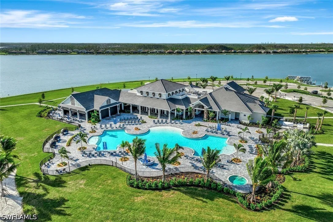 Experience refined lakefront living in this exceptional residence within the highly sought-after community of Wildblue. Offering 3 bedrooms plus a private study, 3 full baths, and a thoughtfully designed open-concept floor plan, this home seamlessly blends luxury, comfort, and the ultimate Florida lifestyle. Perfectly positioned on one of Wildblues pristine lakes, the property features a private dock - ideal for enjoying boating, kayaking, or simply taking in the tranquil water views. The expansive outdoor living area is designed for entertaining and relaxation, complete with a resort-style pool and spa, a generous covered lanai, and ample space to enjoy breathtaking sunrises. Inside, the home showcases elegant finishes and refined details throughout. The spacious great room flows effortlessly into the gourmet kitchen, creating an inviting atmosphere for both everyday living and hosting guests. The kitchen is appointed with premium appliances, white cabinetry, and a large center island, all overlooking the sparkling pool and lake beyond. The private study offers flexibility for a home office or additional guest space. The owners suite is a serene retreat, featuring tranquil water views, a spa-inspired bath, and generous closet space. Two additional guest bedrooms and baths provide comfort and privacy for family and visitors. The three-car garage boasts epoxy floors and is air-conditioned. A natural gas generator and electric storm protection provide peace of mind. Wildblue is renowned for its resort-style amenities, including a clubhouse, restaurant, lakeside beach, fitness center, resort pool, tennis, pickleball, and miles of boating waters. Ideally located just minutes from shopping, dining, FGCU, and Southwest Florida International Airport, this home offers both convenience and an unparalleled lifestyle. Be sure to click on the virtual tour link! An extraordinary opportunity to own a piece of Southwest Floridas premier lakefront living.