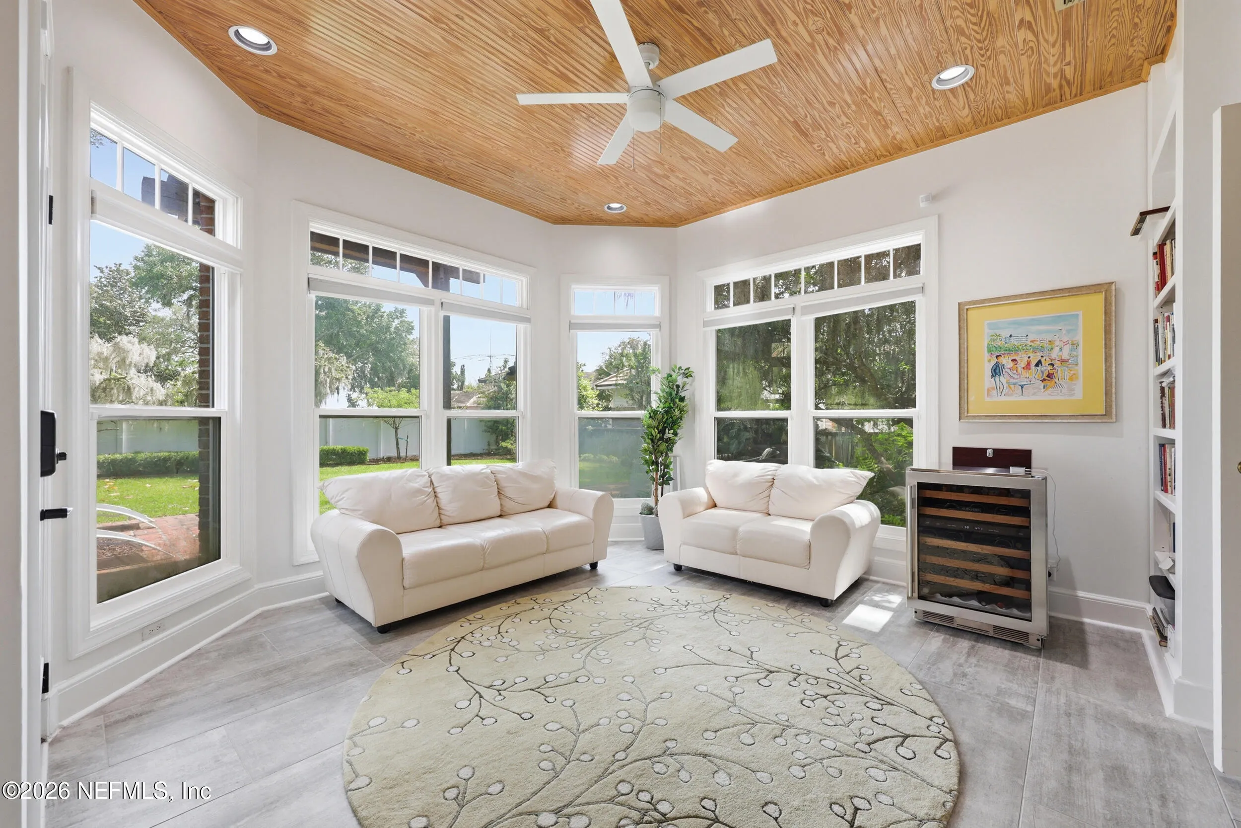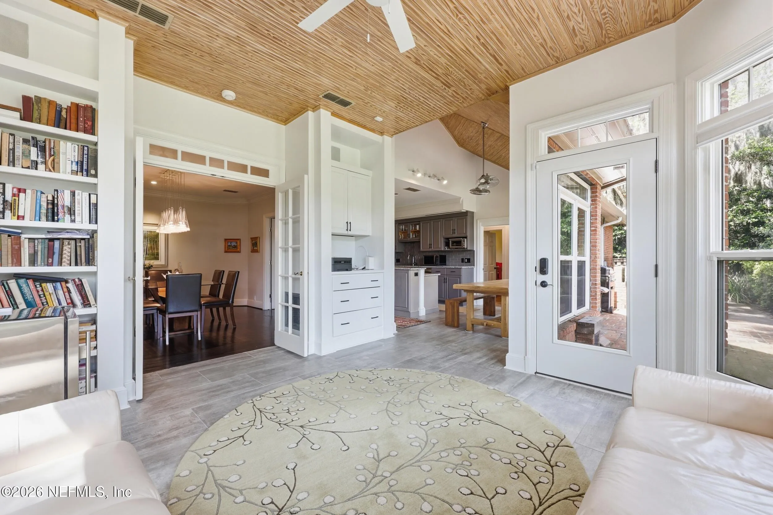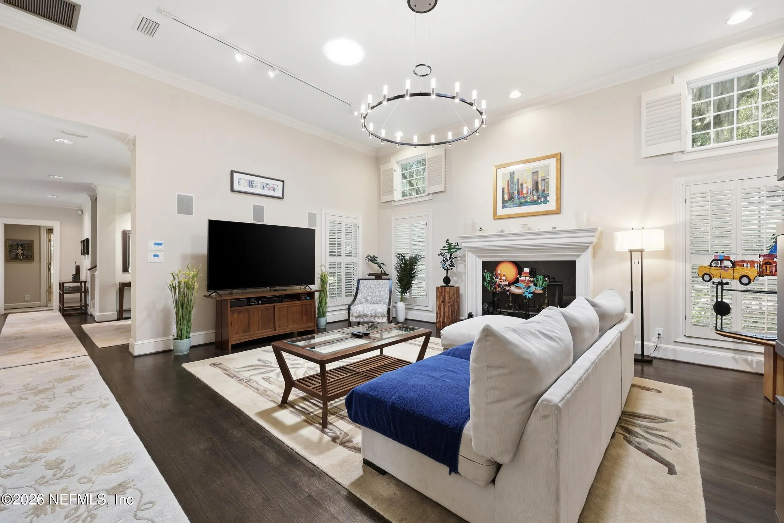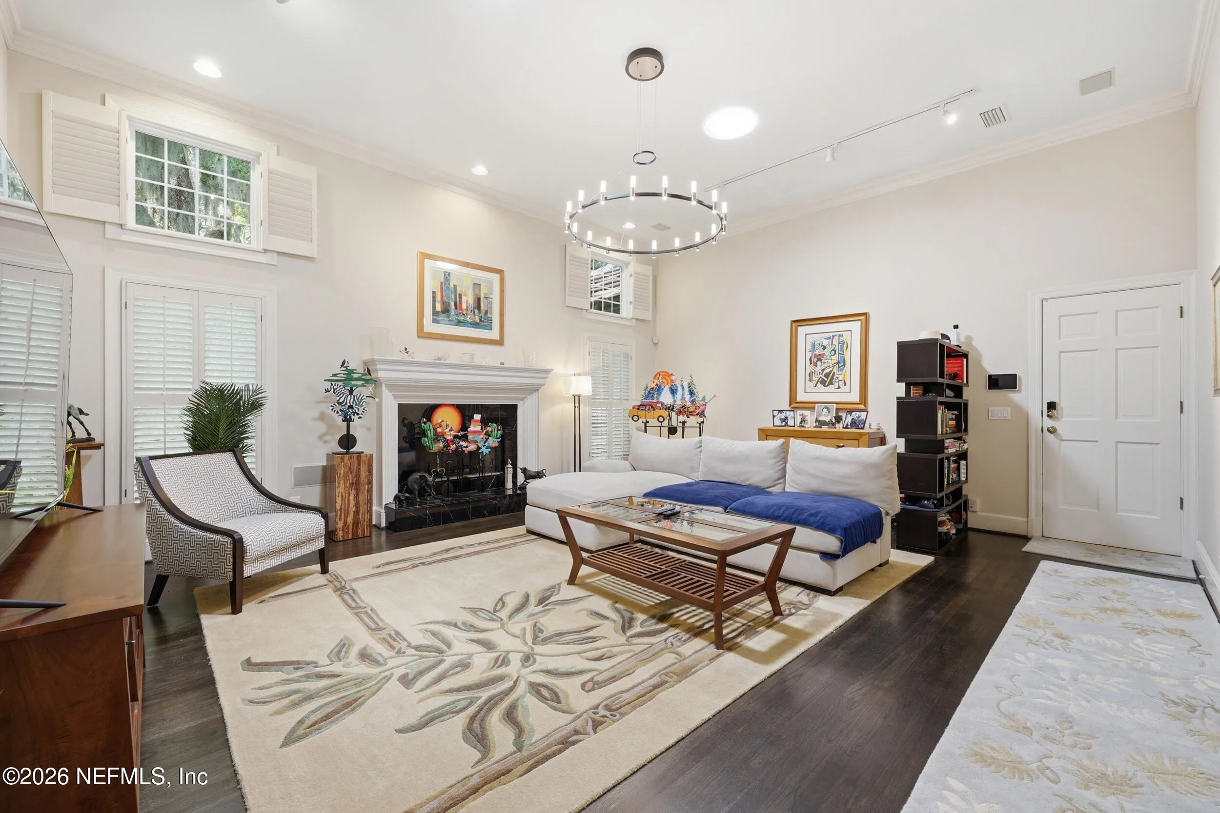 Imagine arriving home to a stately, solid brick residence nestled beneath a canopy of lush, mature oak trees, tucked away on a private cul-de-sac just one home from the river. Located in the highly sought-after Beauclerc/Forest Circle area, this custom-built home by Blosam Constructors showcases timeless architecture among surrounding estate riverfront properties. Inside, youll find spacious, sun-filled rooms with soaring ceilings designed for both comfort and elegance. The recently upgraded eat-in kitchen is a standout feature, highlighted by a striking black-and-white granite island with sink and breakfast bar, stainless steel appliances, abundant cabinetry, and the rare convenience of dual dishwashers--perfect for effortless entertaining. The dramatic two-story living room features an entire wall of windows, filling the space with natural light and creating an inviting setting for gatherings. Just off the kitchen, a charming round sunroom offers flexible use as a breakfast area, playroom, or tranquil reading retreat. The den/family room, complete with a wood-burning fireplace, provides a cozy space for relaxing evenings. The first floor also includes a private au pair, nanny, or in-law suite with its own bathroom and separate entrance. Two additional bedrooms share a bath, with one currently serving as a home office. Upstairs, the expansive primary suite features a private balcony with river views, creating a peaceful retreat. Two additional bedrooms share a Jack-and-Jill bathroom with individual vanities. Laundry is conveniently located both upstairs near the primary suite and downstairs near the kitchen. Recent upgrades include a whole-home Generac generator, a newer two-car garage, and updated windows and doors throughout, enhancing both comfort and efficiency.