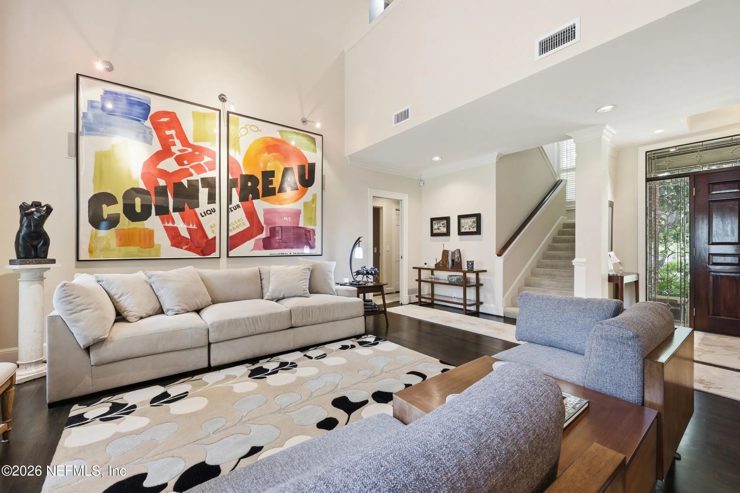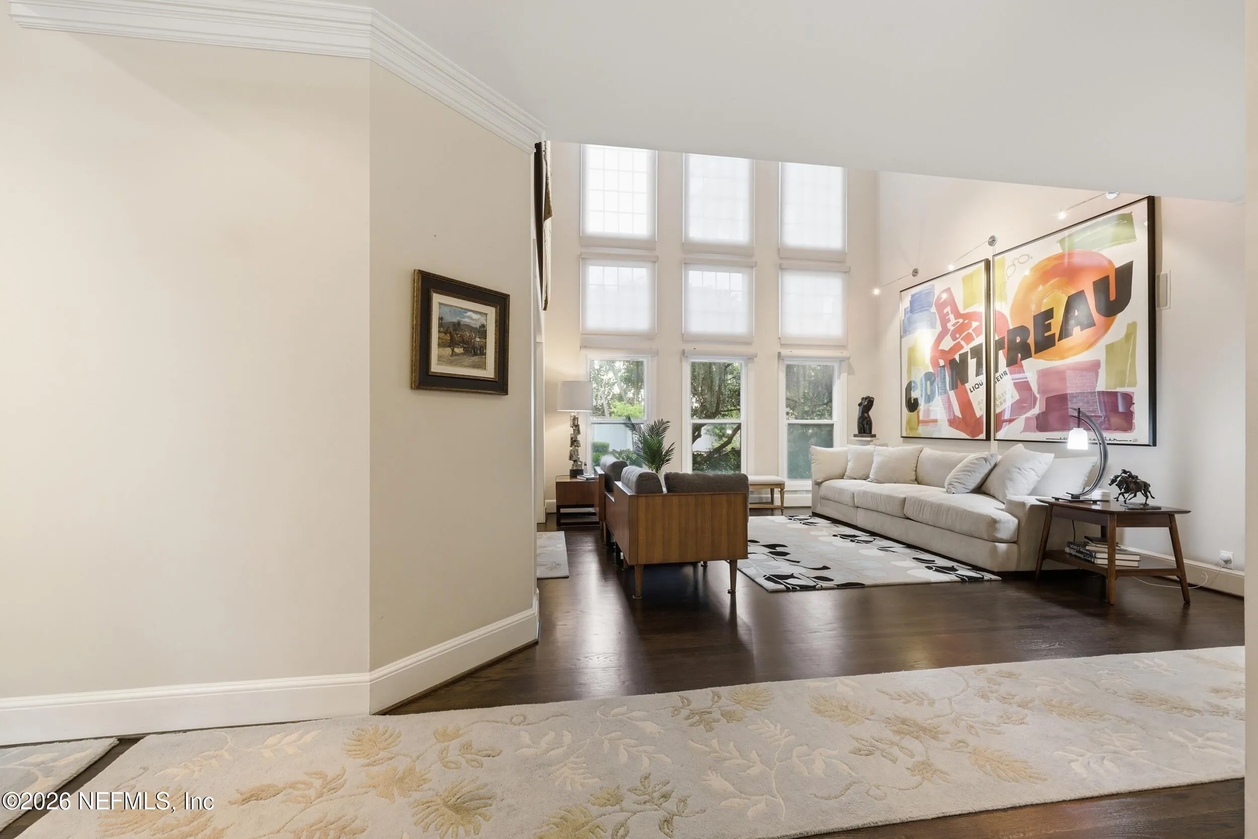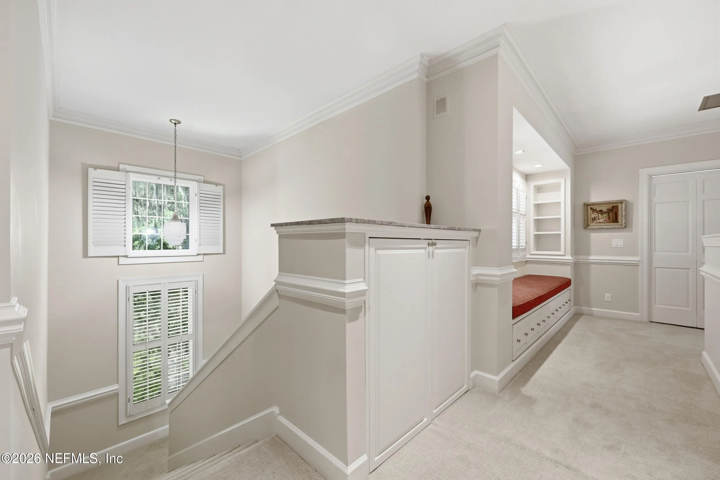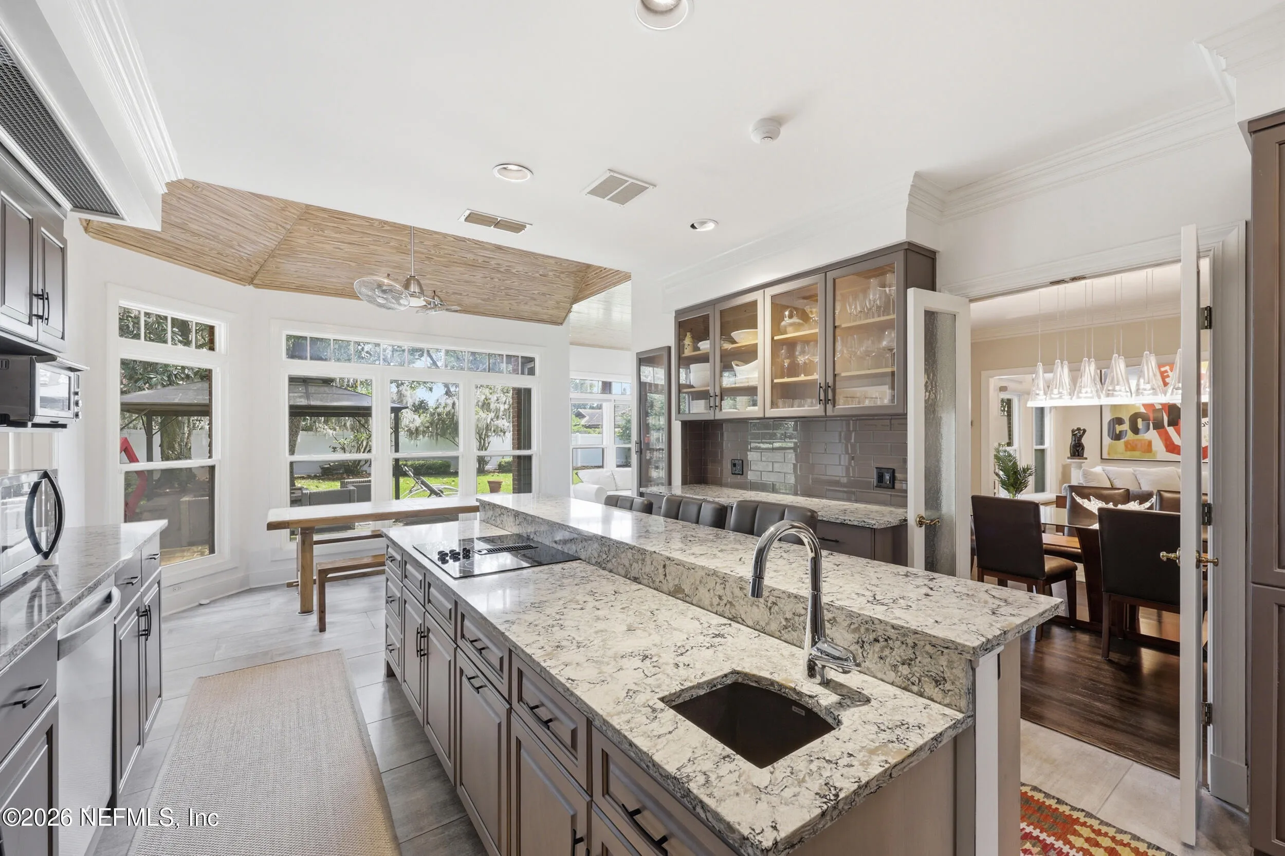 Imagine arriving home to a stately, solid brick residence nestled beneath a canopy of lush, mature oak trees, tucked away on a private cul-de-sac just one home from the river. Located in the highly sought-after Beauclerc/Forest Circle area, this custom-built home by Blosam Constructors showcases timeless architecture among surrounding estate riverfront properties. Inside, youll find spacious, sun-filled rooms with soaring ceilings designed for both comfort and elegance. The recently upgraded eat-in kitchen is a standout feature, highlighted by a striking black-and-white granite island with sink and breakfast bar, stainless steel appliances, abundant cabinetry, and the rare convenience of dual dishwashers--perfect for effortless entertaining. The dramatic two-story living room features an entire wall of windows, filling the space with natural light and creating an inviting setting for gatherings. Just off the kitchen, a charming round sunroom offers flexible use as a breakfast area, playroom, or tranquil reading retreat. The den/family room, complete with a wood-burning fireplace, provides a cozy space for relaxing evenings. The first floor also includes a private au pair, nanny, or in-law suite with its own bathroom and separate entrance. Two additional bedrooms share a bath, with one currently serving as a home office. Upstairs, the expansive primary suite features a private balcony with river views, creating a peaceful retreat. Two additional bedrooms share a Jack-and-Jill bathroom with individual vanities. Laundry is conveniently located both upstairs near the primary suite and downstairs near the kitchen. Recent upgrades include a whole-home Generac generator, a newer two-car garage, and updated windows and doors throughout, enhancing both comfort and efficiency.