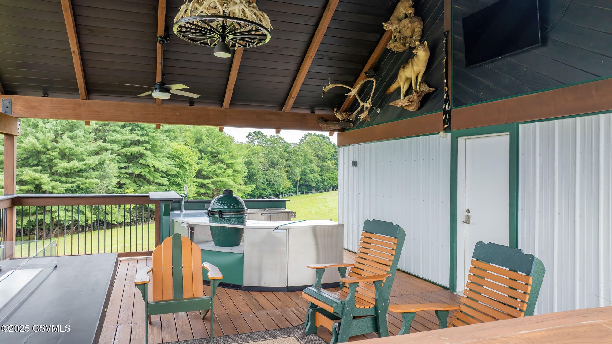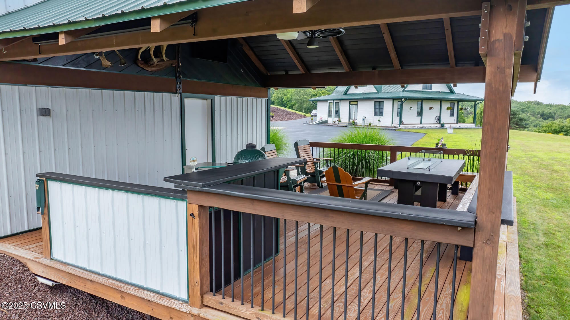 This beautifully crafted custom cape cod offers the perfect blend of quality, comfort and lifestyle! Impeccably maintained and thoughtfully upgraded throughout, this home welcomes you with an open-concept layout highlighted by a soaring cathedral ceiling and a striking see-through firepalce that creates warmth and flow between living spaces. The gourmet kitchen is designed to impress, featuring new countertops, abundant cabinetry, and a spacious walk-in pantry. Convenience meets luxury with a first-floor primary suite, while the upper-level loft overlooks the main living area and leads to two additional bedrooms and a full bath. The finished lower level takes entertaining to the next level, offering a generous rec room, pool table area, Home theater, private wine cellar, and even a sauna for the ultimate at-home retreat. Step outside and experience everything this property has to offer. In addition to the home, youll find two exceptional outbuildings. A detached three-car garage includes a half bath and separate laundry area - perfect for hobbies or extra workspace. The second structure is a true showstopper: a fully equipped outdoor pavilion featuring a full kitchen, fireplace table, and sweeping views - an entertainers dream in every season. This is more than a home - its a lifestyle! Call or Text Carey today 570-594-1578