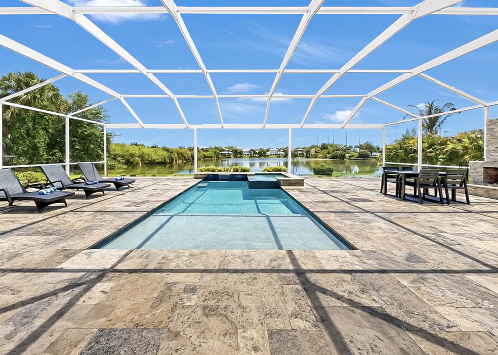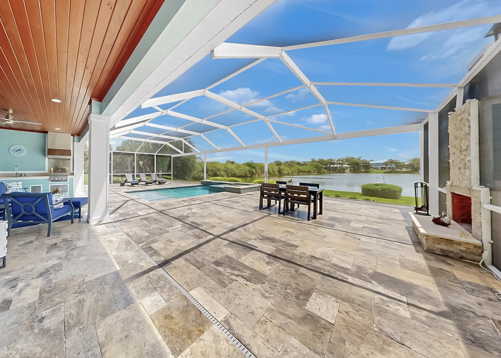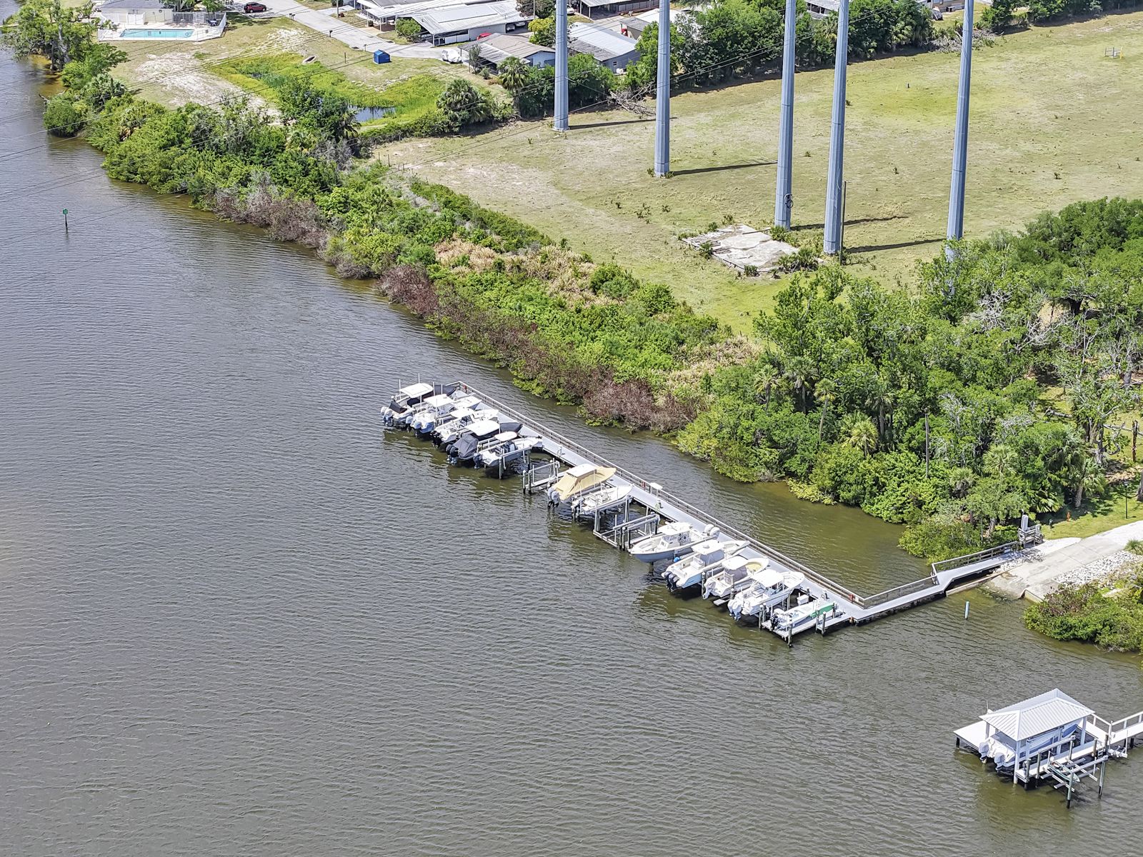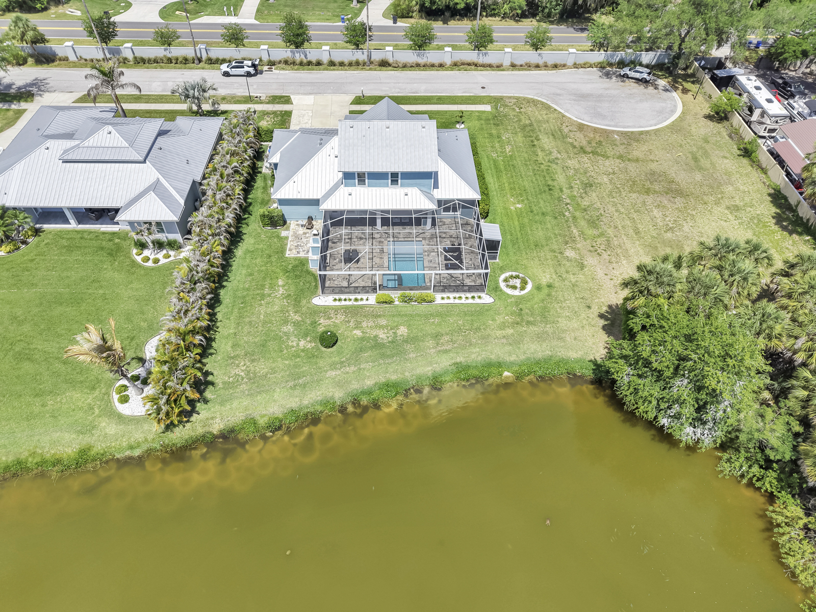 Welcome to your personal paradise where the allure of waterfront living meets high-end luxury and NO FLOOD INSURANCE required. A rare opportunity to live in a Key West inspired private community of Key West Landings on the Alafia River off of Tampa Bay. This gated oasis of only 18 homes, with DEEDED BOAT SLIPS offers a lifestyle that dreams are made of. Imagine stepping into a world where palm trees sway gently in the breeze, surrounded by mature landscape with grand oaks and the tranquil waters of the Alafia River invite you to explore.This stunning executive home boasts a coveted boat slip with lift, setting the stage for sunset cruises and boating adventures. The Alafia River offers a unique Old Florida charm with several water front restaurants. Only minutes to Tampa Bay with the contrast of skyline views, sandy beach islands and all the excitement of the Riverwalk. This is a true boaters paradise.Nature is calling, unwind on this oversized lot with views of a private 4 acre lake stocked and ready for bass fishing. Bird lovers will enjoy the endless variety and your own aviary off of the lanai.The heart of the home is the expansive living room, where French doors open to reveal an enormous pavered lanai. The centerpiece is a resort style pool, outdoor living with al fresco dinning, and a dream outdoor kitchen. Imagine gatherings around the 4-foot-wide fireplace, under the stars, creating memories that last a lifetime.Walk through the grand entrance to discover a haven of comfort and style. The downstairs primary suite is a sanctuary with two walk-in closets and a spa inspired bath featuring separate double vanities, a frameless glass shower, and a sleek freestanding tub. A second primary or guest suite, study, and laundry room complete this level, ensuring convenience and privacy.Upstairs, two more bedrooms sharing a jack and jill bath and an oversized loft offer space for family and guests. Throughout the home, 10-foot ceilings and 8-foot doors create an airy, open feel. The kitchen is a chefs delight with quartz counters, Thermador and Bosch appliances, and 42-inch maple cabinetry.This home is equipped with high end upgrades, from the exterior Hardie board siding, metal roof, Low E double pane hurricane impact windows, a full-house water filtration system, and an invisible dog fence. Recent updates ensure peace of mind, with a new pool screen, freshly resealed pool tiles, and a new pool heater and air conditioning system.In this idyllic waterfront community, every day feels like a vacation. Step into a life where elegance meets adventure, and tranquility is part of your everyday routine.Seize this opportunity to own a piece of paradise. Your dream home awaits.