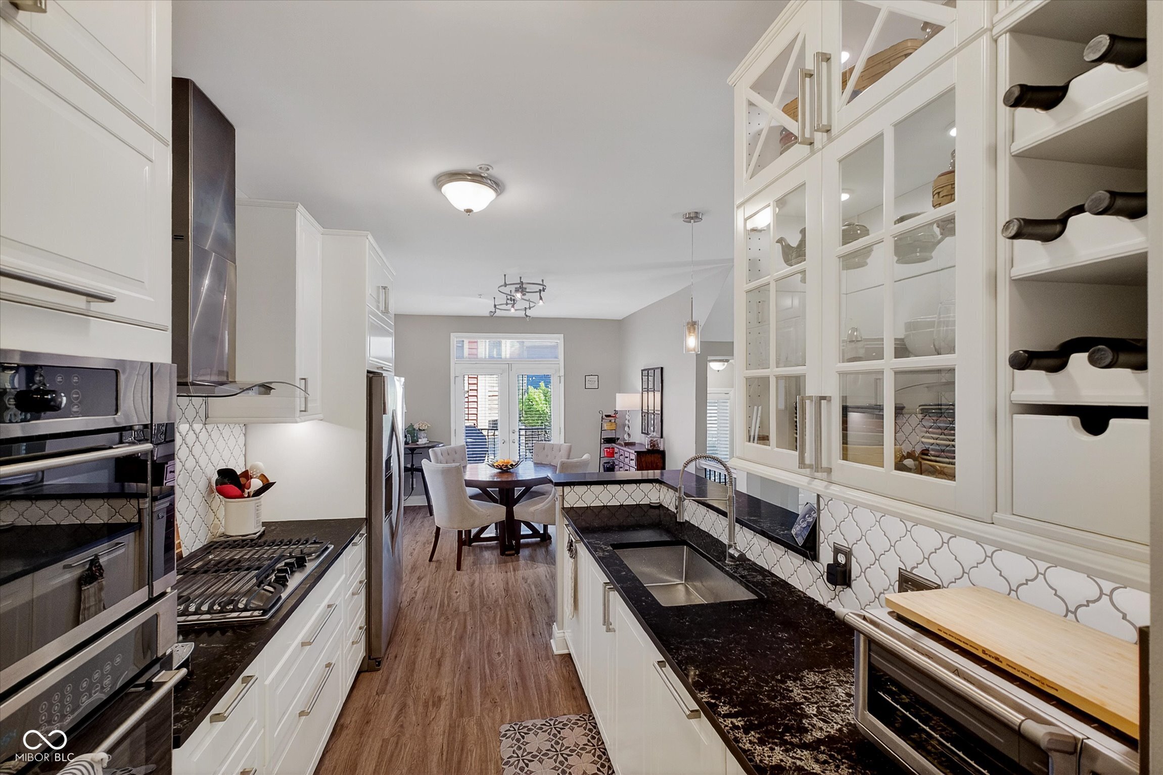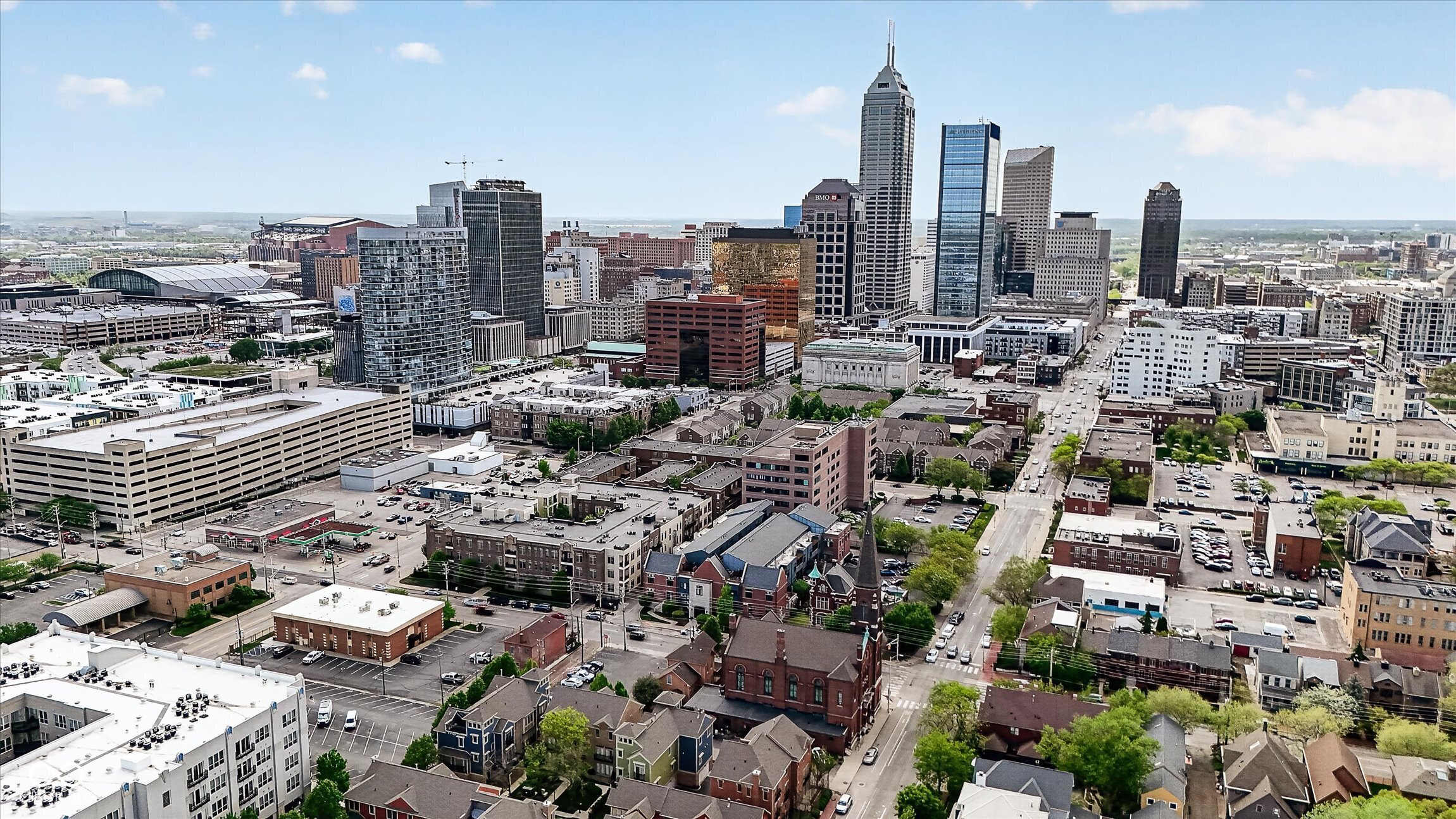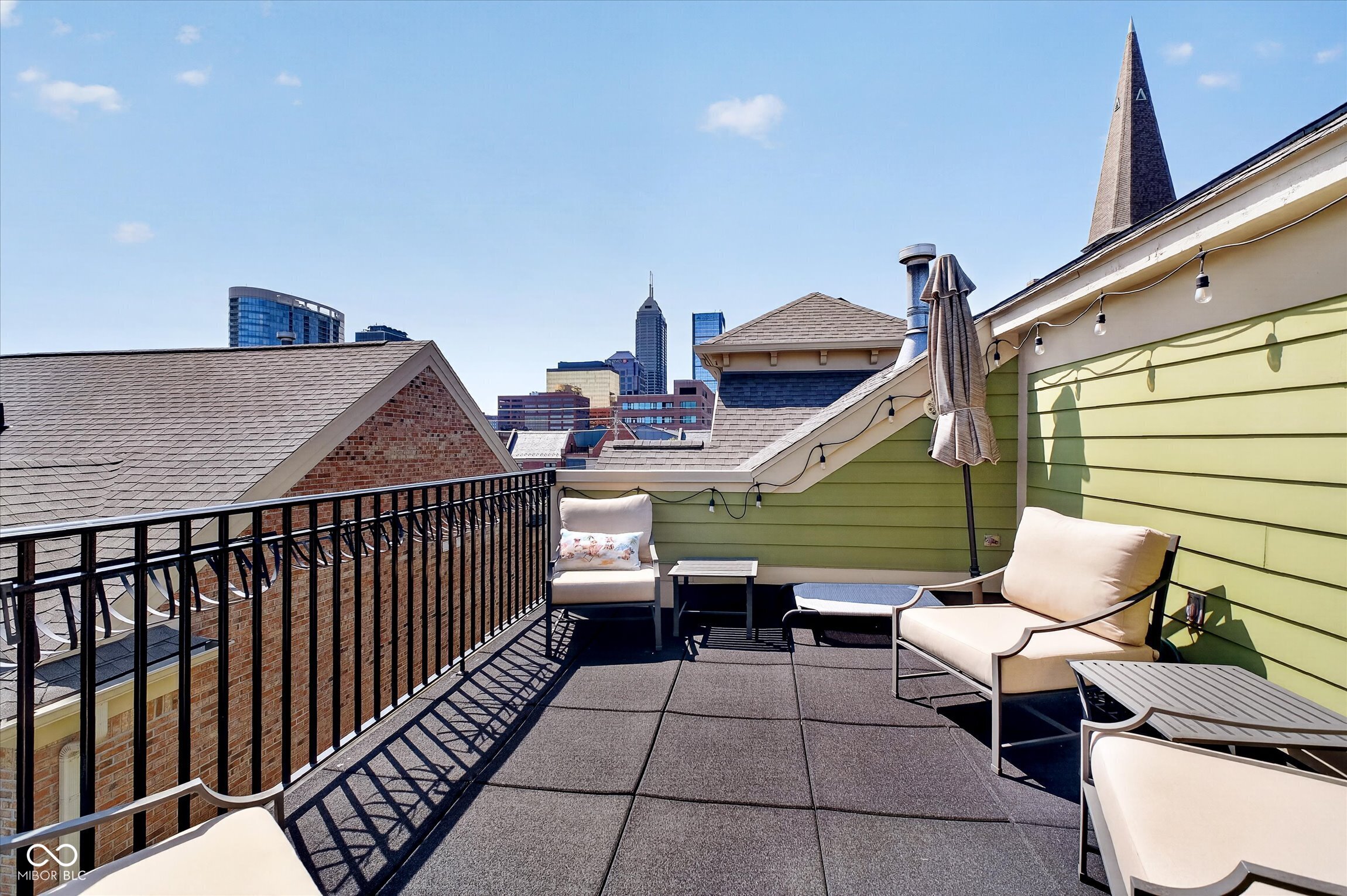 Unique four-story townhome that lives like a single-family residence! Ideally located in the heart of the Lockerbie Square within Desoto Condominiums, this exceptional unit is attached only at the rear, allowing for abundant natural light through multiple exposures. The main living level features a fully renovated, open-concept galley kitchen with generous cabinetry, seamlessly flowing into the spacious living and dining areas. A double set of French doors lines the south side of the unit while another set leads to the front-facing balcony-perfect for entertaining or relaxing. Upstairs, the landing provides an ideal space for a home office. Both bedrooms are generously sized and include en-suite bathrooms along with well-designed closet storage. The top level offers a private rooftop deck with stunning views of downtown Indianapolis. The lower level includes an oversized garage with built-in storage and a versatile bonus room-ideal for a home office, gym, or flex space. This area could potentially be converted into a third bedroom, as original plans included a window that could be added. Enjoy a walkable lifestyle with easy access to Mass Ave & the Circle with nearby dining, coffee, and shopping. Local favorites include Vida, Red Door Cafe, and Parlor Public House.
