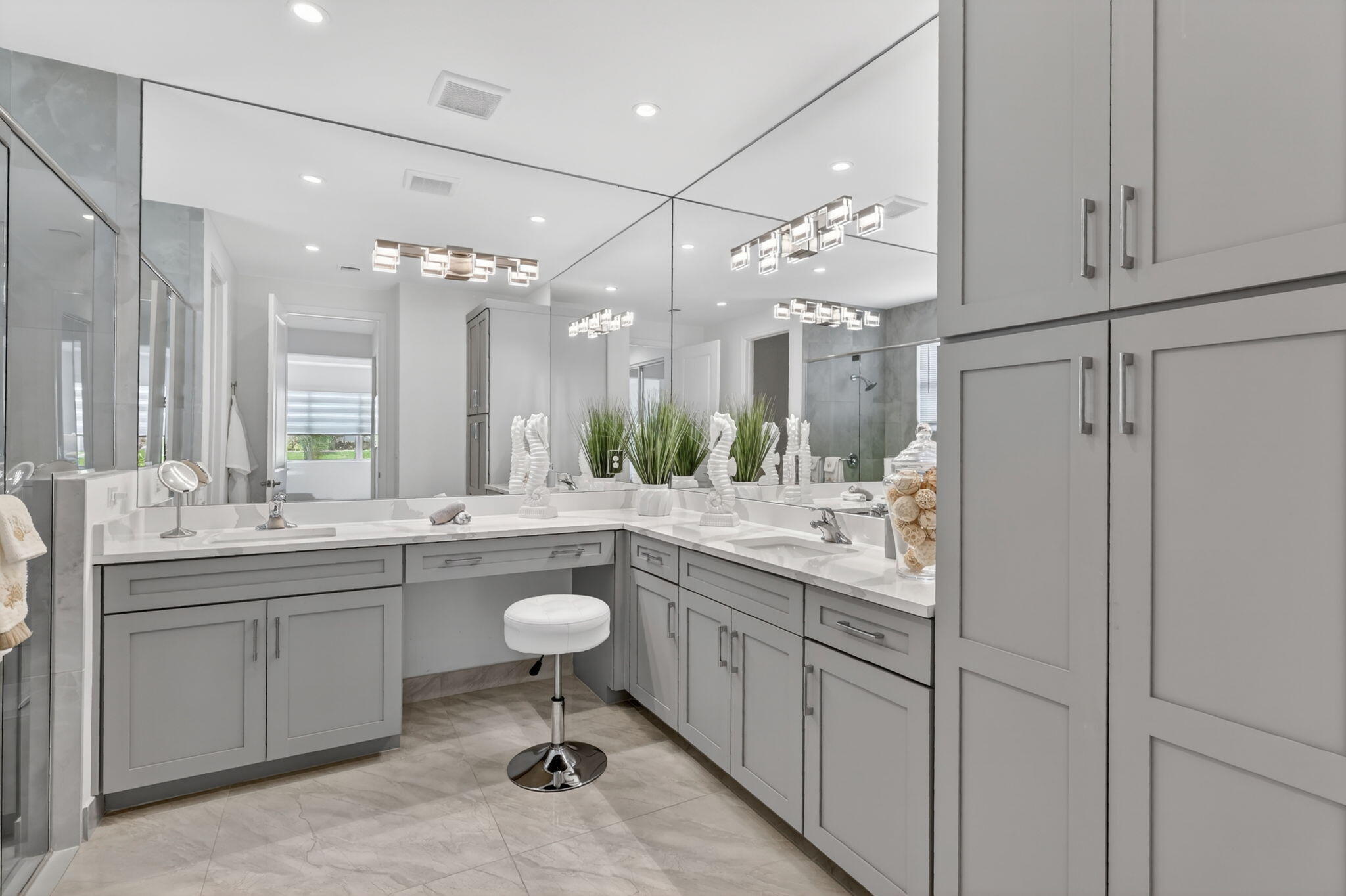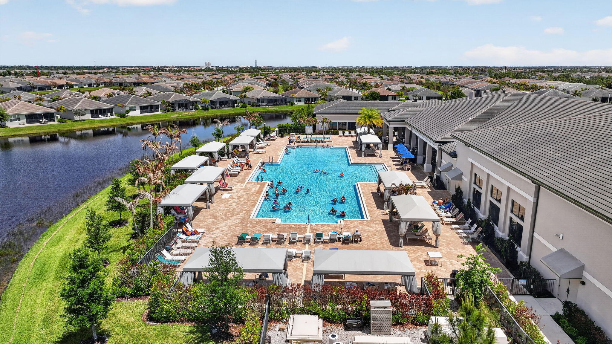 FOR SALE in GL Homes 55 Valencia Grove at Riverland. Welcome to this beautifully upgraded Atlantica model offering 2,167 square feet under air, on a premium water lot with an east-facing patio for sunny mornings, cool, comfortable afternoons, and evenings. This thoughtfully designed home features an open-concept floor plan with 32 x 32 porcelain rectified tile flooring throughout (no carpet) creating a seamless, clean, and modern look. The heart of the home is the upgraded kitchen, showcasing Level IV cabinetry with crown molding, quartz countertops, a Samsung refrigerator and dishwasher, GE upgraded slide in range and microwave, custom cabinet pantry, all opening to the spacious living and dining areas, ideal for entertaining or everyday living. The primary suite is relaxing and beautiful featuring built-out closets, floor-to-ceiling tiles, a frameless glass shower enclosure, dual sinks, custom cabinetry, and thoughtful storage upgrades. Throughout the home, youll find high-end enhancements including zebra shades with motorized treatments in key living areas (the den and guest room open manually), a custom fireplace feature wall designed for a 75 TV, upgraded lighting and electrical features, and a whole-house Apec water filtration system with reverse osmosis in the kitchen. The exterior is just as impressive, featuring a widened driveway and walkway, impact glass front entry door, full-house gutters, and a 2-car garage plus a separate golf cart garage finished with Swiss Trak flooring. A Napoleon BBQ grill with rotisserie adds to the outdoor lifestyle, all set against peaceful water views. Valencia Grove residents enjoy access to a 34,000 sq. ft. clubhouse with resort-style pool, fitness center, full-service restaurant and bar, social clubs, and year-round activities. Riverland also offers a 16-acre Sports & Racquet Club, a 5-acre Arts & Culture Center, and scenic walking and biking trails along the Riverland Paseo. Ideally located just minutes from Tradition, the Cleveland Clinic Hospital, shopping, high-end and casual dining, and Clover Park, home of the New York Mets spring training. A full-size Costco is scheduled to open in 2027 within a 10-to-15-minute drive from Riverland.