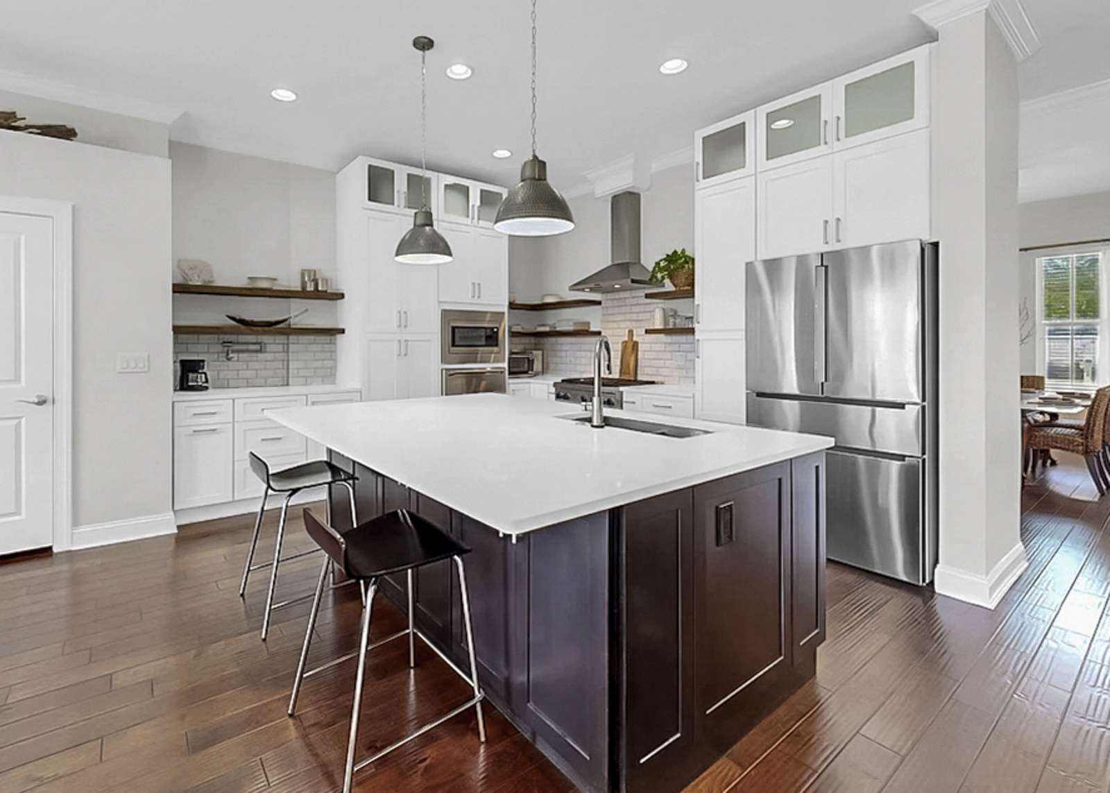 PRISTINE & PRIVATE POND FRONT PARADISE! Cape Cod style updated home offering a versatile floor plan 4 bdrms, 4 1/2 baths, ATTACHED 2 car garage & a DETACHED 2 car garage! Spacious Kitchen w/center island, tiled backsplash, oven,