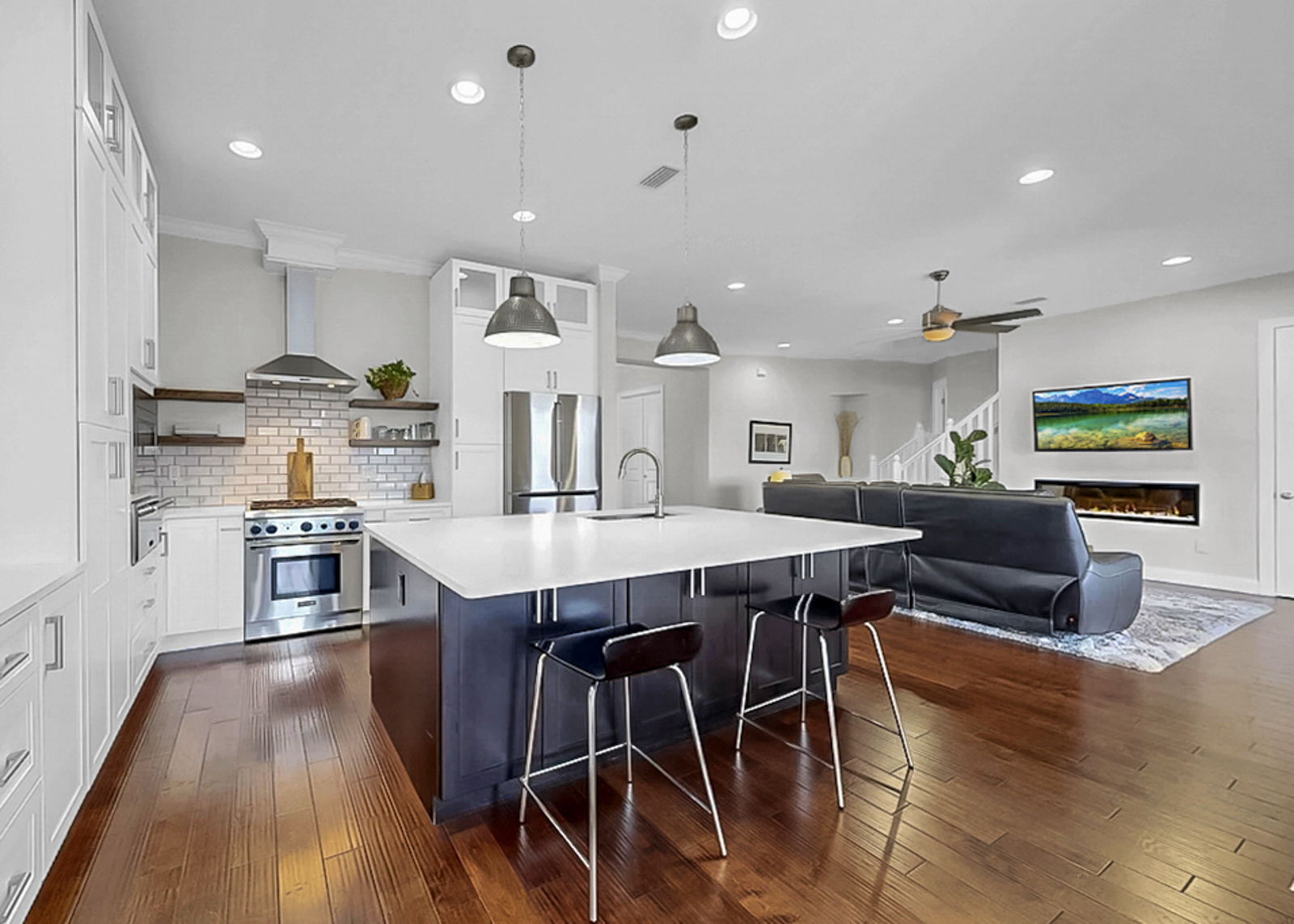 Quiet, in-town retreat blending rustic charm with refined comfort. This move-in ready home features soaring vaulted ceilings, exposed beams, and a stunning stone fireplace anchoring the light-filled great room. Thoughtfully designed with warm wood finishes, an open kitchen with large island, and inviting living spaces throughout.