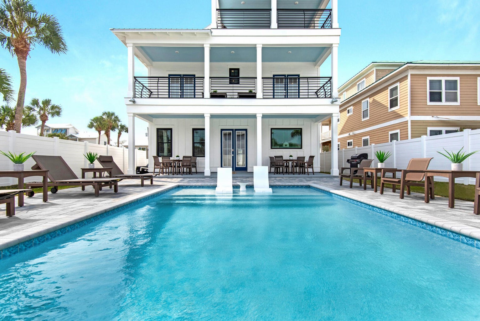 Short term rental powerhouse featuring a designer-grade beach home with stunning ocean views from 4th story rooftop deck, 8 bedrooms each with private baths, two living spaces, private seasonally heated pool with splash deck, and massive 19 person sleeping capacity to maximize revenue. Designer furnishings, professional photography and full inventory to convey for immediate revenue generation. Only 351 feet from sugar sand beach access ensures high occupancy. Includes a free six-seater golf cart, grill, and two paddleboards for added guest appeal. Designed from the ground up to ensure easy, low cost maintenance and best possible yield. Do an Internet search on Legacy Beach Homes of Destin, Florida to view real time calendars in order to determine availability for showings. Seller is listing over 100 million worth of properties from their portfolio (35 large STRs in the Destin/Miramar/30A area with an average appraisal value of slightly over 3M each.). Seller is only selling 10% of the portfolio. Seller will withdraw this and/or any other remaining listings once the first 10 million (approximately) in sales have been achieved. Seller (Equisource Holdings dba Legacy Beach Homes) does not disclose property-level rental revenue data. Buyer to perform their own due diligence regarding income potential. However, the appraisal in the document section of this listing may include the appraisers revenue projection. Seller will make all reasonable efforts to facilitate the transfer of future reservations. The Seller does not have to sell. Property has been priced based on recent appraisal and reflects the sellers minimum acceptable price. Most recent appraisal and inspections are included in the documents section of this listing.