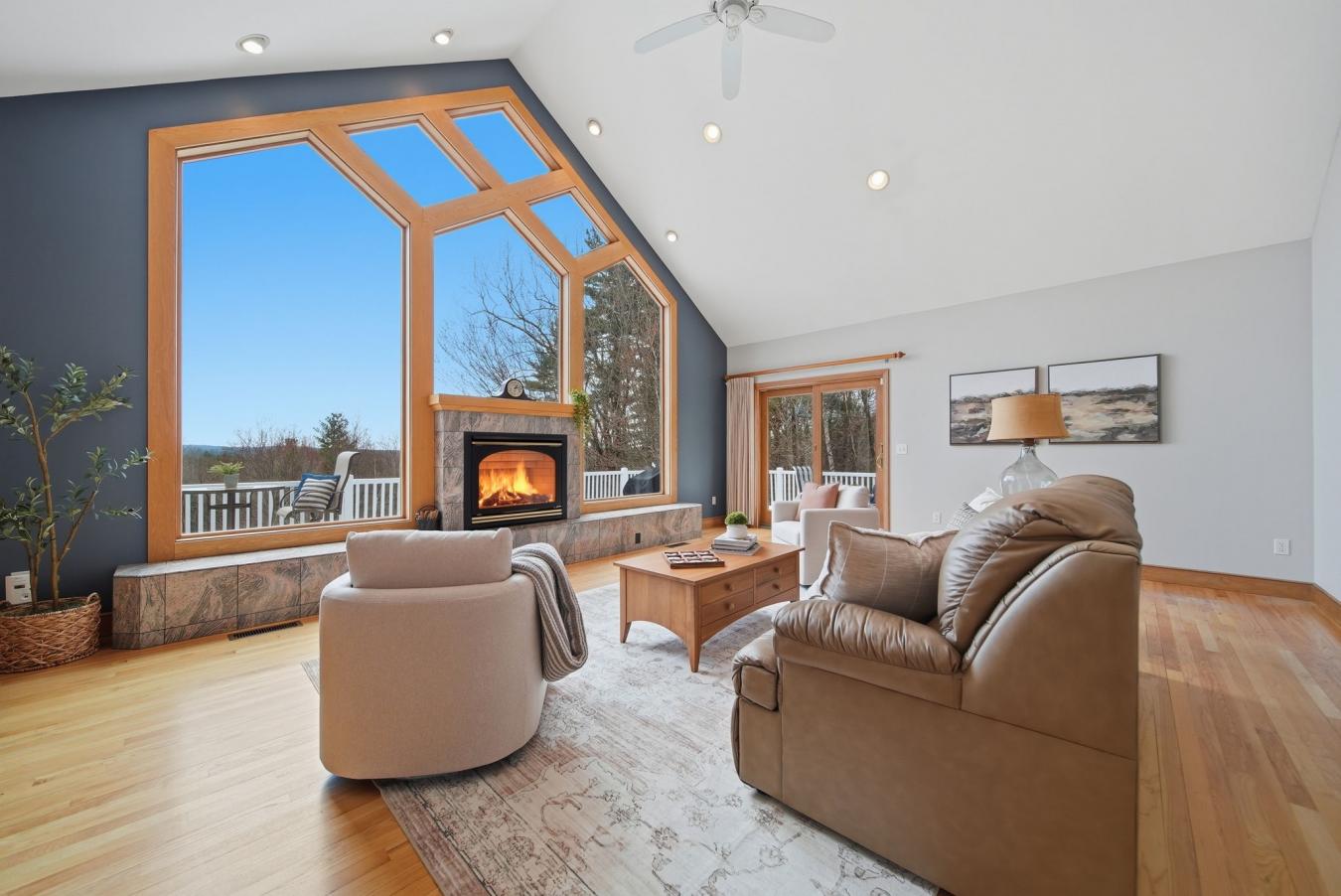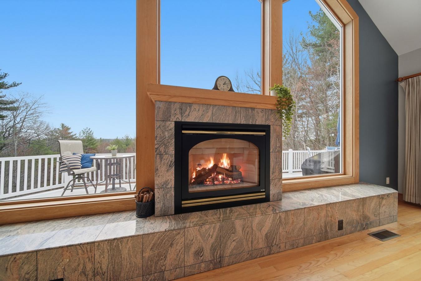 Multigenerational Living at Its Finest! A soaring wall of windows frames sweeping views of your own private grounds, 3.55 acres of rolling landscape that feels like a retreat the moment you arrive. Perched at the top of an established cul-de-sac, this executive-style ranch simply cannot be replicated. Your own slice of nature right outside your door, with natural light pouring in from every angle. The floor plan is designed for the way people truly want to live: connected, yet with space to breathe. Single-level living is effortless on either floor, with multiple primary suites, laundry on both levels, large walk-in closets, and an attached two-car garage, all thoughtfully designed for comfort and accessibility. A convenient elevator connects seamlessly between floors, where a separate lower-level suite offers the people you love a space of their own, independent, private, and always close. This layout provides something most homes simply cannot offer, flexibility. The chefs kitchen is appointed with a gas range, double oven, custom tile backsplash, large walk-in pantry, and breakfast bar. The deck wraps around beautifully, flowing from the kitchen to the living room and spilling naturally into the yard. White oak hardwood floors, a gas fireplace, and Anderson windows/sliders lend a polished, timeless character to every room. Upper and lower decks both feature retractable awnings, and the irrigated grounds have been thoughtfully maintained. Everything has been considered: whole-house standby generator, buried propane tank, updated water filtration system, underground pet fence, and a new detached shed. Rarely does a home offer this much thought, this much land, and this much flexibility, all in the very desirable town of Londonderry, NH.