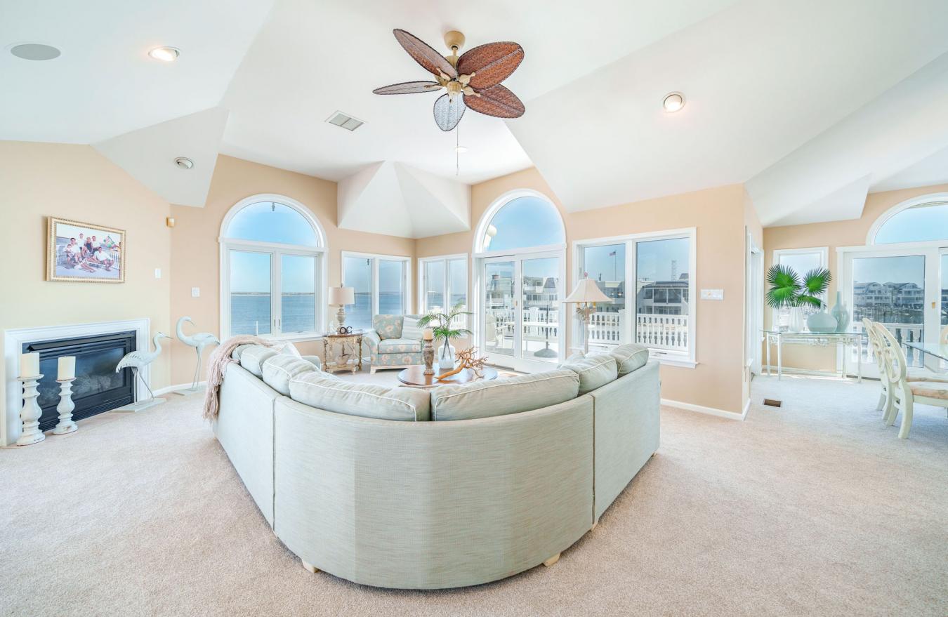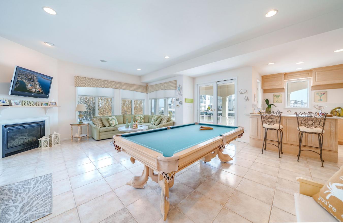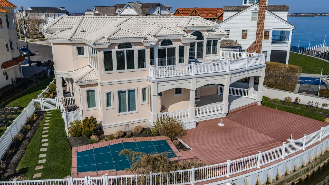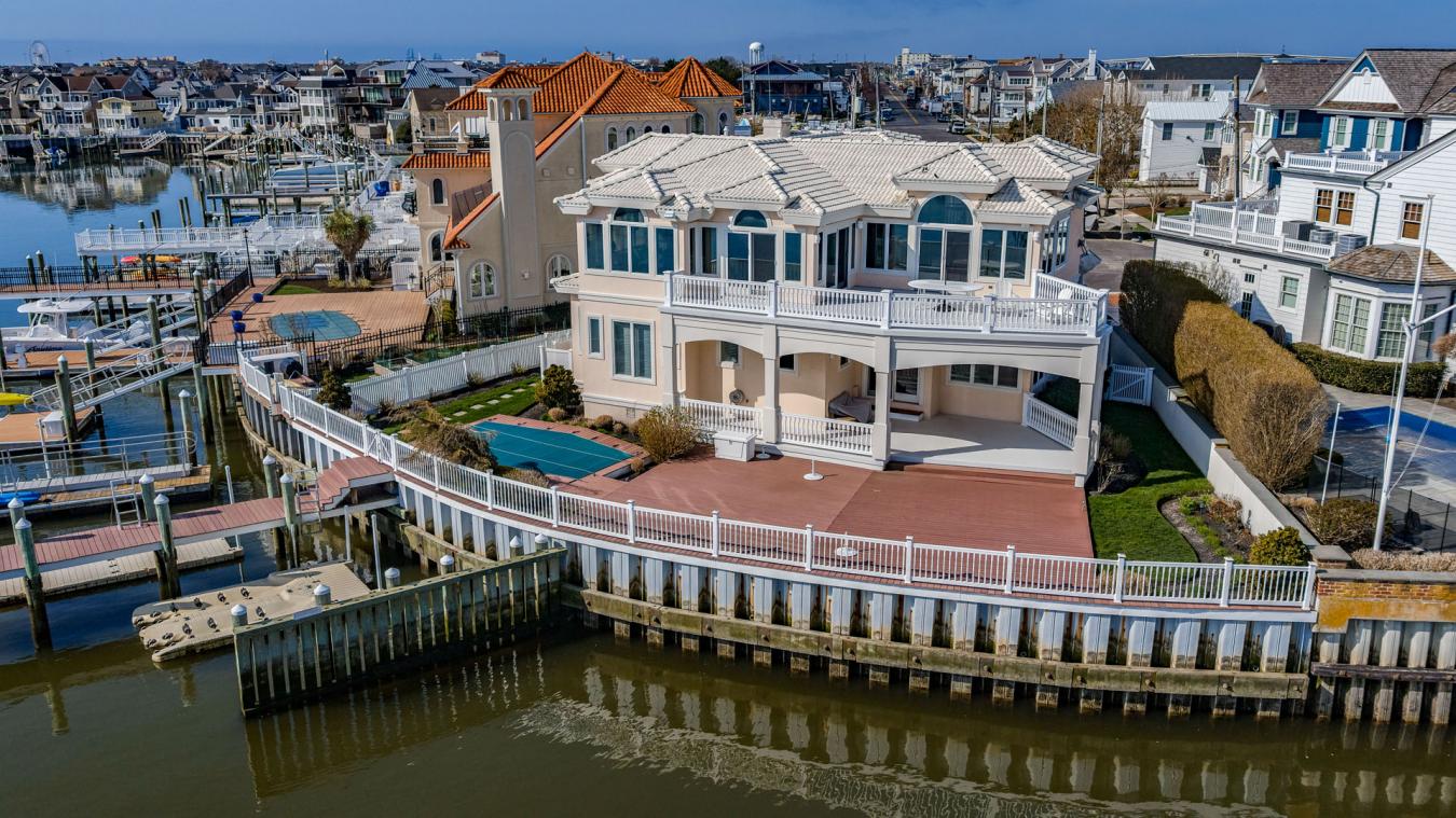 One-of-a-kind opportunity in the prestigious Gardens Lagoon section of Ocean City, tucked away on a quiet, private cul-de-sac where properties like this rarely come up. Offering 98.7 ft of bayfront bulkhead, theres plenty of room for large boats, multiple watercraft, and all your bayfront toys. Enjoy open bay views while still being positioned in the lagoon for added protection and calmer water. This immaculate 4BR, 3.5BA home features tiled bathrooms throughout and is set up perfectly for living and entertaining. First floor includes a spacious family room with bar, bayfront bedroom, a junior suite with private bath, a huge laundry room, plus two additional bedrooms and baths. The second floor offers an upside-down layout with a wide-open living area, sitting space, dining area, and large kitchen-all capturing panoramic bay and lagoon views. Private primary suite with walk-in closet. Exterior features include two 40 ft boat slips, a floating dock, two jet ski ports, huge bayfront deck, second-floor deck, and inground pool. Gas heat, central air, low-maintenance stucco siding, terracotta roof, 2-car garage, and parking for 4 cars. Deepwater with quick access to the Great Egg Inlet. Seller requests closing after the summer season.
