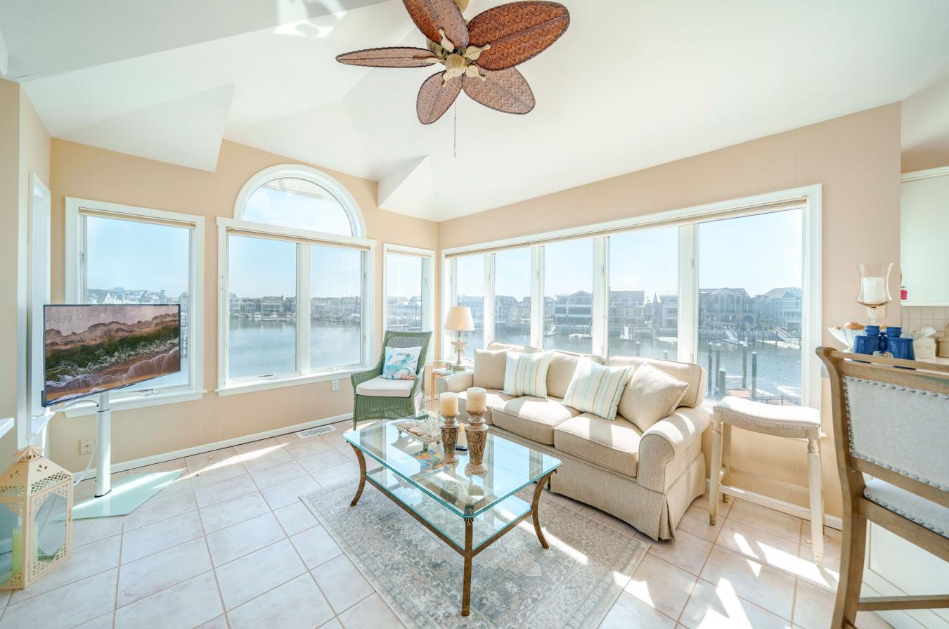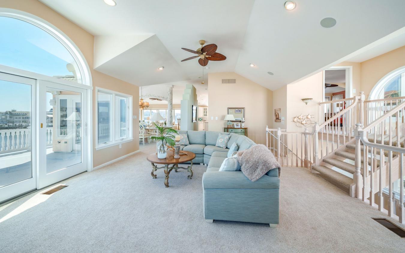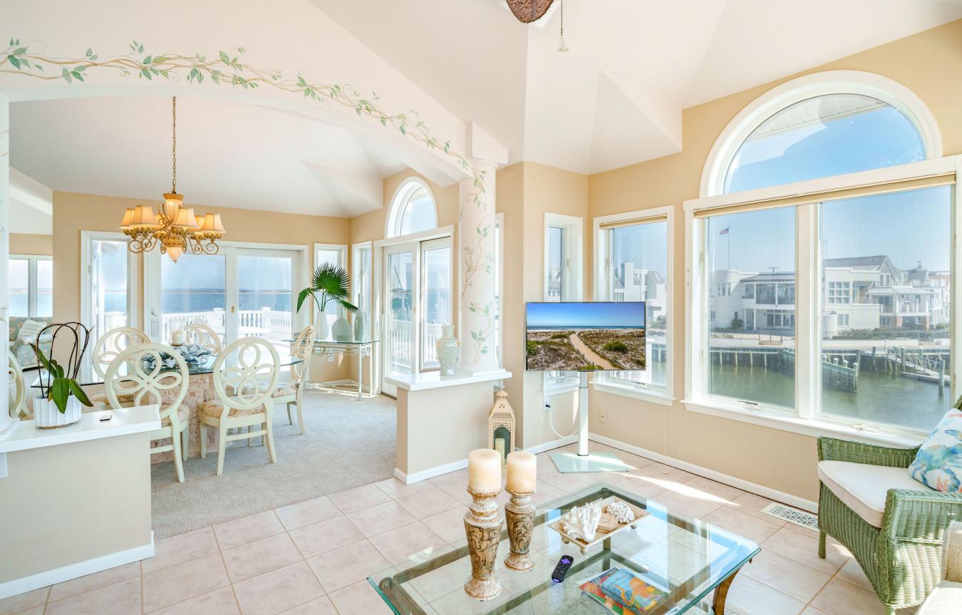 One-of-a-kind opportunity in the prestigious Gardens Lagoon section of Ocean City, tucked away on a quiet, private cul-de-sac where properties like this rarely come up. Offering 98.7 ft of bayfront bulkhead, theres plenty of room for large boats, multiple watercraft, and all your bayfront toys. Enjoy open bay views while still being positioned in the lagoon for added protection and calmer water. This immaculate 4BR, 3.5BA home features tiled bathrooms throughout and is set up perfectly for living and entertaining. First floor includes a spacious family room with bar, bayfront bedroom, a junior suite with private bath, a huge laundry room, plus two additional bedrooms and baths. The second floor offers an upside-down layout with a wide-open living area, sitting space, dining area, and large kitchen-all capturing panoramic bay and lagoon views. Private primary suite with walk-in closet. Exterior features include two 40 ft boat slips, a floating dock, two jet ski ports, huge bayfront deck, second-floor deck, and inground pool. Gas heat, central air, low-maintenance stucco siding, terracotta roof, 2-car garage, and parking for 4 cars. Deepwater with quick access to the Great Egg Inlet. Seller requests closing after the summer season.