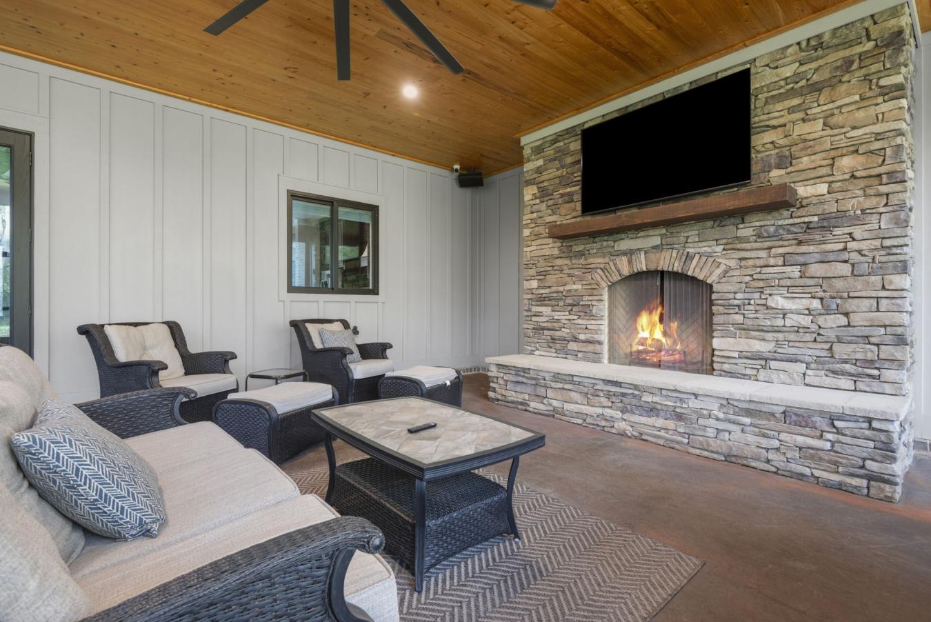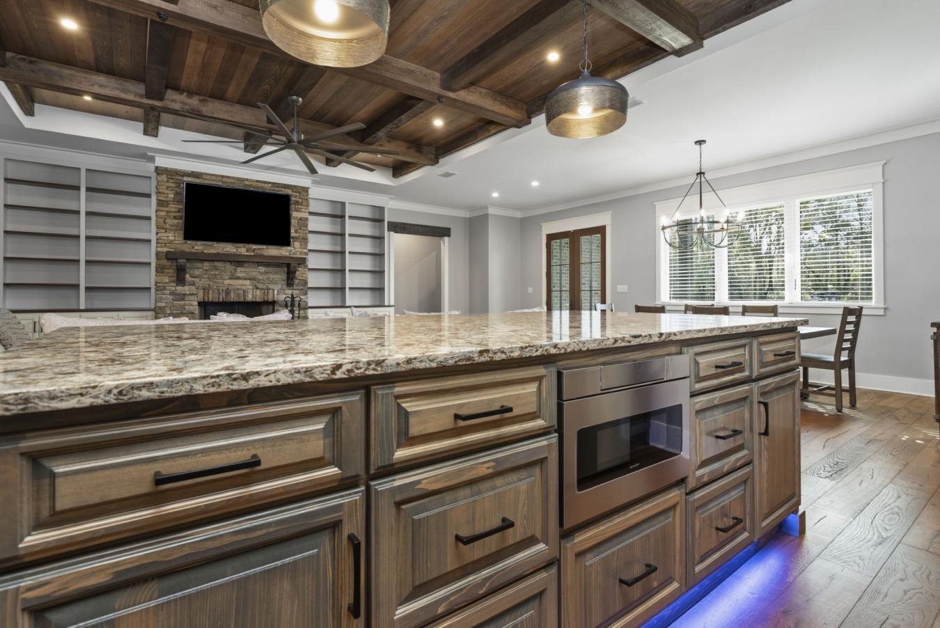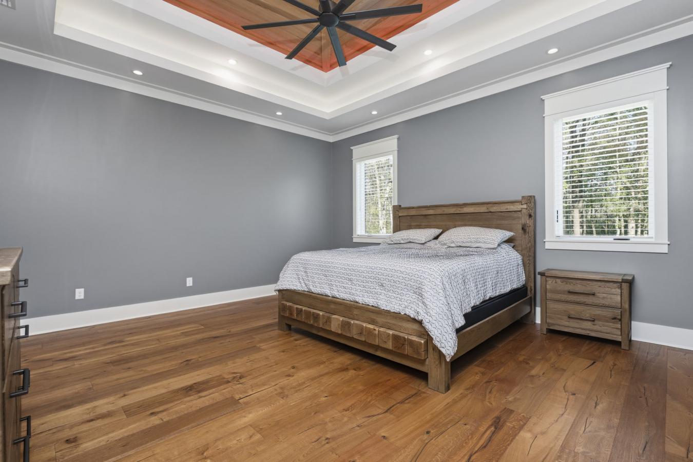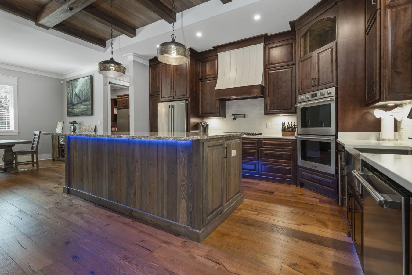 Welcome to 9501 Ben Hamilton Road! A spectacular GOLD-FORTIFIED custom-built home completed in 2023, nestled on 5.5 beautiful acres with a mix of cleared land and wooded privacy, offering an exceptional blend of luxury, comfort, and nature. The main home features 4,557 sq. ft. of heated and cooled living space, with an additional 1,786 sq. ft. heated and cooled garage, creating an incredible amount of functional space for everyday living, storage, hobbies, and entertaining. Designed with both comfort and style in mind, the main level features an open-concept layout connecting the kitchen, living, and dining areas. The chefs kitchen is beautifully appointed with quartz countertops, double ovens, a five-burner gas cooktop, stainless farmhouse sink, drawer microwave, and a spacious walk-in pantry with its own freezer. The family room is anchored by a striking stone wood-burning fireplace with gas starter, framed by custom built-in bookcases. The oversized primary suite is a true retreat, highlighted by a double tray ceiling and a spa-inspired bath with a soaking tub, walk-in shower with multiple shower heads, and a customized walk-in closet. Conveniently tucked nearby for privacy is the well-equipped laundry room featuring Electrolux appliances, cabinetry, and countertop workspace. On the opposite side of the home, two additional bedrooms each offer private en-suite baths and walk-in closets with built-ins. Upstairs, youll find an oversized rec room, a fourth bedroom currently serving as an exercise room with cushioned flooring, a full bath, dedicated office area, and a walk-up attic providing outstanding storage. The outdoor living spaces are just as impressive. The screened back porch is built for entertaining, featuring a full outdoor kitchen with hibachi grill, Green Egg grill, broiler, wood-burning fireplace with gas starter, and space for TVs. The heated and cooled triple garage includes a third bay with a 14 x 12 door designed to accommodate an RV or boat, plus sewer and power hookups for RV use. Additional features include engineered hardwood flooring and tile throughout, cypress wood accents on tray ceilings in the living room, garage, and back porch, LED lighting in the kitchen and primary suite, three HVAC systems, irrigation system, central shop vac, and a current termite bond that conveys. With GOLD-FORTIFIED construction, new custom craftsmanship, acreage, and high-end details throughout, this is truly a rare find.