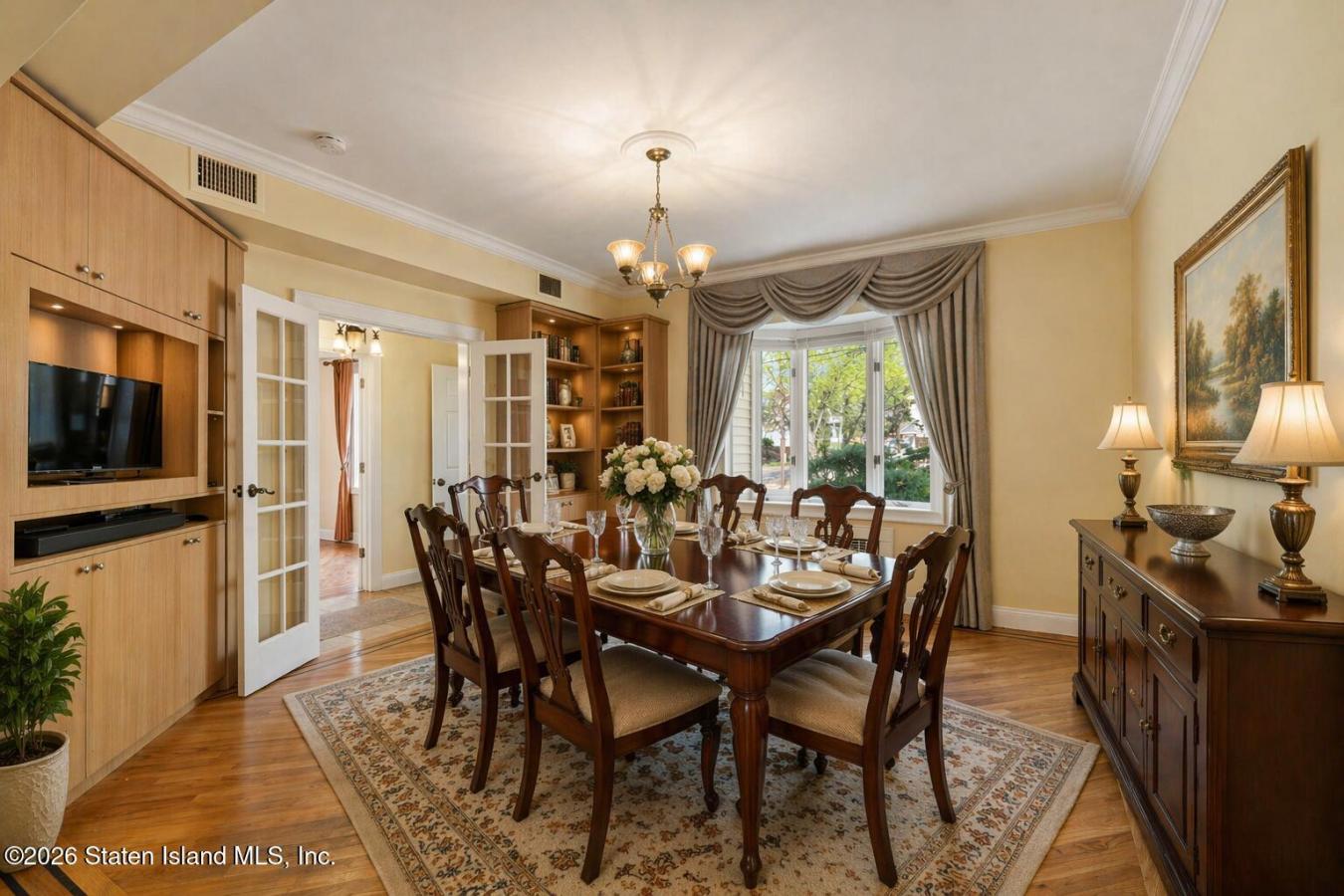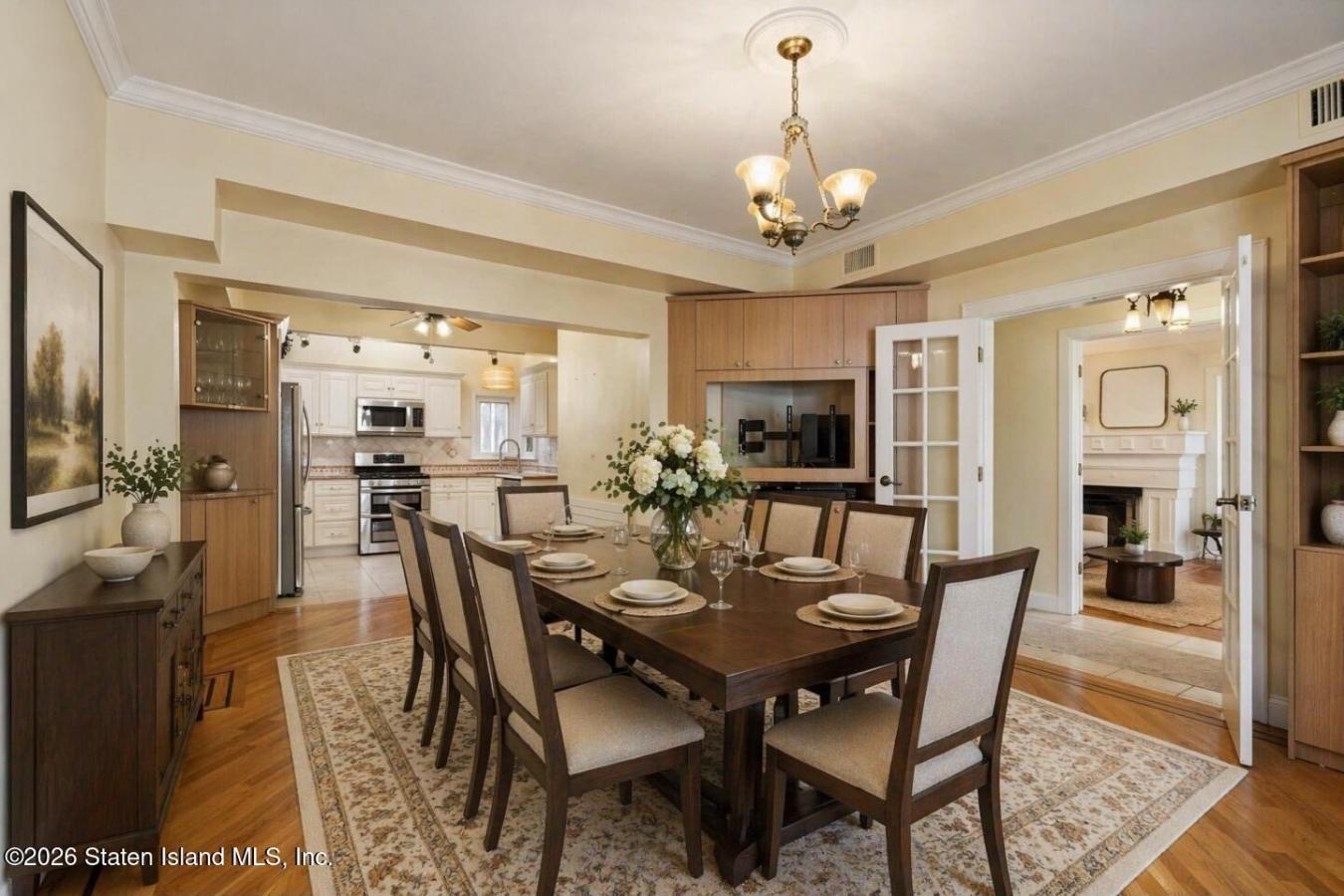 94 Hart Boulevard: Timeless Craftsmanship, Extraordinary Space, Unbeatable Access. Welcome to 94 Hart Boulevard, a center-hall Colonial where timeless elegance meets modern refinement on one of Randall Manors most distinguished blocks. Set on a stately corner property of more than 7,900 square feet, the home announces itself with mature landscaping and handsome, handmade Belgian block walls lining the perimeter of the property-the kind of curb appeal that makes passersby slow their stride. Its architectural craftsmanship of a caliber that has become genuinely rare in todays market. Step through the welcoming foyer into rooms that unfold with real architectural intention. The formal living room centers on a wood-burning fireplace, grounded by hardwood floors with mahogany inlays-details from an era when such work was demanded, not merely admired. The gracious dining room hosts everything from Sunday dinners to candlelit gatherings, while the renovated kitchen delivers for the serious home cook, with stainless steel appliances and cabinetry that balances warmth with polish. Just off the kitchen, a screened porch with rosewood flooring invites slow mornings over coffee, overlooking a fenced, tree-lined backyard so peaceful its very easy to forget that youre in the city. A first-floor bedroom or home office, for those whose commute now involves slippers and a gracious powder room, rounds out the main level with rare flexibility. Downstairs, the finished basement earns its keep with additional living space, a full bath, a wet bar built for entertaining, laundry, and generous storage. Central air keeps the entire home comfortable year-round. Upstairs, three well-appointed bedrooms share a full bath, each with hardwood floors and custom built-in closets. The expansive third-floor attic presents a canvas of possibility: a fifth bedroom, a creative studio, or a childrens playroom limited only by imagination. Outside, professionally landscaped grounds feel like a private retreat. Paved paths wind past a patio and smoker grill, an alfresco dining area, a charming arbor, and a tucked-away shed, all framed by mature trees and privacy fencing, with the hand-made Belgian block walls embracing the property with quiet distinction. A detached two-car garage plus driveway parking for two additional vehicles rounds out the property. An address that delivers what few New York homes can. Randall Manor is one of Staten Islands most coveted neighborhoods, moments from Snug Harbor Cultural Center, the Staten Island Botanical Garden, Silver Lake Park and Golf Course, and Clove Lakes. Manhattan is a scenic ferry ride away (skyline views included) with straightforward access to Brooklyn via the Verrazzano and quick connectivity to New Jersey via the Goethals and Bayonne Bridges, putting the Jersey City and Newport corporate corridors within easy reach. Its the rare combination of true New York connectivity paired with the scale, parking, and outdoor space that simply cant be found in most urban markets. This is not merely a house. It is a rare convergence of character, space, and location that honestly does not come along often. Schedule your private tour today and prepare to fall irreversibly in love.