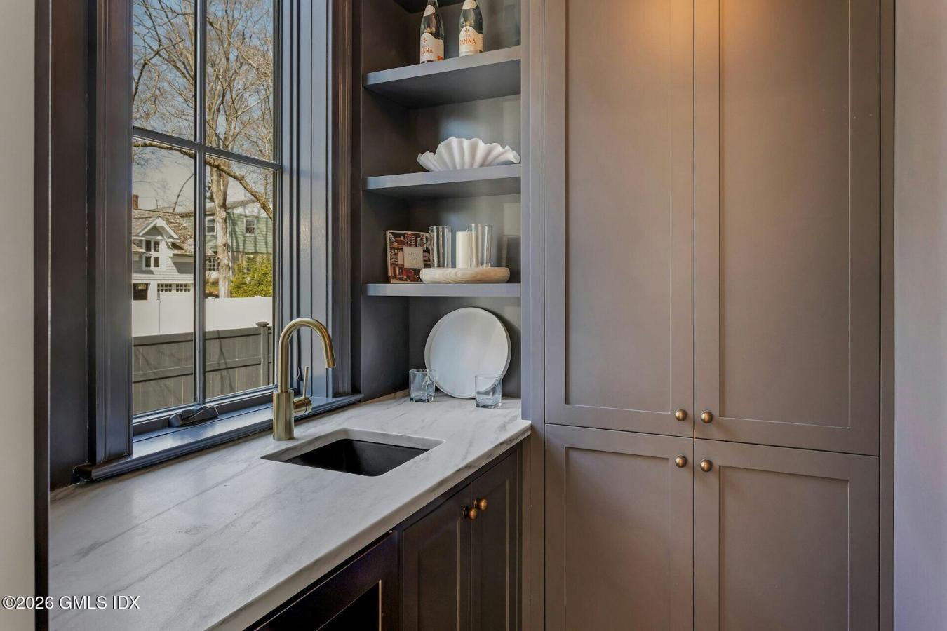 Some homes are built for the market. Others are built for a legacy. Set directly on the waterfront in Old Greenwich, this newly constructed residence is a masterclass in design, engineering and execution where every material, finish and feature was selected without compromise. Beyond a long, privately gated drive, sweeping cove views unfold, leading to a faade clad in premium Thermory wood siding beneath a Spanish slate roof an exterior that feels both grounded and enduring..Walls of Aluprof glass dissolve the boundary between interior and Long Island Sound, drawing light deep into nearly every principal room. The result is a seamless connection to the water, with unobstructed views that are impossible to replicate. Inside, large-scale radiant-heated Porcelanosa tiles grace the main and lower levels, setting a warm, modern foundation. At the heart of the home, a statement kitchen delivers both performance and presence; featuring custom Vimora cabinetry, top-of-the-line Gaggenau appliances and a fully equipped secondary prep kitchen designed for effortless entertaining at scale.Upstairs, European white oak introduce warmth, while radiant heat continues throughout all main spaces and baths reinforcing a consistent commitment to comfort and precision. The primary suite is conceived as a private retreat, oriented entirely toward the water. A fireplace anchors the space, while a private deck leads directly to the heated pool below. The bath offers a spa-like experience, featuring a sculptural soaking tub positioned toward the view and a separate steam shower. Custom Italian wardrobes complete the suite, incorporating bespoke detailing, opaque glass, and integrated features throughout. Additional bedrooms on this level are all ensuite, each perfectly positioned to capture water views.The lower level opens into a fully realized entertaining environment featuring a wine room, fitness center with sauna, guest accommodations, and a dramatic lounge anchored by an illuminated marble bar and a 162-inch screen. A concealed underground car gallery, accessed by hydraulic lift, offers a discreet and highly engineered space designed for discerning collectors. Outdoors, an expansive terrace and heated waterfront pool overlook the cove, creating a setting defined by privacy and open water. Minutes from Tods Point, Metro North, and the village of Old Greenwich, the property occupies that rare overlap of seclusion and convenience. With five bedrooms, five baths, and two powder rooms, every element has been resolved with intention. This is a rare chance to own a crown jewel waterfront property that stands in a league of its own. A defining waterfront residence where design, setting, and permanence align at the highest level.