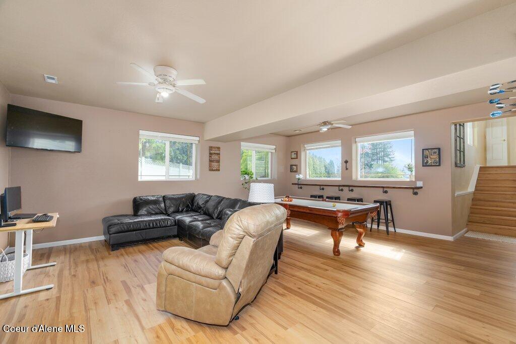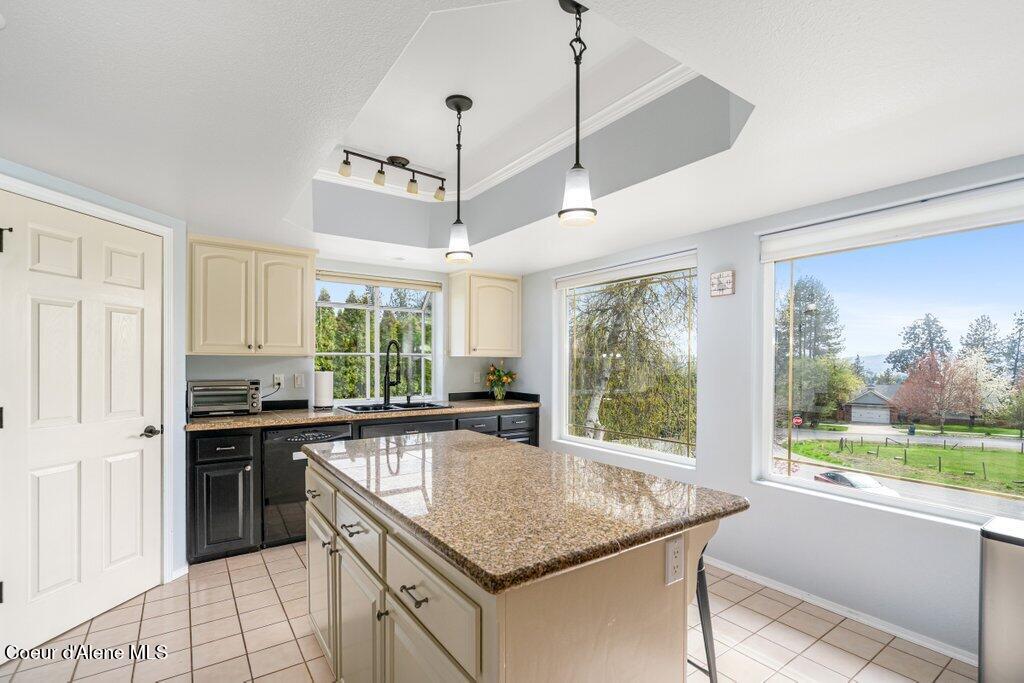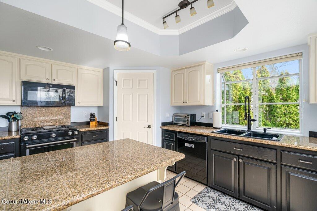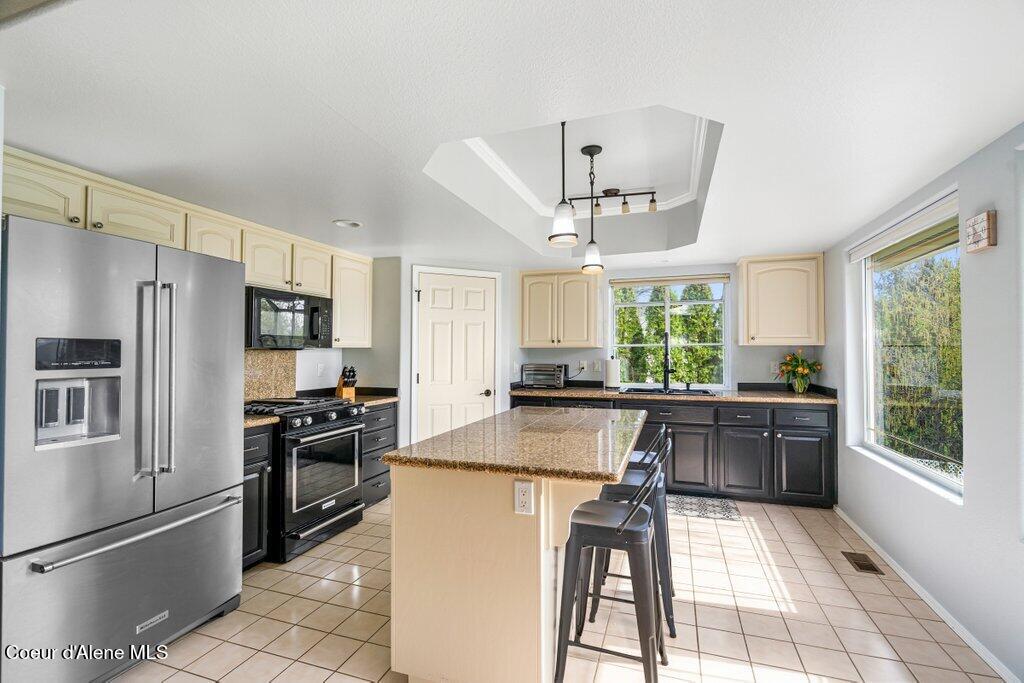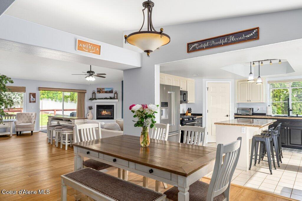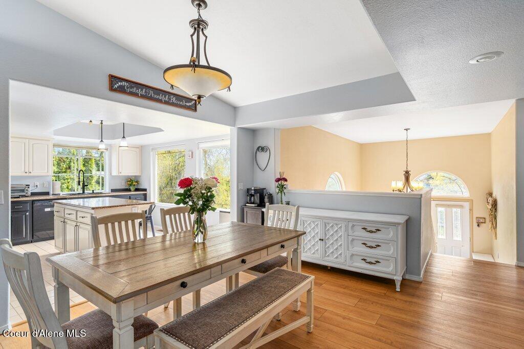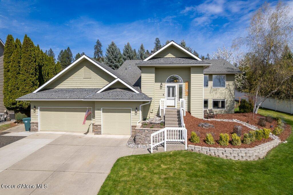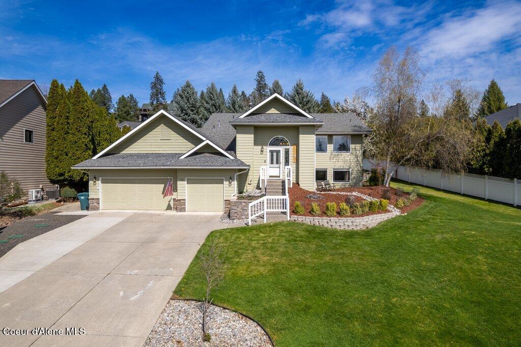 This Coeur dAlene home is nestled in the sought-after neighborhood of Woodland Heights; the stunning home offers curb appeal, spacious layout, and serene surroundings. Step inside to discover bright living areas, with large windows that flood the home with natural light.