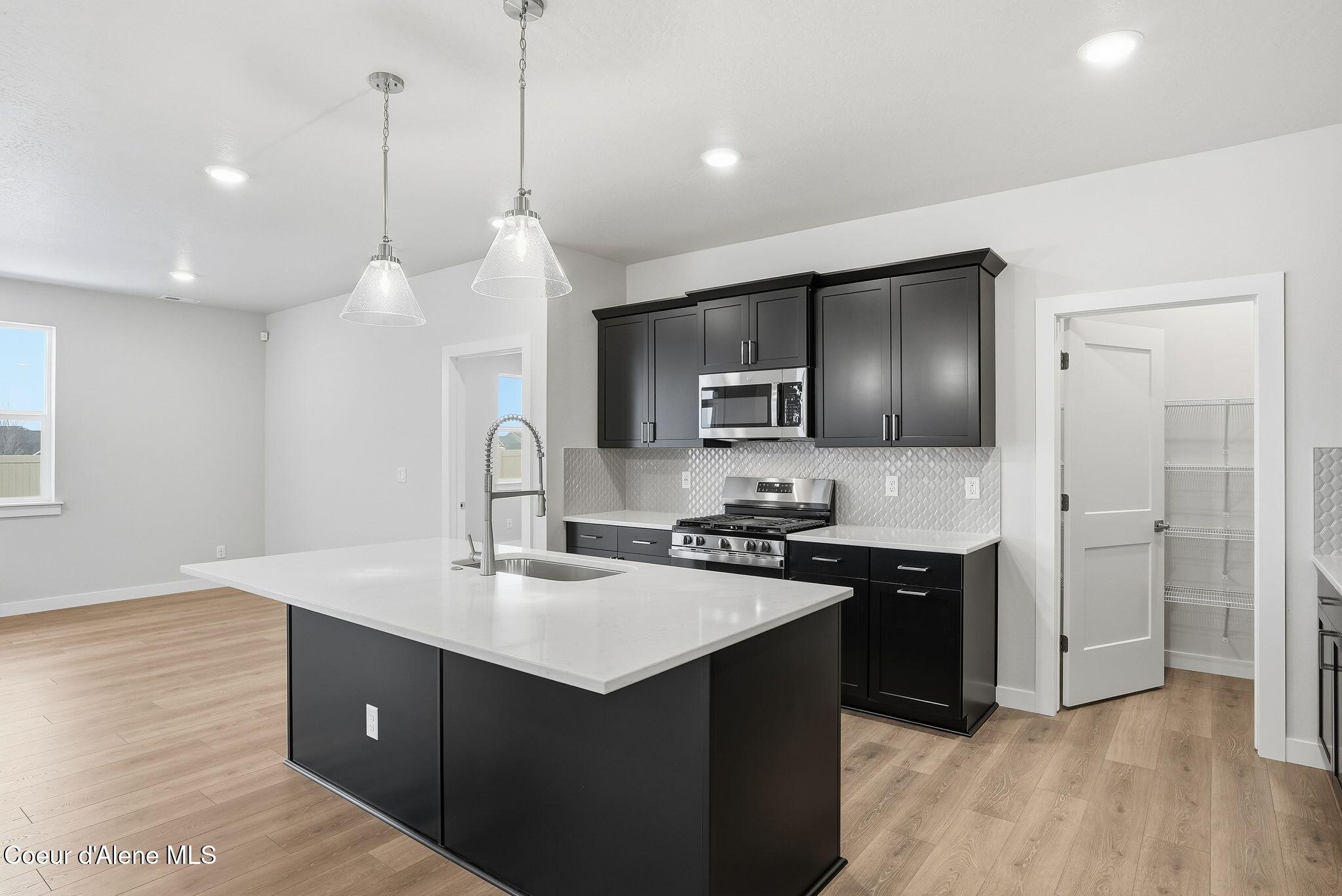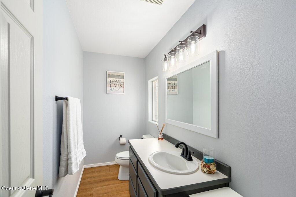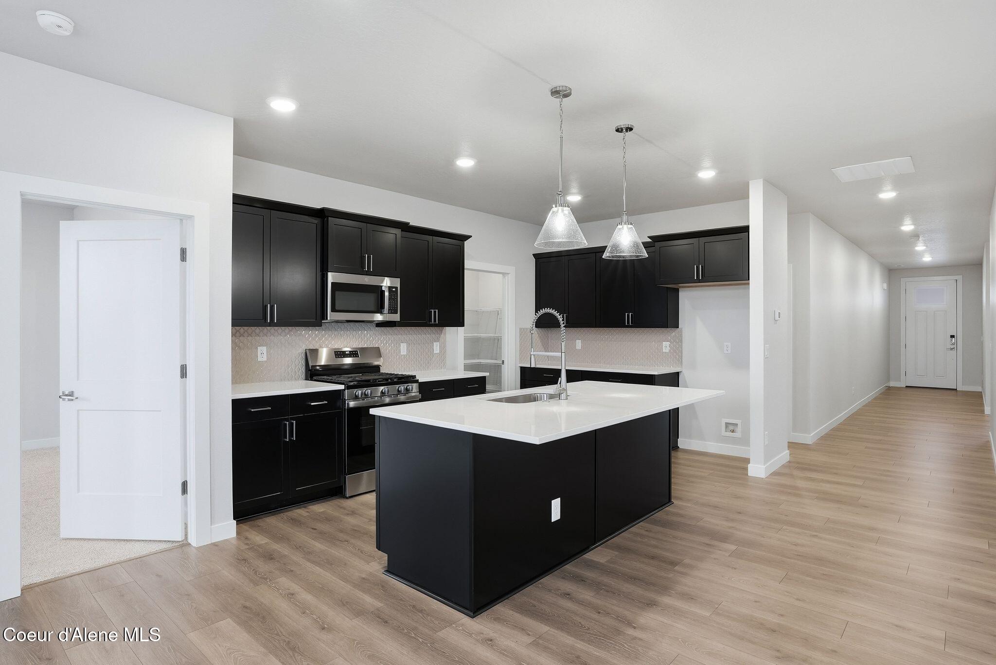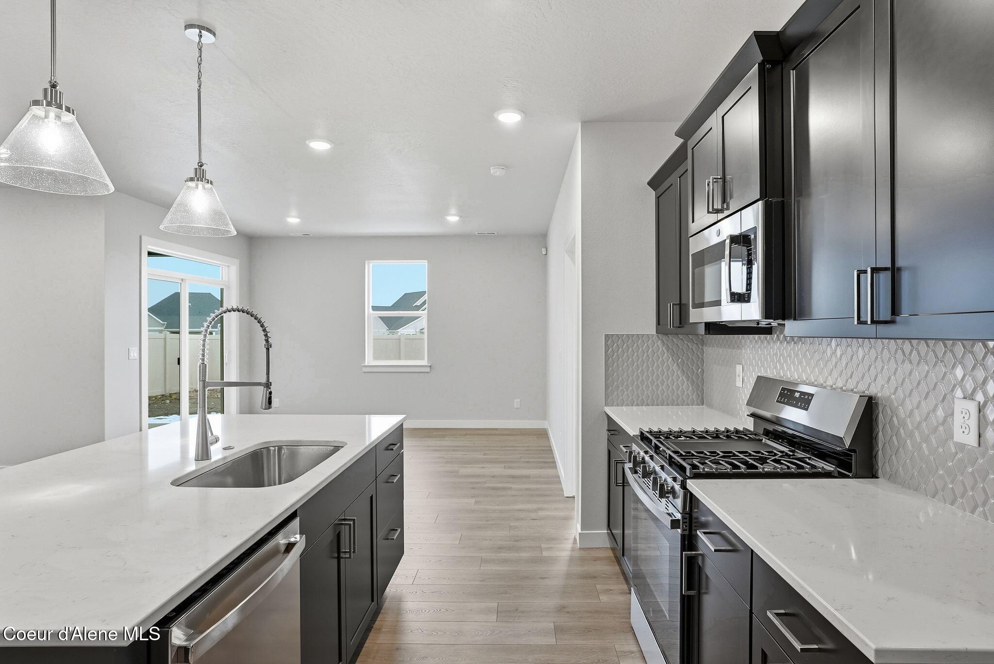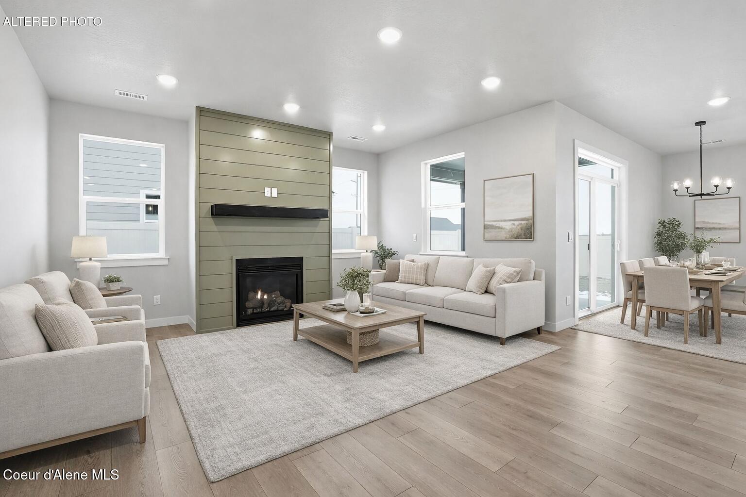 This Coeur dAlene home is nestled in the sought-after neighborhood of Woodland Heights; the stunning home offers curb appeal, spacious layout, and serene surroundings. Step inside to discover bright living areas, with large windows that flood the home with natural light.