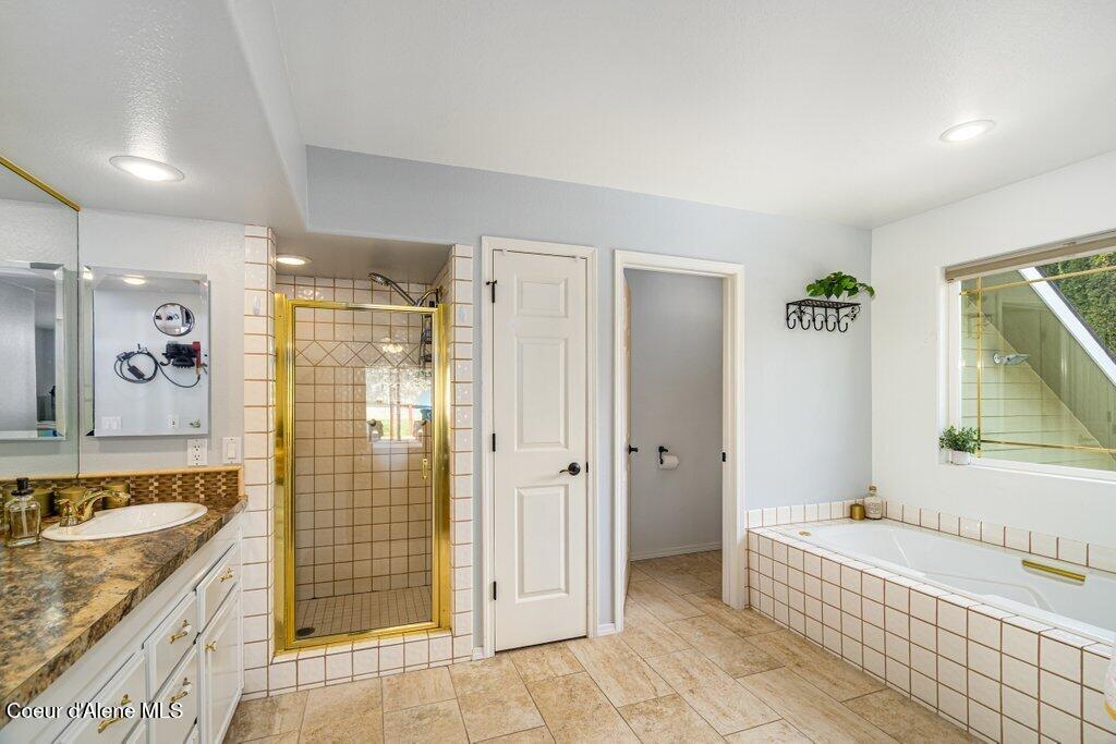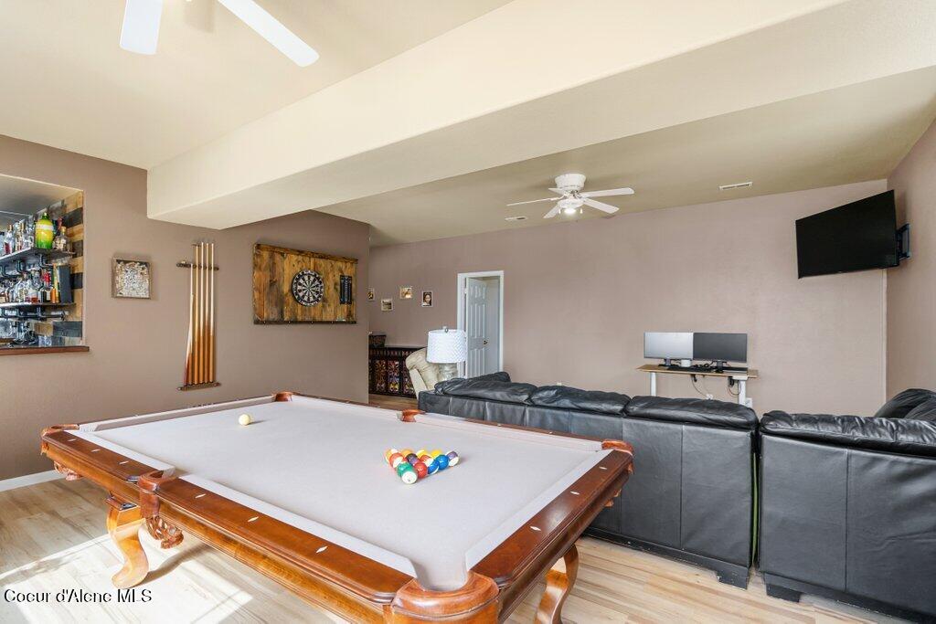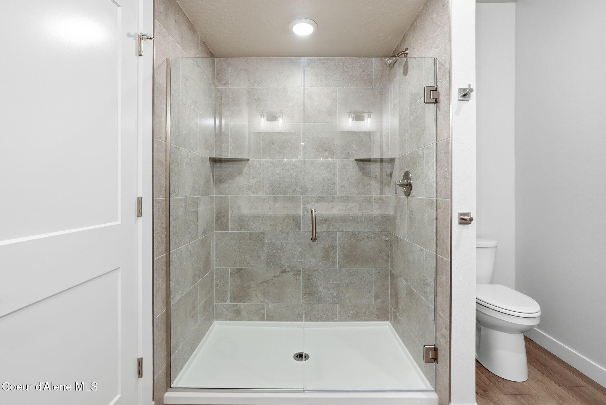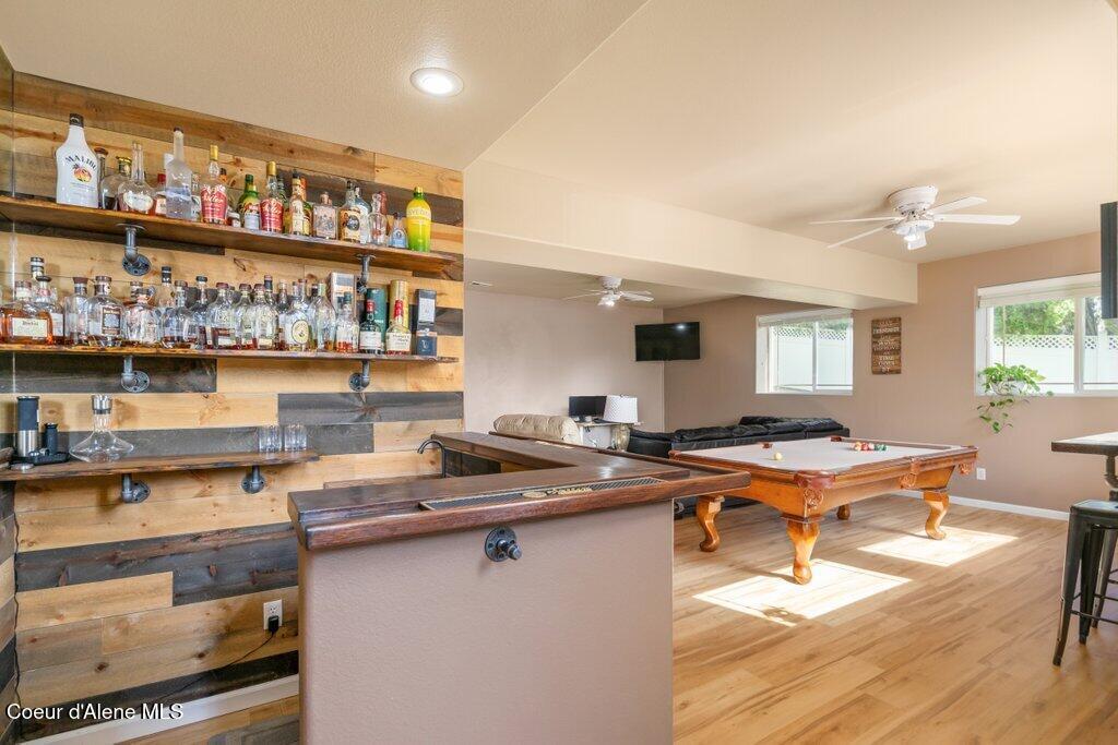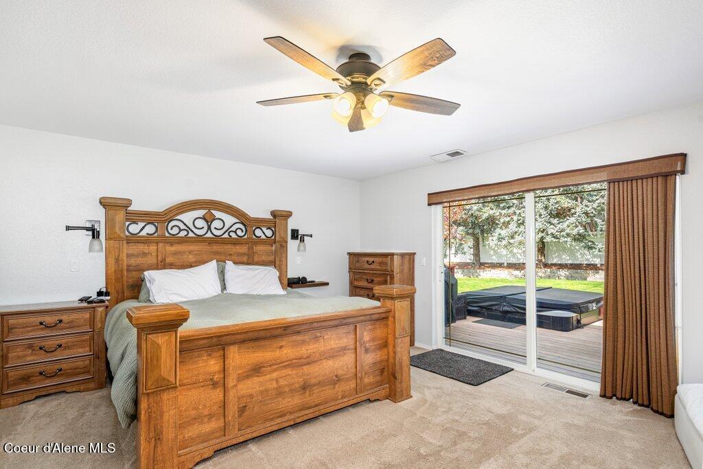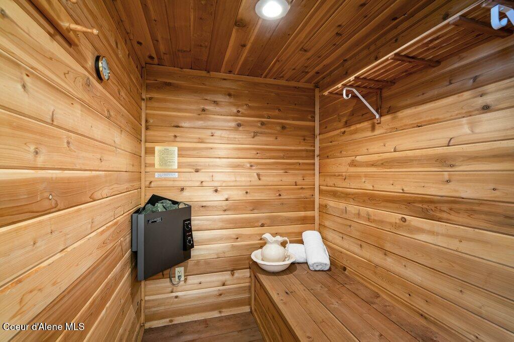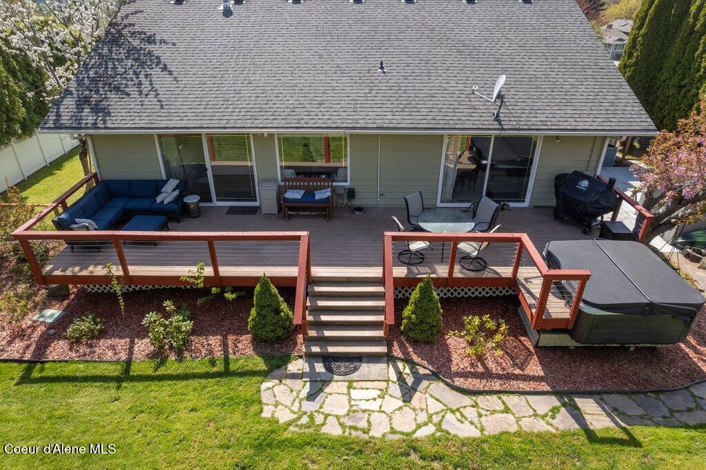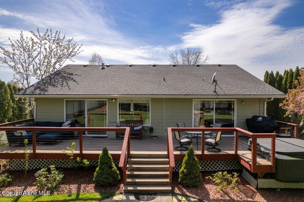 This Coeur dAlene home is nestled in the sought-after neighborhood of Woodland Heights; the stunning home offers curb appeal, spacious layout, and serene surroundings. Step inside to discover bright living areas, with large windows that flood the home with natural light. The daylight basement is equipped with 3 bedrooms, 2 baths including a built-in sauna and a large living room with a well-designed wet bar. The upstairs is situated with the kitchen, dining room, family room and a primary bedroom ensuite with a jetted tub, 2 closets with access to the back deck straight to the hot tub. The fully fenced yard is beautifully landscaped and feels private on this large lot. In addition to the 3-car garage, there is also a shed out back for all your storage needs.