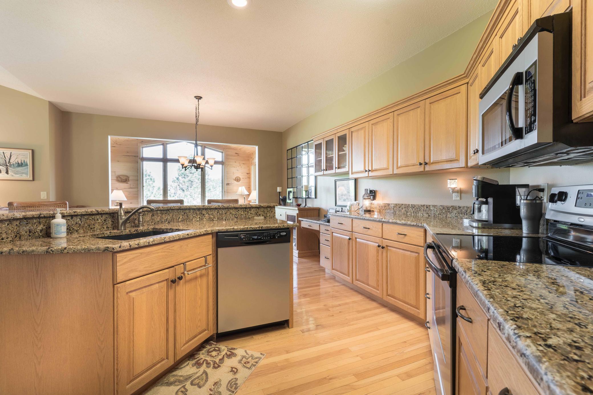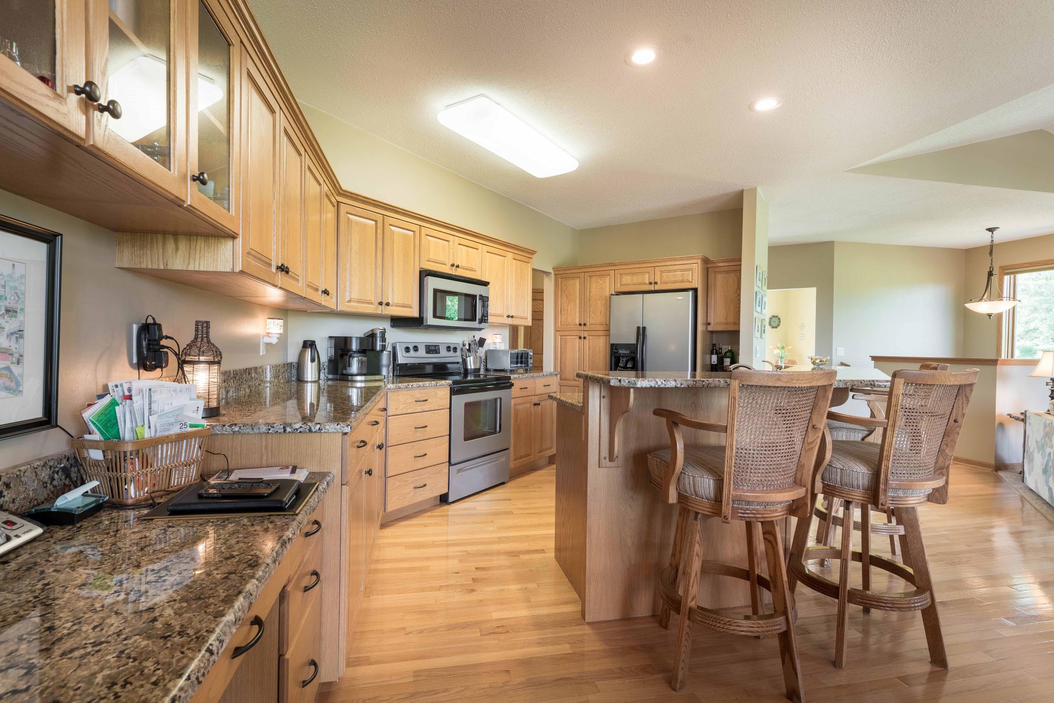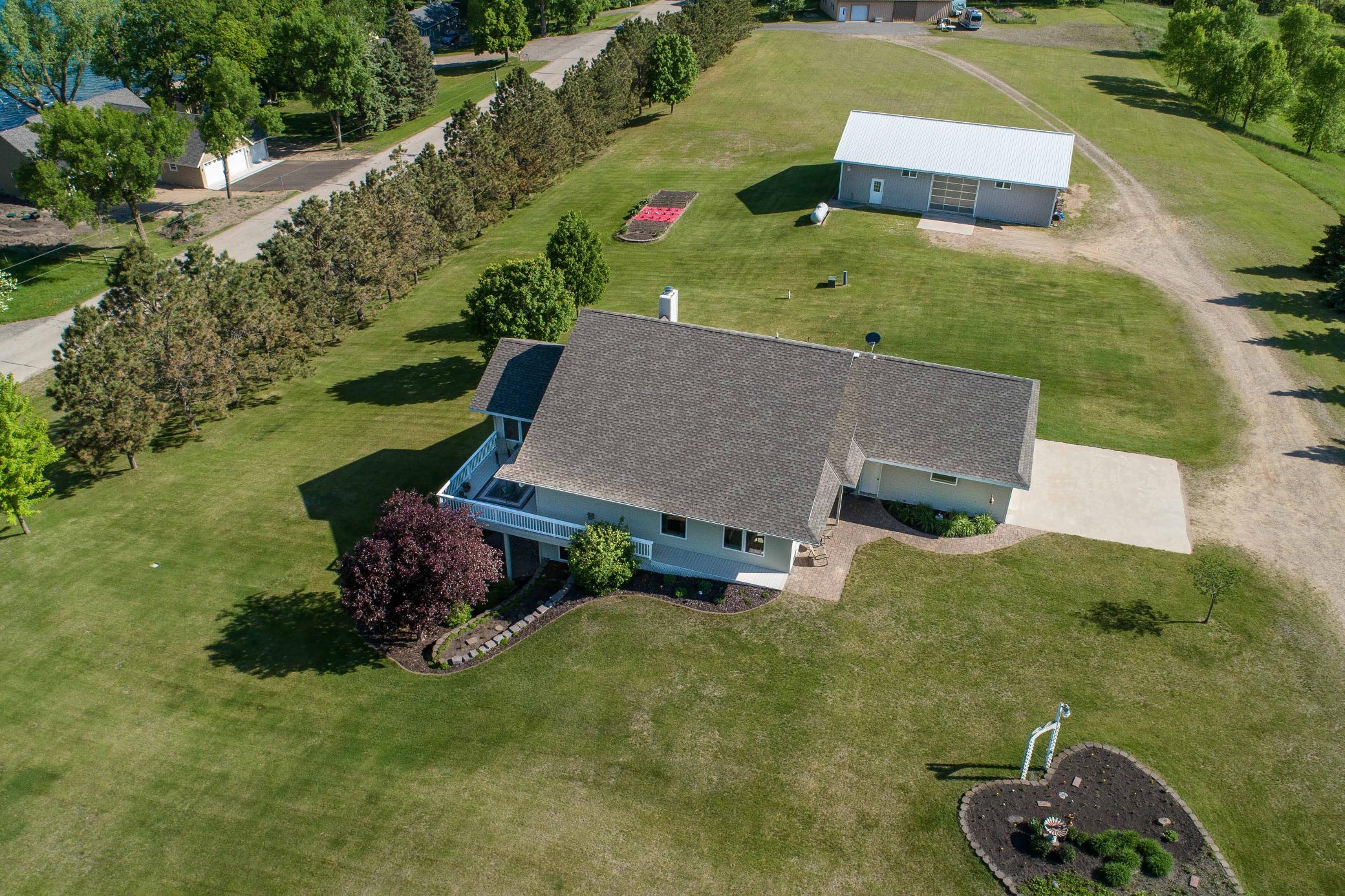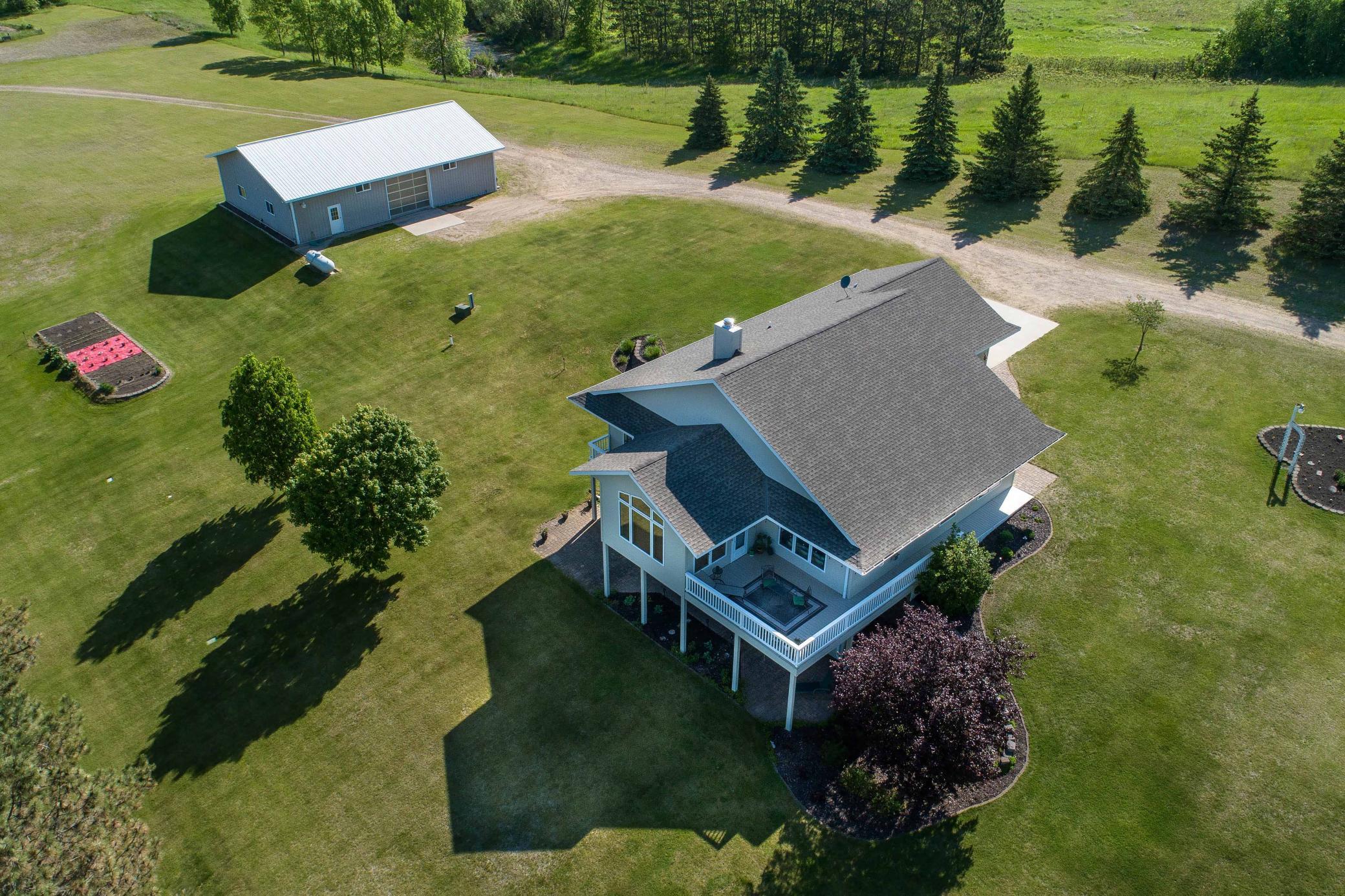 Well-maintained 3-bedroom, 3 bath home with 40 by 60 heated shop on 2.74 acres with great views of Eagle Lake. This property is within walking distance of crystal clear Eagle Lake public access, beach, and park. The kitchen has custom oak cabinets, granite countertops, hardwood floors, and a center island. There are two sunrooms, one for sunrises and the other to overlook Eagle Lake with beautiful sunsets. The main floor master bedroom has large windows towards the lake with a walk-in closet, jet tub, and shower. The main living room has a gas fireplace, a vaulted ceiling with plenty of windows for natural light. Going down the lower level, you will see a wood-burning fireplace with a brick surround and custom-built hickory cabinets in both the family room and the little kitchen area. The walkout goes out to a nice patio with tasteful landscaping. You wont find a cleaner, well-kept property like this one.