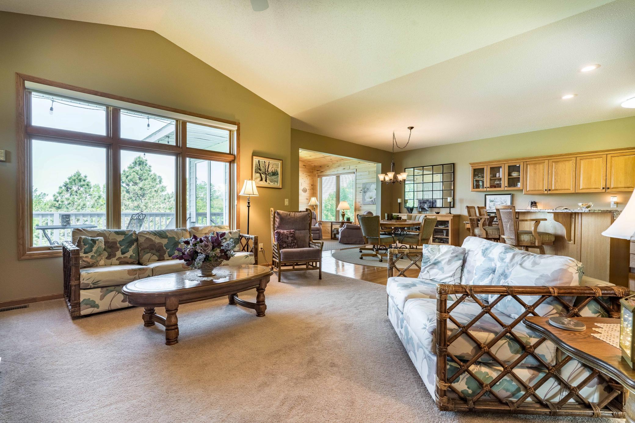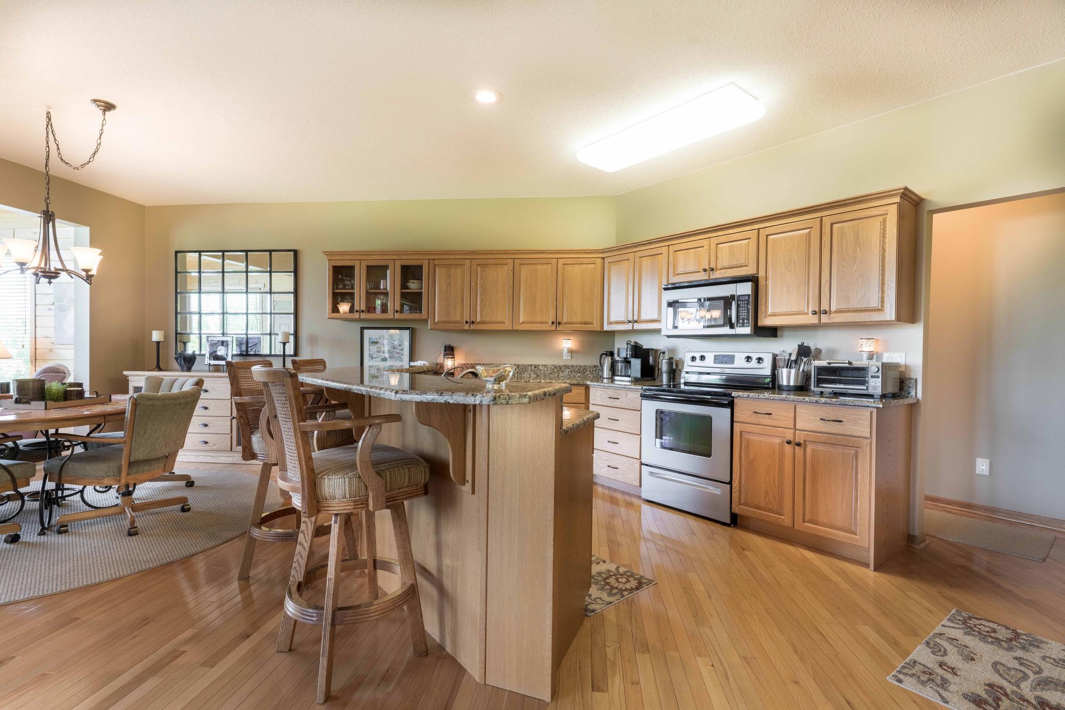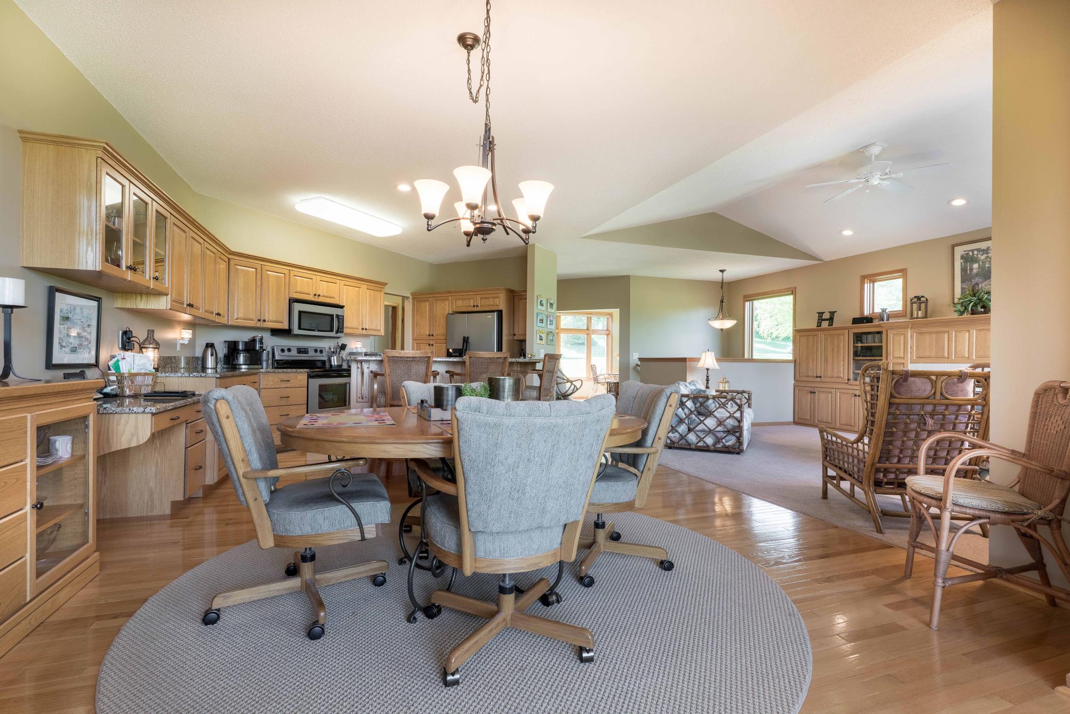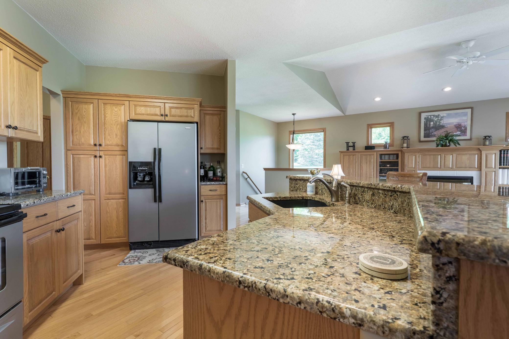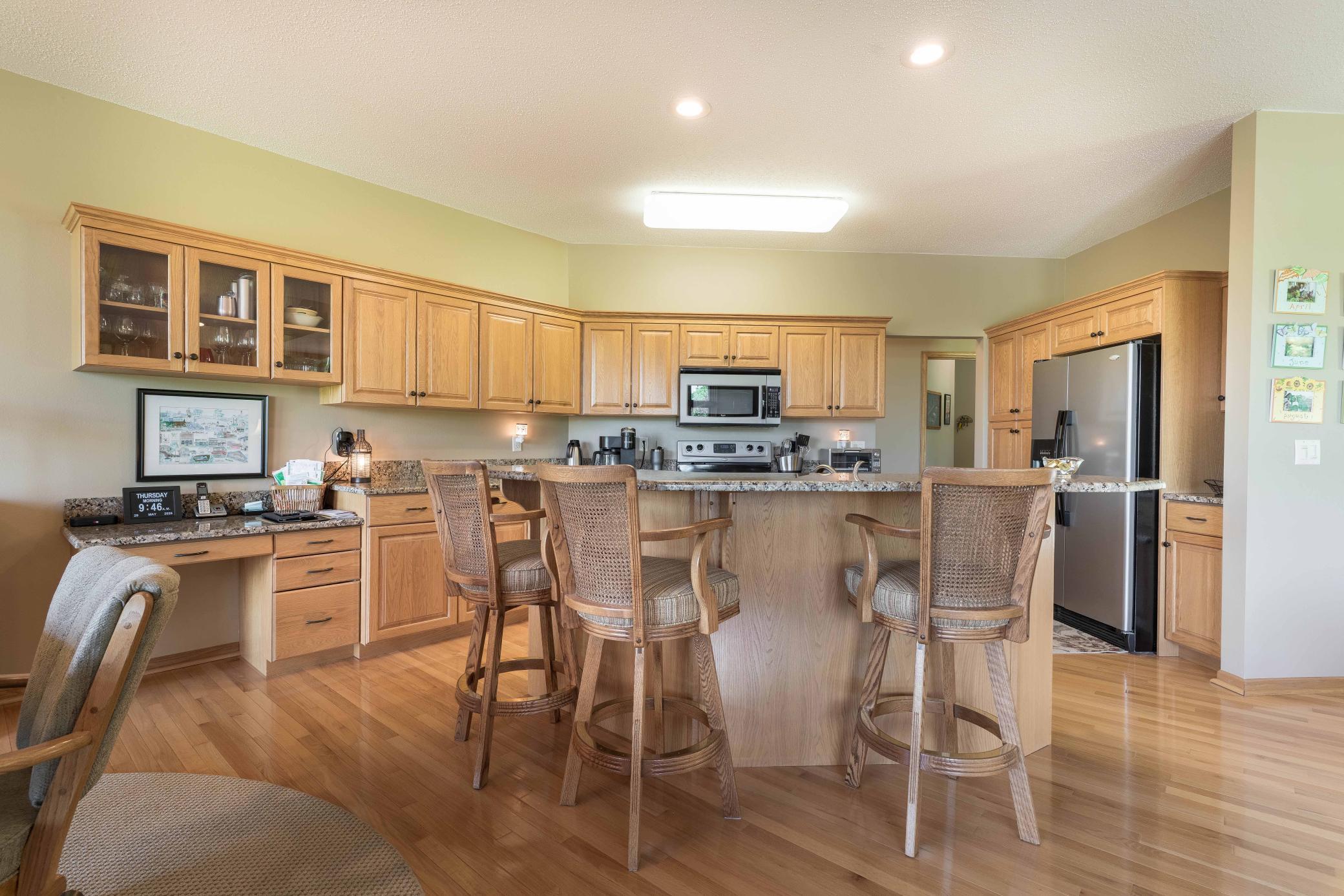 Well-maintained 3-bedroom, 3 bath home with 40 by 60 heated shop on 2.74 acres with great views of Eagle Lake. This property is within walking distance of crystal clear Eagle Lake public access, beach, and park. The kitchen has custom oak cabinets, granite countertops, hardwood floors, and a center island. There are two sunrooms, one for sunrises and the other to overlook Eagle Lake with beautiful sunsets. The main floor master bedroom has large windows towards the lake with a walk-in closet, jet tub, and shower. The main living room has a gas fireplace, a vaulted ceiling with plenty of windows for natural light. Going down the lower level, you will see a wood-burning fireplace with a brick surround and custom-built hickory cabinets in both the family room and the little kitchen area. The walkout goes out to a nice patio with tasteful landscaping. You wont find a cleaner, well-kept property like this one.