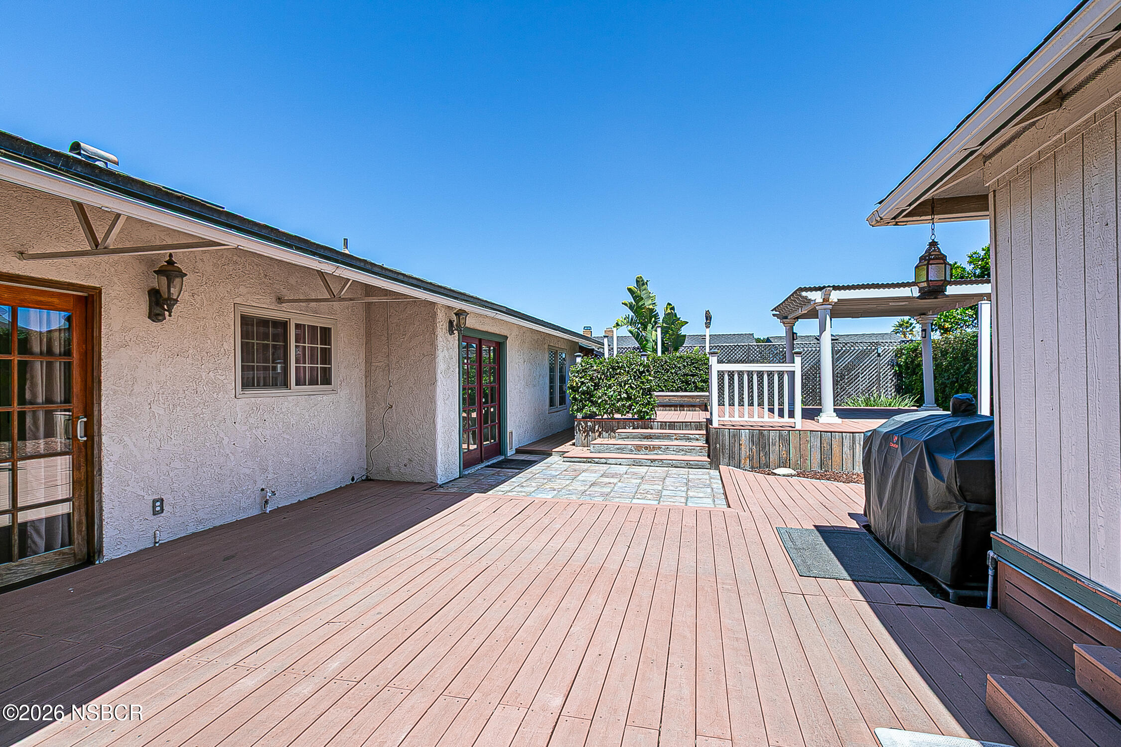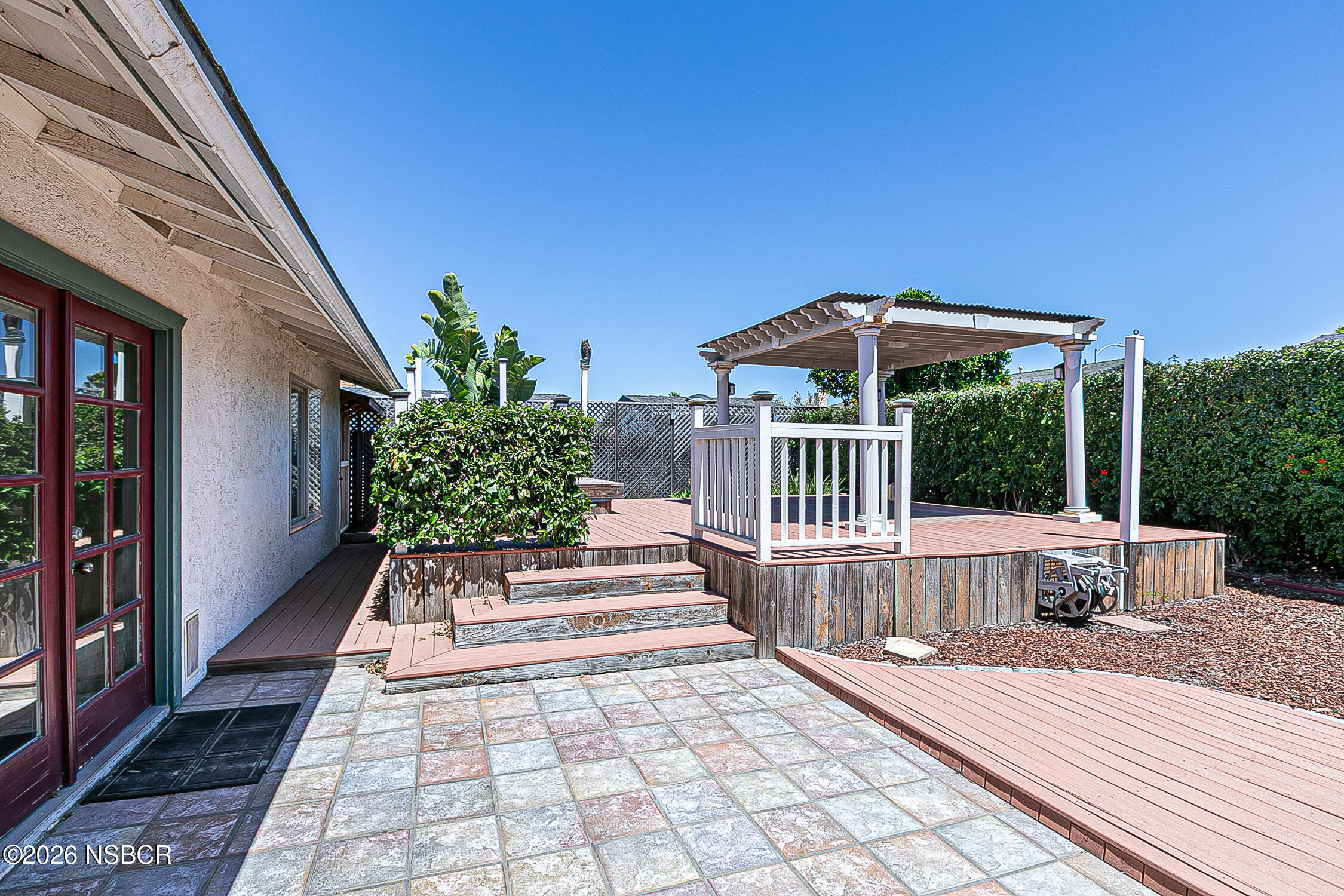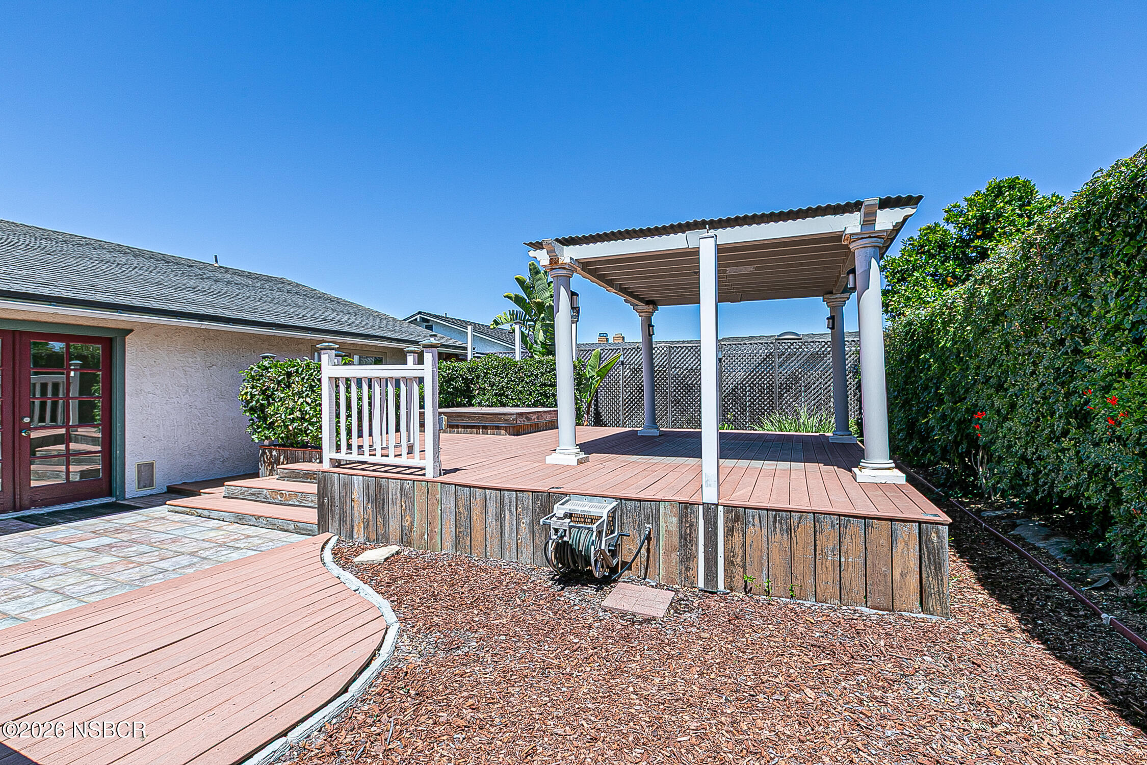 Welcome home to this beautifully updated 3-bedroom, 2-bath residence tucked away in a quiet cul-de-sac with excellent curb appeal. A front courtyard with stylish tile flooring creates a warm and inviting entry--perfect for relaxing or entertaining. Inside, the home is bright, open, and thoughtfully upgraded with some fresh interior paint, engineered laminate wood flooring, recessed lighting, and abundant windows and skylights that fill the space with natural light. The living area features a decorative fireplace with a classic mantle, adding charm and comfort. The kitchen has been upgraded with granite countertops, and sleek stainless steel appliances, Top of the line Jenn-Air. Tile flooring adds durability and style throughout key areas of the home. All three bedrooms are spacious, and the bathrooms have been tastefully remodeled. The Hall bathroom includes a walk-in, ADA-compliant shower with elegant tilework and decorative stone accents. Step outside through French doors from the dining area or sliding doors from the living to a private backyard retreat. Enjoy a covered deck with an overhang gazebo, a dedicated space for a hot tub, and a gas barbecue--ideal for gatherings and easy outdoor living. The yard is low-maintenance and offers multiple areas to relax and unwind. Bonus retreat/playroom/OFFICE or YOGA studio in the backyard. This home blends comfort, style, and functionality--perfect for everyday living and entertaining alike.
