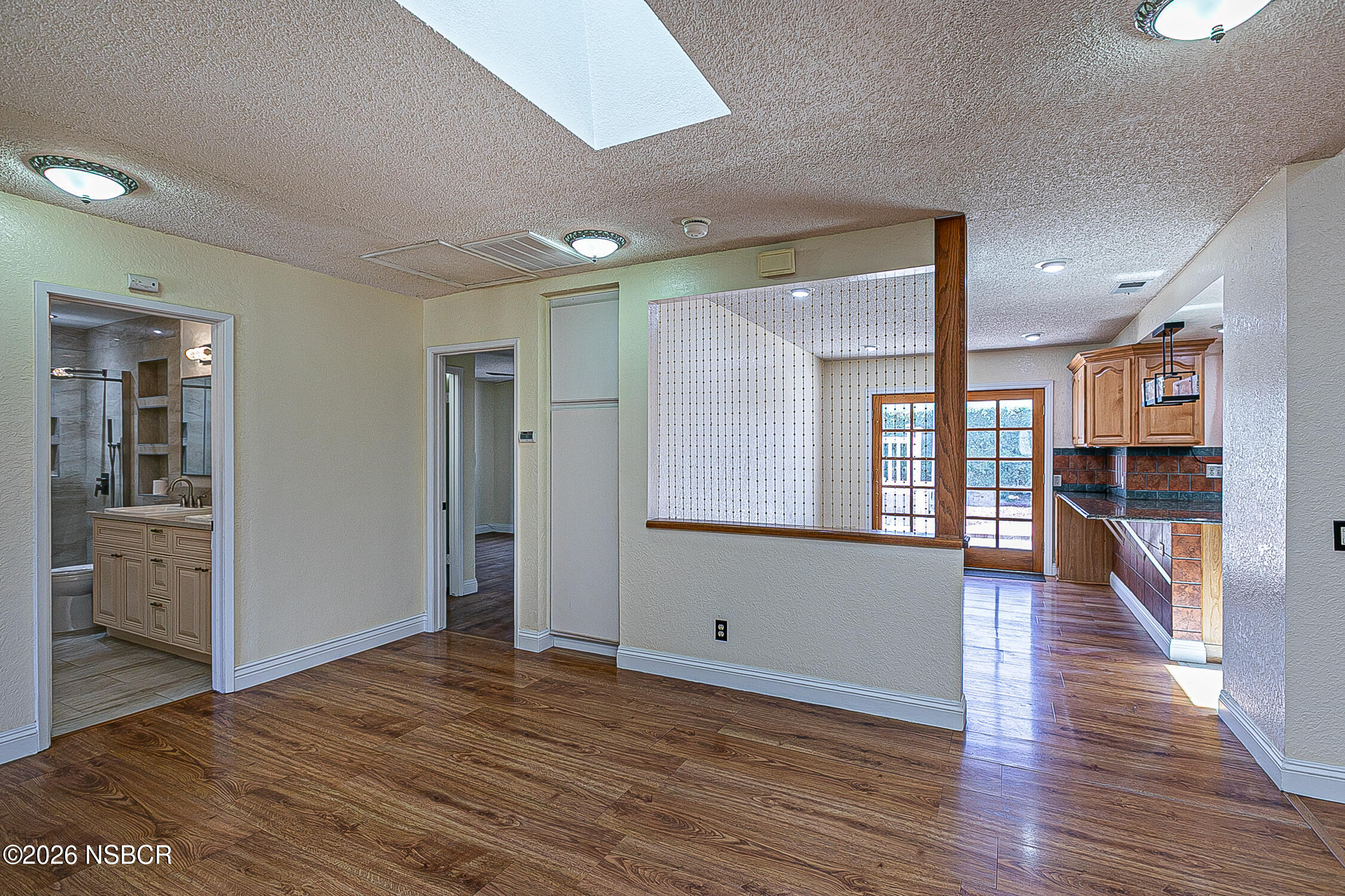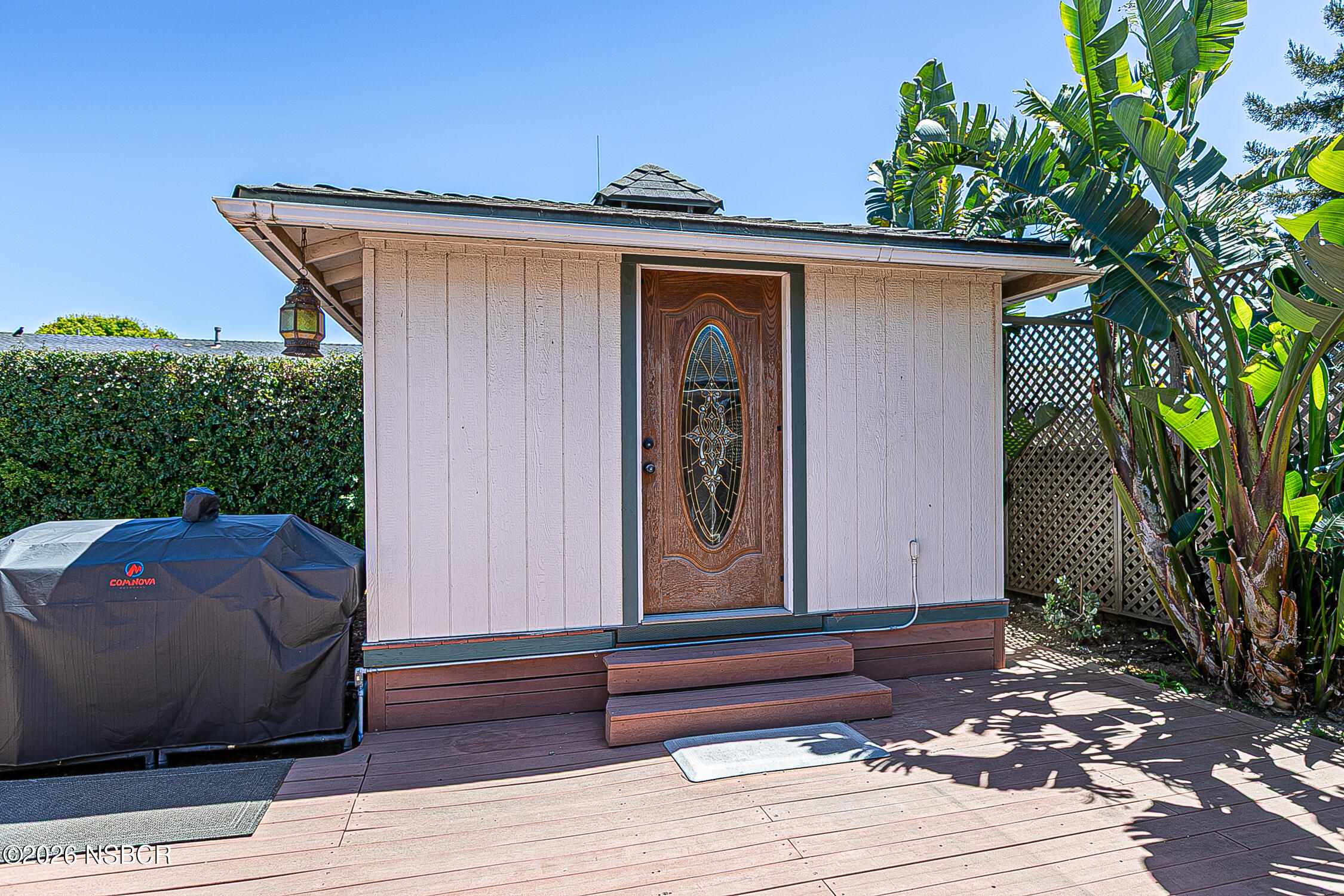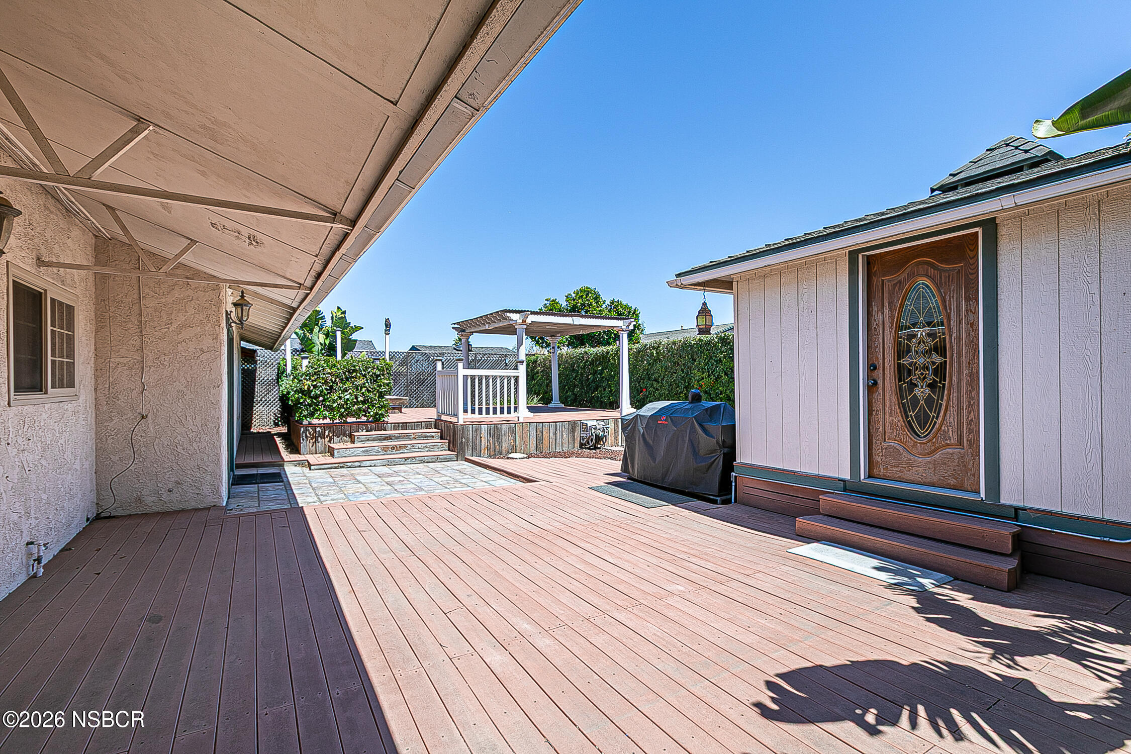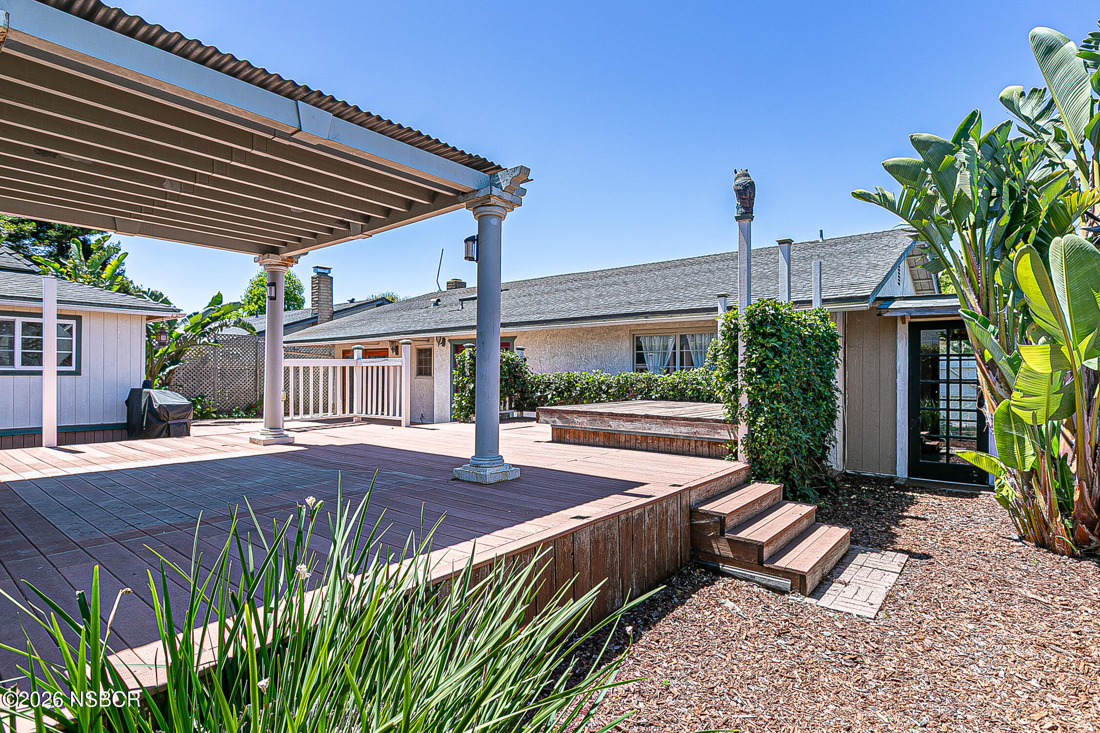 Welcome home to this beautifully updated 3-bedroom, 2-bath residence tucked away in a quiet cul-de-sac with excellent curb appeal. A front courtyard with stylish tile flooring creates a warm and inviting entry--perfect for relaxing or entertaining. Inside, the home is bright, open, and thoughtfully upgraded with some fresh interior paint, engineered laminate wood flooring, recessed lighting, and abundant windows and skylights that fill the space with natural light. The living area features a decorative fireplace with a classic mantle, adding charm and comfort. The kitchen has been upgraded with granite countertops, and sleek stainless steel appliances, Top of the line Jenn-Air. Tile flooring adds durability and style throughout key areas of the home. All three bedrooms are spacious, and the bathrooms have been tastefully remodeled. The Hall bathroom includes a walk-in, ADA-compliant shower with elegant tilework and decorative stone accents. Step outside through French doors from the dining area or sliding doors from the living to a private backyard retreat. Enjoy a covered deck with an overhang gazebo, a dedicated space for a hot tub, and a gas barbecue--ideal for gatherings and easy outdoor living. The yard is low-maintenance and offers multiple areas to relax and unwind. Bonus retreat/playroom/OFFICE or YOGA studio in the backyard. This home blends comfort, style, and functionality--perfect for everyday living and entertaining alike.