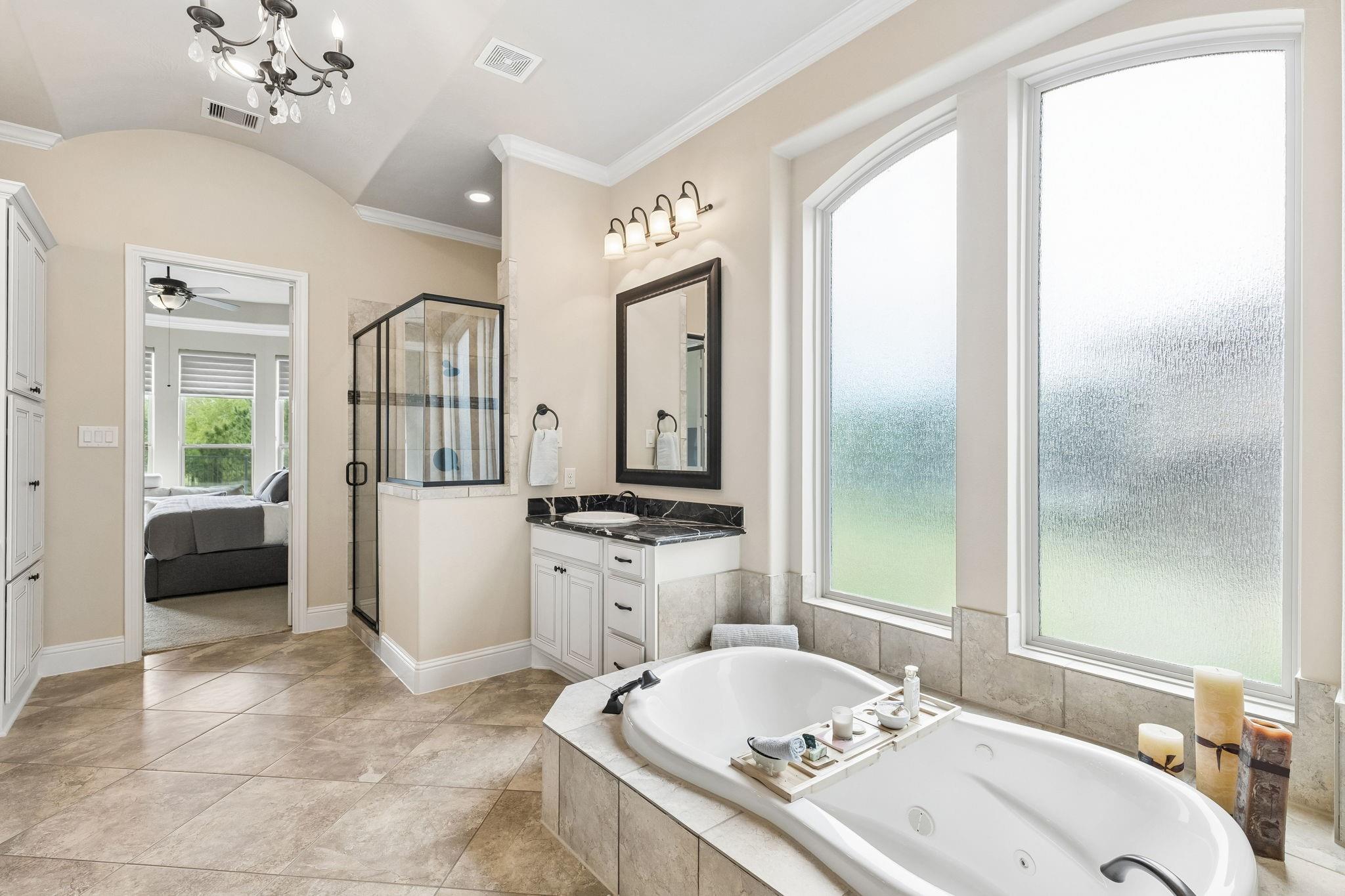 Discover this extraordinary luxury Estate in prestigious Creek Cove of Cross Creek Ranch, set on a rare 80 foot oversized lot spanning 14,370 sq ft at the end of quiet cul-de-sac. This architectural masterpiece offers exceptional privacy, with no neighbors, in front, behind or on the right-creating a truly exclusive setting. Thoughtfully designed with 5 spacious bedrooms, 5.
