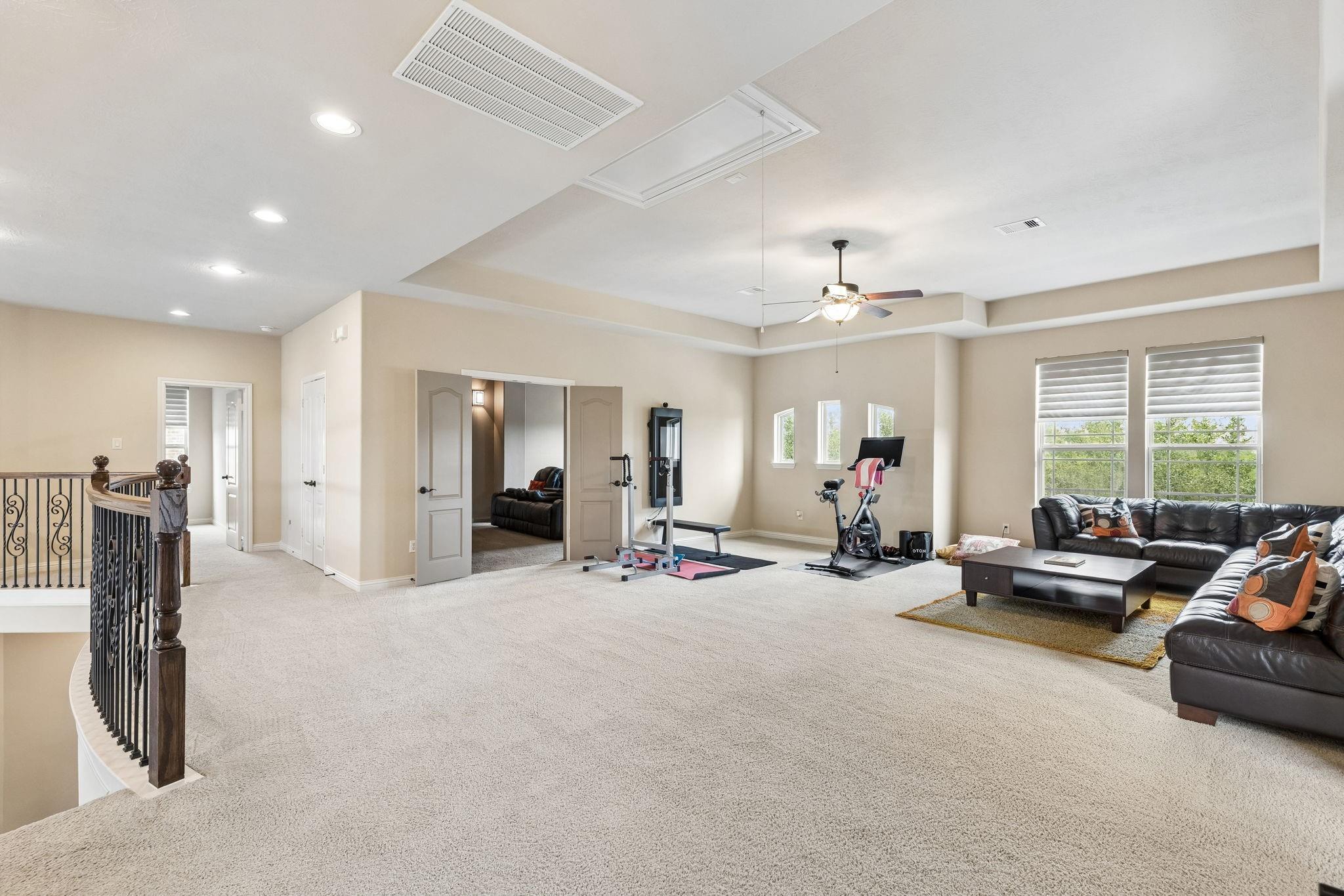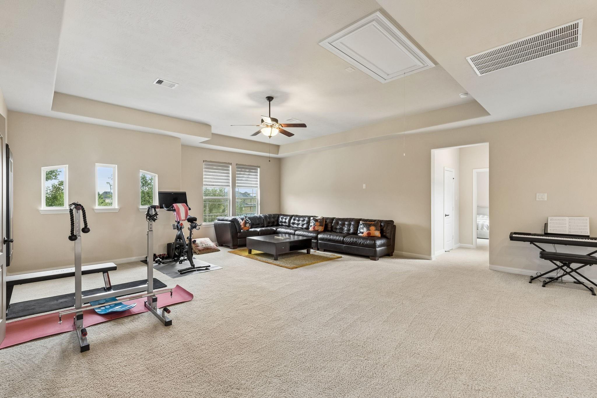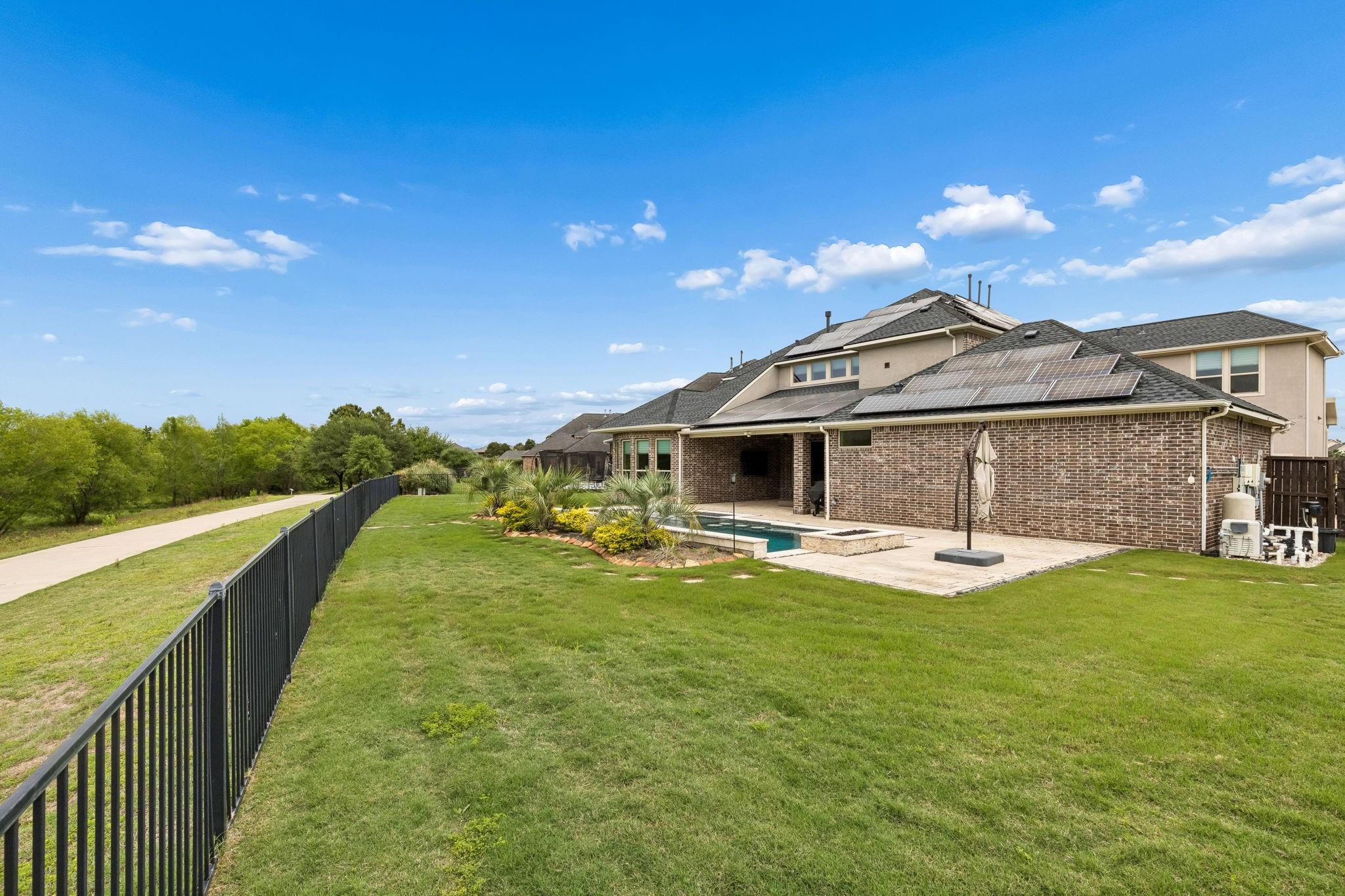 Discover this extraordinary luxury Estate in prestigious Creek Cove of Cross Creek Ranch, set on a rare 80 foot oversized lot spanning 14,370 sq ft at the end of quiet cul-de-sac. This architectural masterpiece offers exceptional privacy, with no neighbors, in front, behind or on the right-creating a truly exclusive setting. Thoughtfully designed with 5 spacious bedrooms, 5.5 elegant bathrooms, and expansive open concept high ceilings and refined finishes. A recent Class 4 impact- resistant roof and fully owned solar system with batteries providing energy efficiency and backup power. Dont miss the resort-style back yard with stunning pool and spa surrounded by lush landscaping -ideal for entertaining or private enjoying. A rare opportunity to own one of Cross Creek Ranchs most distinguished homes in KATY ISD with premier amenities and scenic trails.