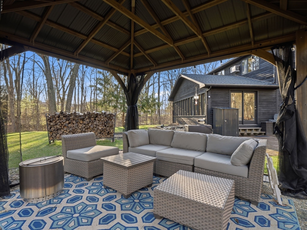 Spacious 4-bedroom, 2.5-bath Colonial offering 3,000 sq ft of living area, built in 1986 and set on a quiet country road in a prime location surrounded by conservation land. Enjoy a private backyard abutting woods, creating a true nature oasis. Features include a spacious living room with fireplace, updated kitchen with stainless steel appliances, eat-in area and large pantry, plus a bright cathedral ceiling heated sunroom with walls of windows overlooking the backyard. The primary suite offers an updated bath and walk-in closet. Finished basement includes 2 finished rooms plus 2 unfinished storage/workshop areas. Additional highlights include 1st floor laundry, mudroom, pellet stove, 200 amp service, Andersen windows, garage parking, and a 16x16 detached shed with garage door. Ideal property for a contractor with equipment. Zoned Light Industry. Offers due 4/26 at 5pm. Seller reserves the right to accept an offer prior to deadline.