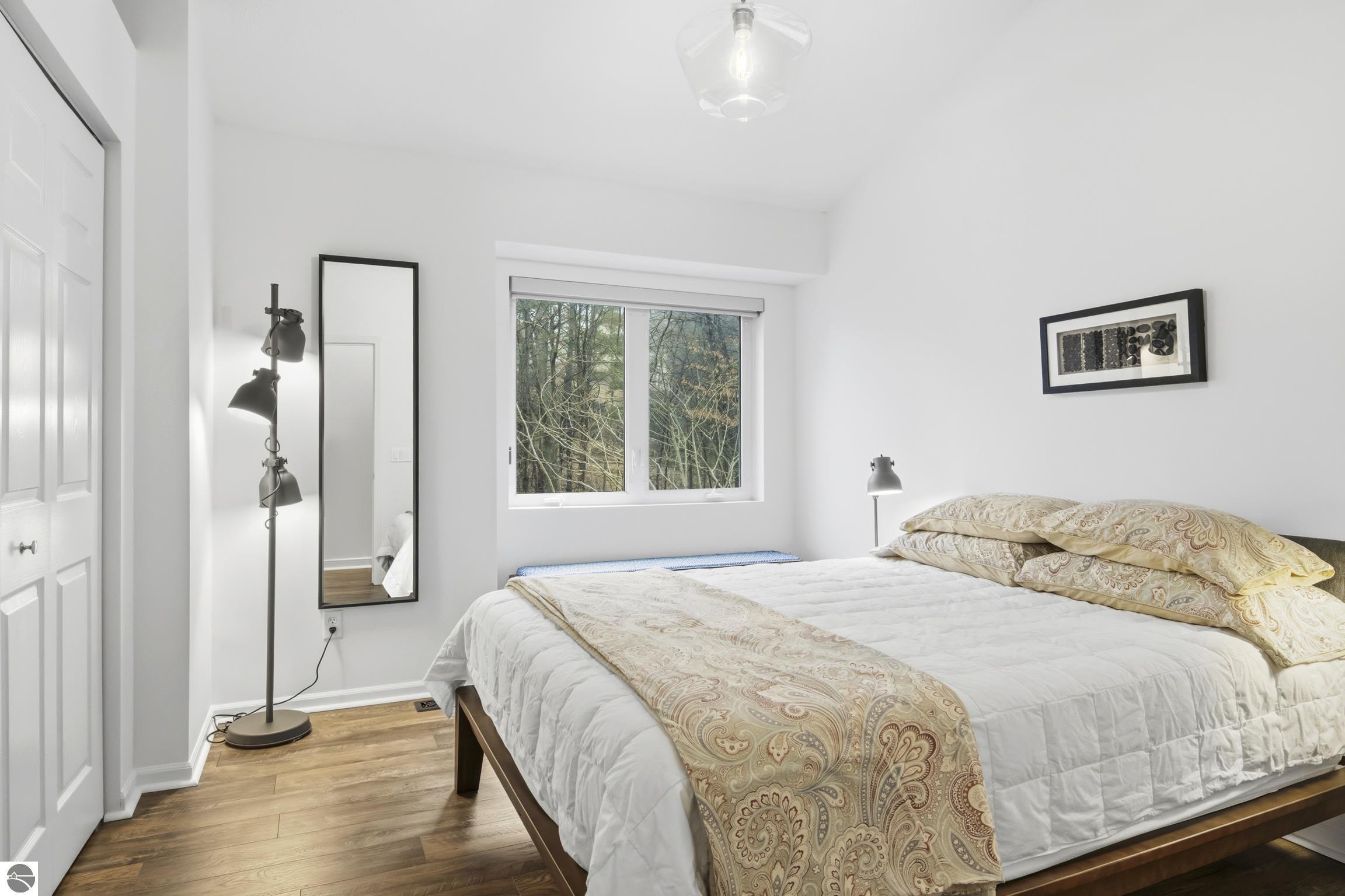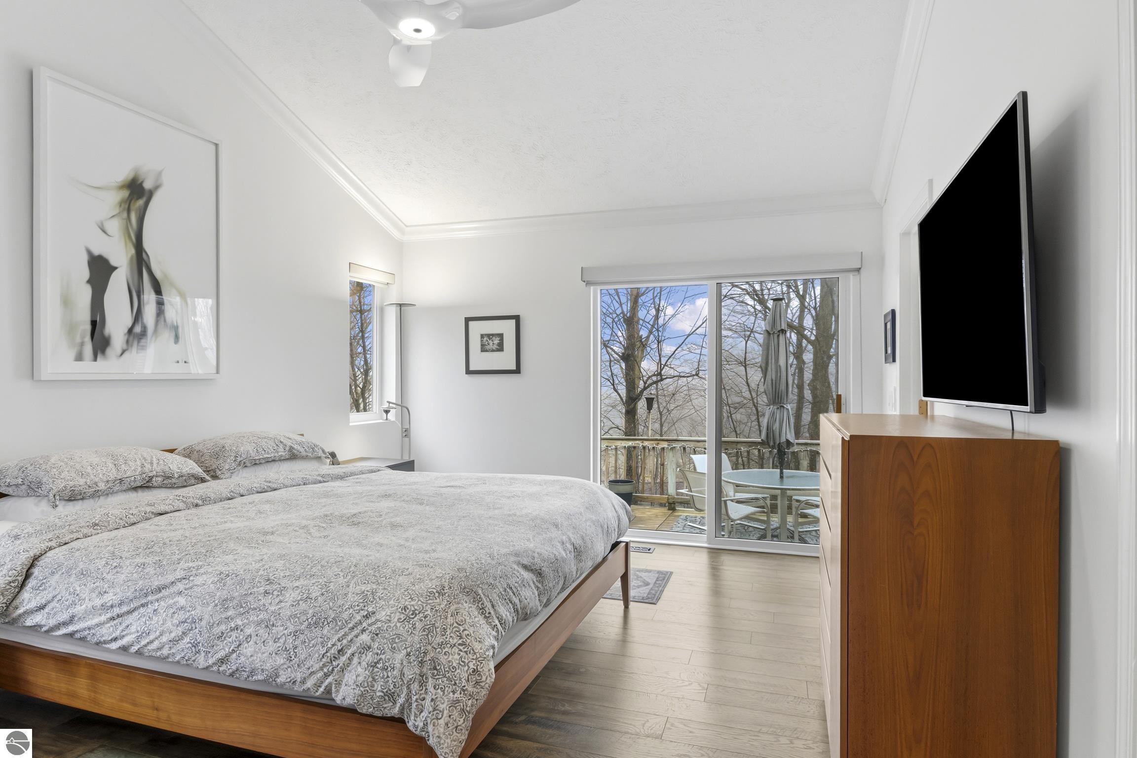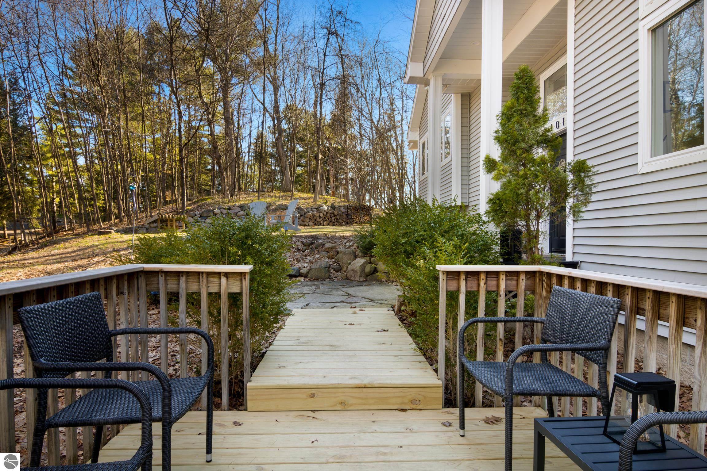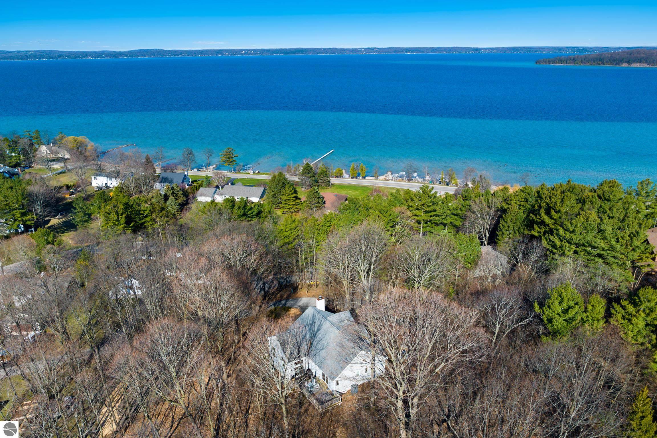 Set along the highly sought-after Old Mission Peninsula, this exceptional 4-bedroom, 3-bath home offers over 300 feet of pristine frontage on Grand Traverse Bay. Surrounded by natural wooded beauty and privacy, the property captures the essence of Northern Michigan waterfront living. Thoughtfully updated with numerous upgrades, the home blends comfort and style. Expansive windows frame breathtaking bay views, offering stunning water vistas for seven months of the year and ever-changing seasonal scenery. All new HVAC, UV light, water softener, Reverse Osmosis system, new paint, fiber optic wifi, new flooring, new appliances, Generac, new garage doors, EV charger added to garage which has room for workspace. Gorgeous shared frontage has swimming, fire pits and docking. This is a rare opportunity to own an expansive stretch of shared frontage. Whether youre seeking a year-round residence or a luxurious retreat, this property delivers the best of Peninsula living—just a short drive from the charm, dining, and amenities of Traverse City.