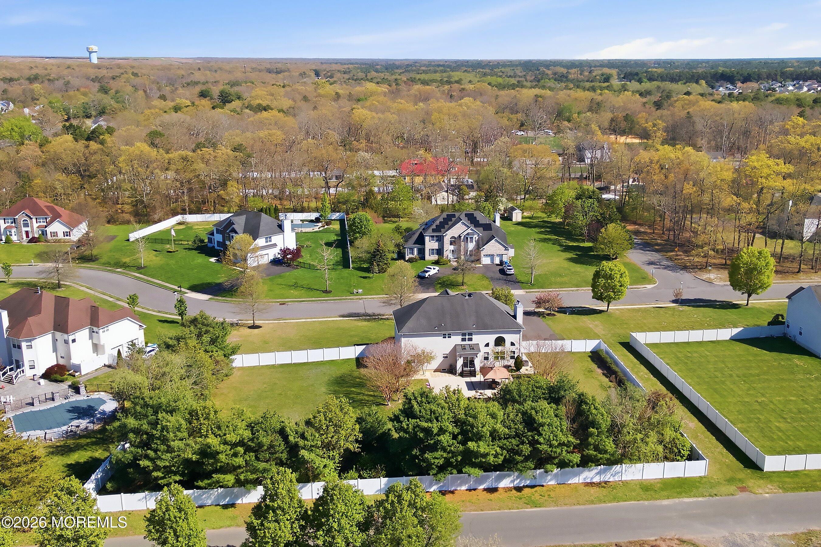 Welcome to 6 Etty Court in desirable Manchester! This spacious 5-bedroom, 2.5-bath home offers over 3,200 sq ft of living space designed for comfort and entertaining. The oversized kitchen features granite countertops, custom backsplash, abundant cabinetry, and a sunny breakfast nook with sliders to a beautifully hardscaped patio. Enjoy a large dining room for gatherings, a bright living room, and a massive family room with a wood-burning fireplace and rear staircase. A first-floor 5th bedroom, currently used as an office, adds flexibility. Upstairs, the primary suite offers an ensuite bath and two walk-in closets, plus three spacious bedrooms. Set on a .94 acre lot with a full 13-course basement ready to finish. Close to shopping, parks, and the Jersey Shore!