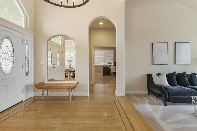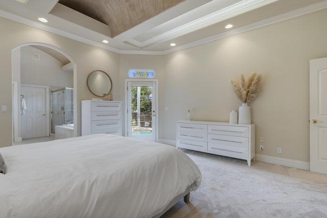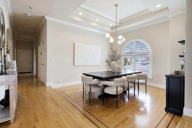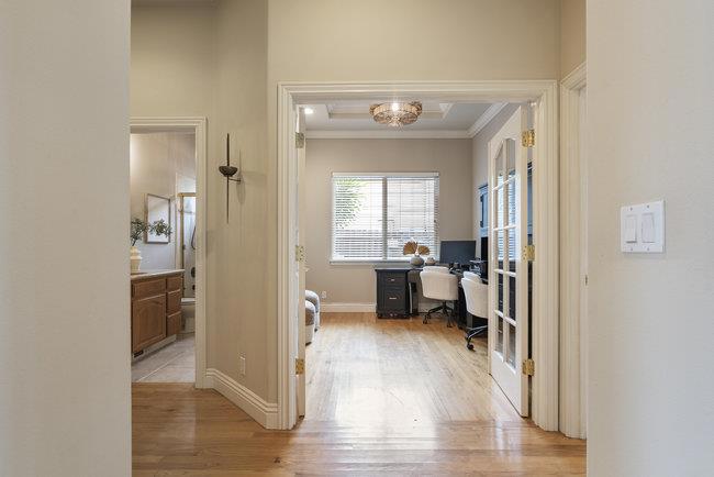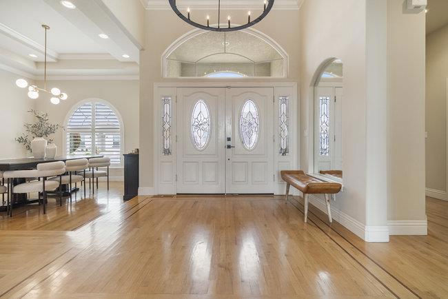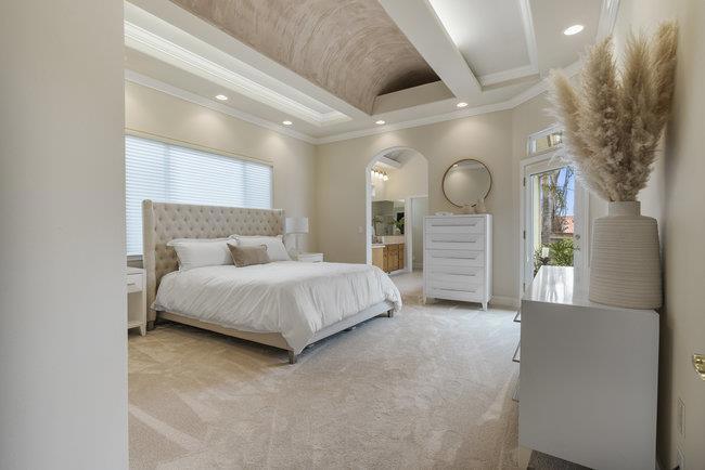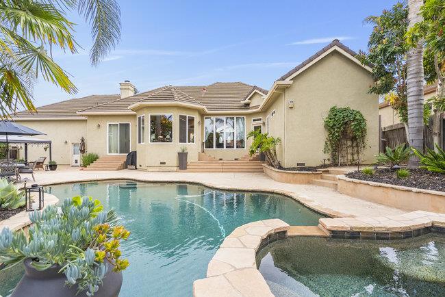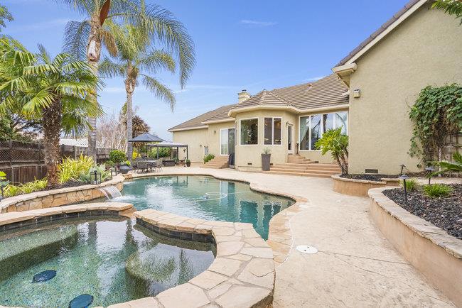 This Elegant Executive style home has it all! Custom built with many custom features & generous room sizes! Home includes 3 bedrooms, plus additional office/den or possible 4th bedroom, 3 full bathrooms, beautiful kitchen with high ceilings, granite countertops, stainless appliances, 4 burner cooktop with grill and hood with heat lamp, breakfast counter, and spacious nook with bay window overlooking back yard Oasis! Primary bedroom retreat with access to back yard & walk in closet. Primary bath has double sinks beautiful stone countertops, separate jetted tub & large stall shower with dual shower heads. Recessed lighting & crown molding throughout, designer Barrell & Coffered ceilings, beautifully placed large windows, hardwood flooring, oversized 3 car garage with high ceilings & attic storage with drop down ladder! Did I mention the back yard tropical Oasis with views from inside of house?! Pebble tech pool & spa, beautiful patio area, the list goes on and on! This is a MUST SEE!