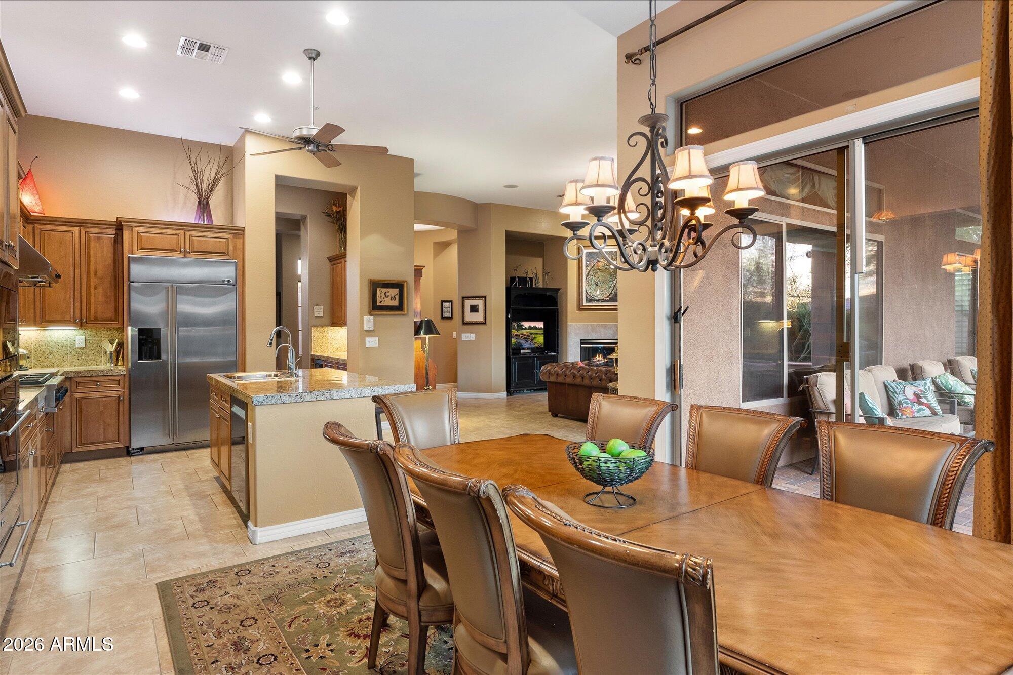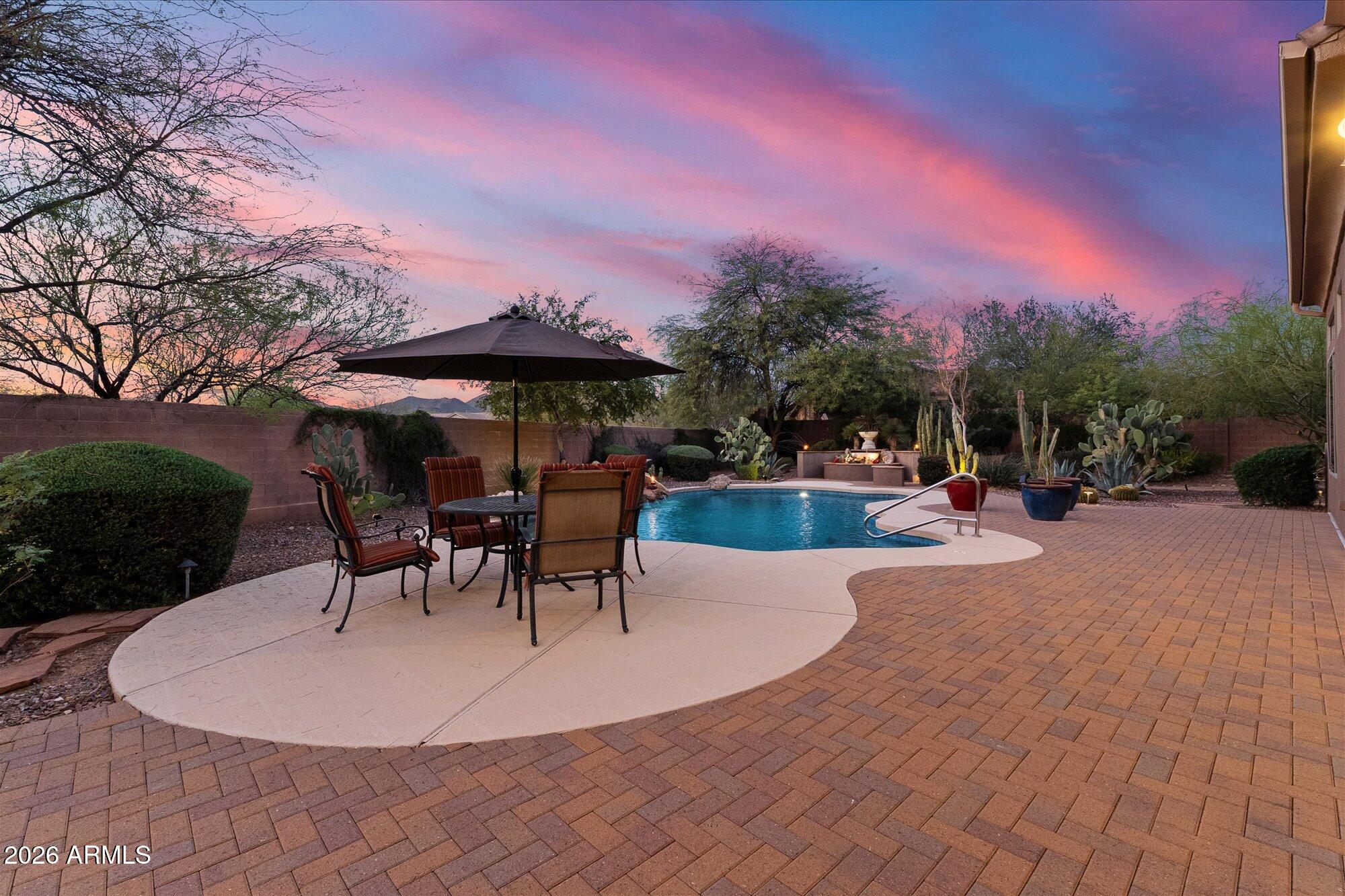 View this Stunning Sonoma model (see floor plan in Photos) situated at the end of a quiet cul-de-sac on a huge oversized homesite! This Wonderful home features extensive upgrades including granite counters, 6 burner gas cooktop with stainless appliances, butlers pantry with wine fridge, Incredible floor to ceiling custom library wall with rolling ladder, T.V. Projection system w/ surround sound, window treatments and Plantation shutters, Primary Suite, Junior Suite, 2 guest bedrooms and office. Your outdoor living space has a covered patio, pavers hardscape and lush landscape, spacious pool, built in BBQ island, gas fireplace sitting area and Fabulous Daisy Mountain views! Enjoy this beautiful home and the rewarding lifestyle Anthem Country Club has to offer! Welcome Home!