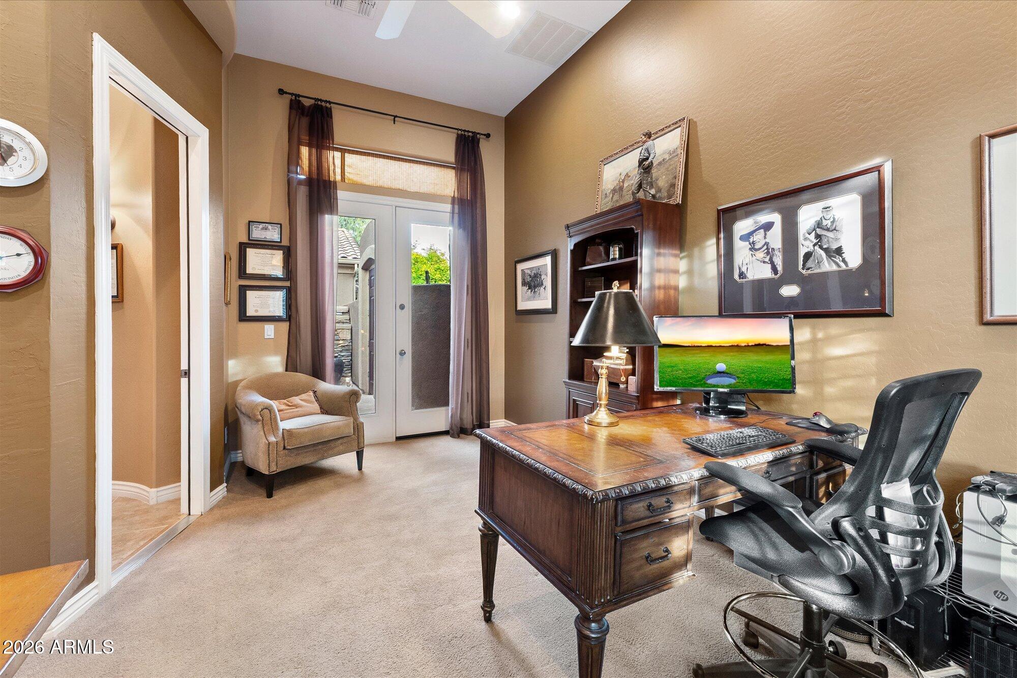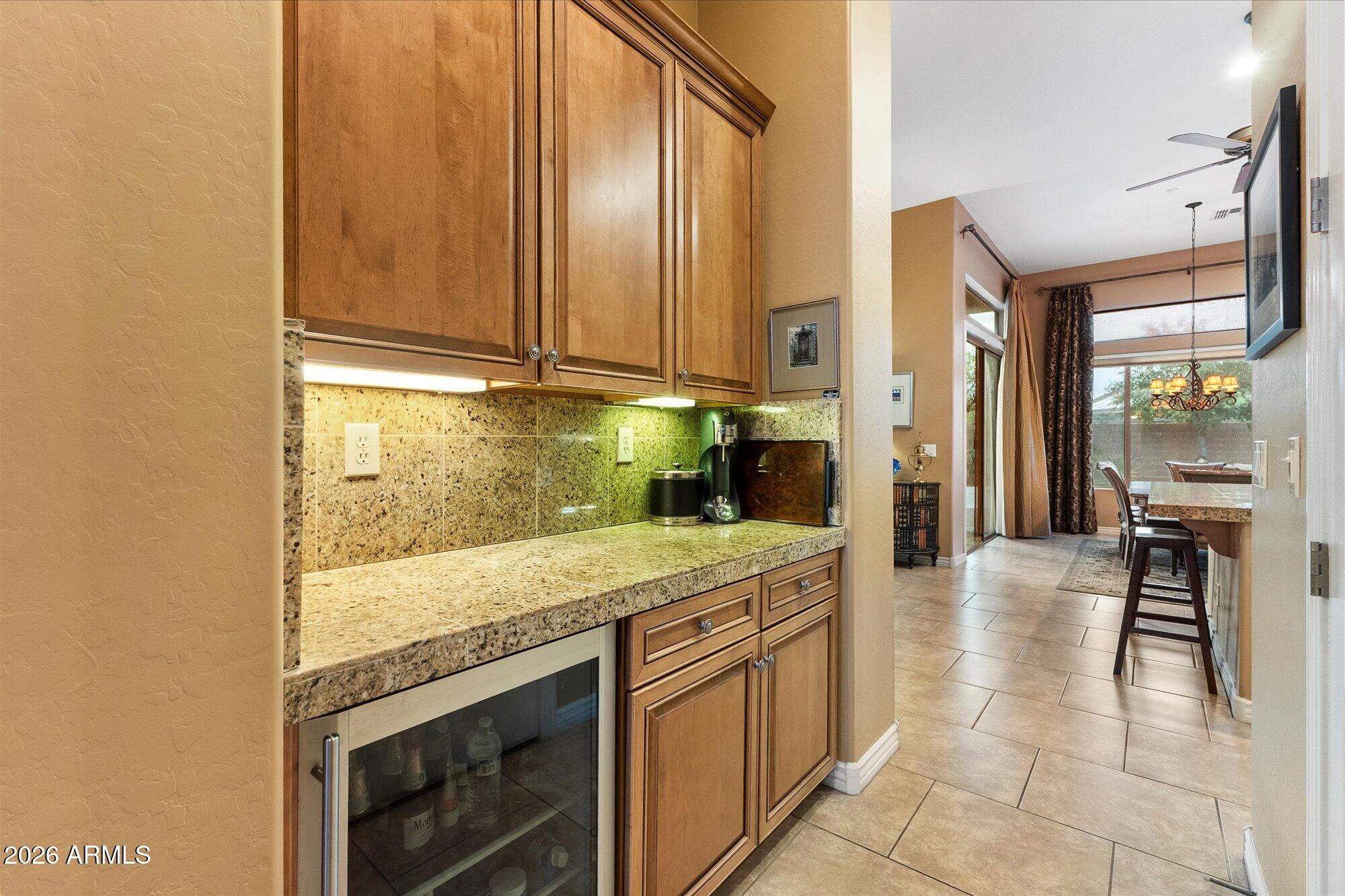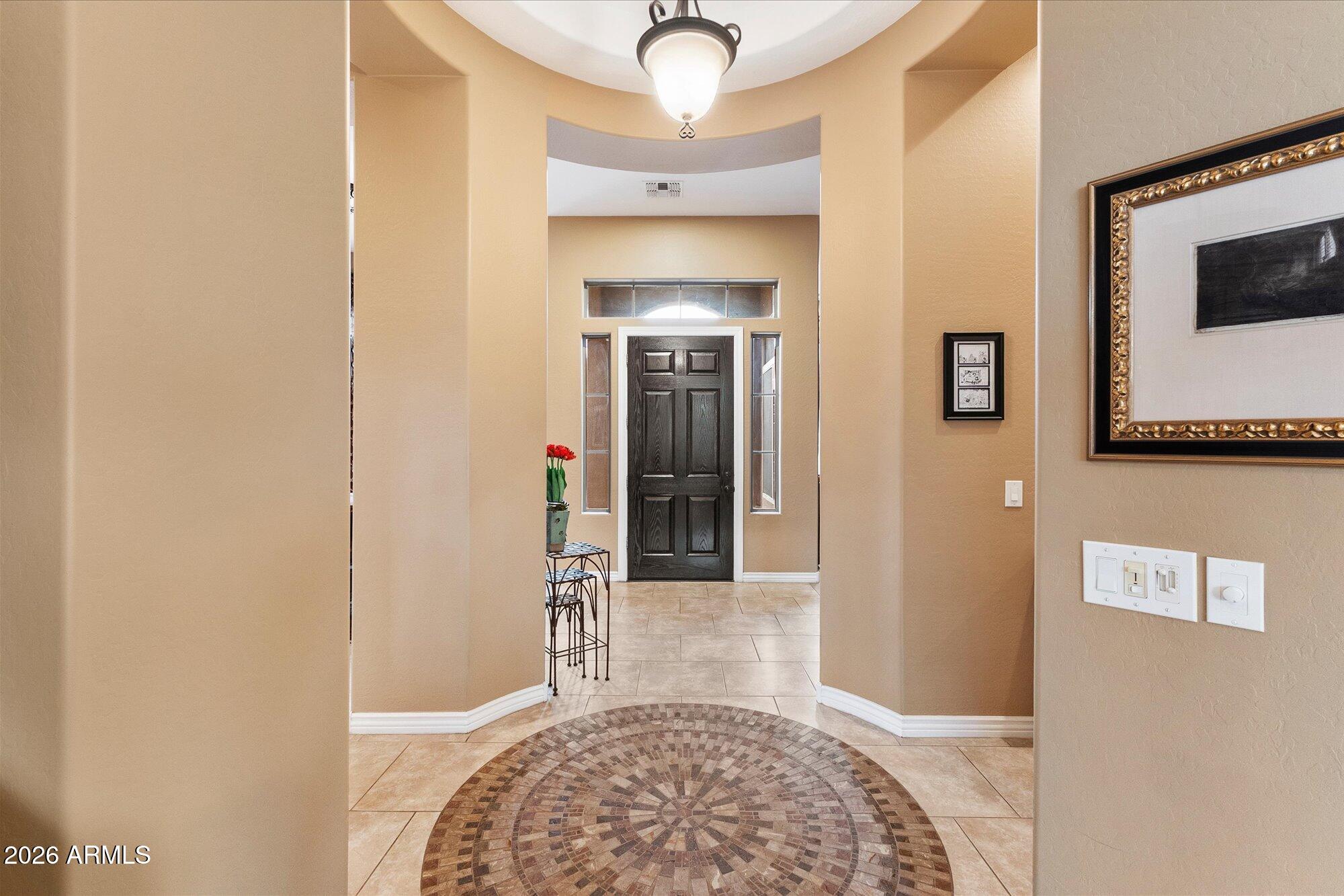 Welcome to this highly sought-after Yucca model, perfectly situated on a private elevated lot that backs to open space, offering breathtaking views of Tiger Mountain. This stunning home features 4 spacious bedrooms, 3.5 luxurious baths, an office/den, and a versatile bonus room, making it an ideal retreat for your family. Gather with friends and family in the expansive great room, adorned with a cozy fireplace and striking wood-beam ceilings that create an inviting atmosphere. The lavish cooks kitchen is a chefs dream, equipped with top-of-the-line stainless steel GE Monogram appliances, an entertainers center island, elegant tiled backsplash, and a convenient walk-in pantry for all your storage needs. Retreat to the master suite, which opens to a spa-like bath featuring double vanities, a relaxing soaking tub, and a beautifully tiled shower, providing a perfect oasis for unwinding. The thoughtfully designed guest wing includes three separate bedrooms, two baths, and a powder room, ensuring comfort and privacy for family and guests alike. Step outside to your gorgeous resort-style backyard oasis, where you will find an expansive covered patio, a built-in BBQ for al fresco dining, a putting green for golf enthusiasts, a covered spa for relaxation, and a cozy fire pit for evening gatherings under the stars. Dont miss the opportunity to experience the vibrant community and amenities of Victory at Verrado. This spectacular home truly embodies luxury living with natures beauty at your doorstep.