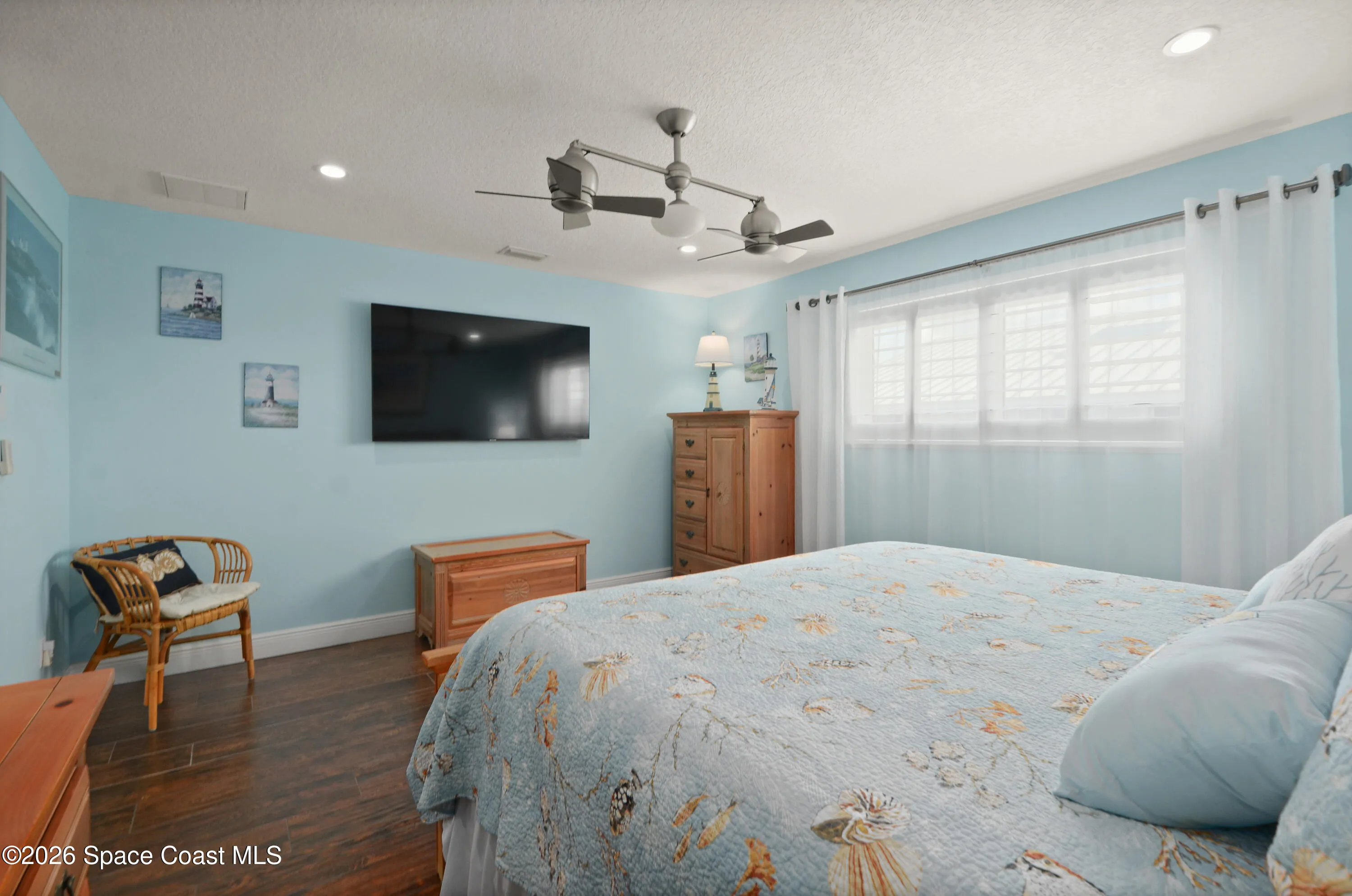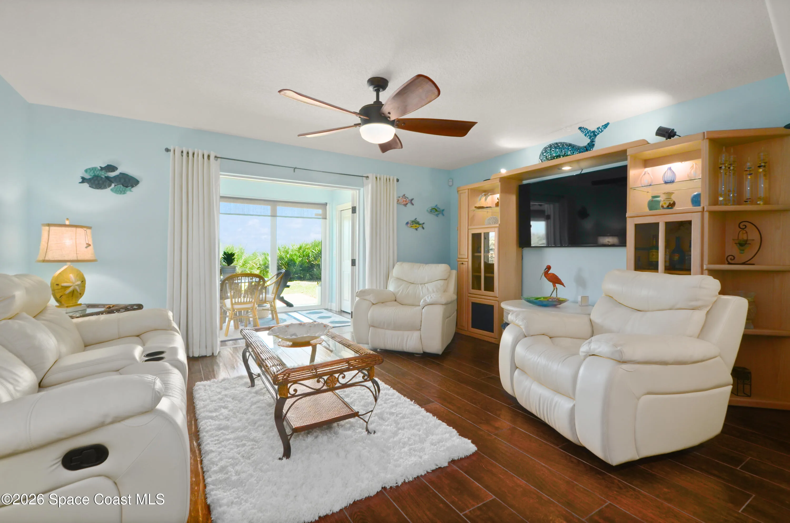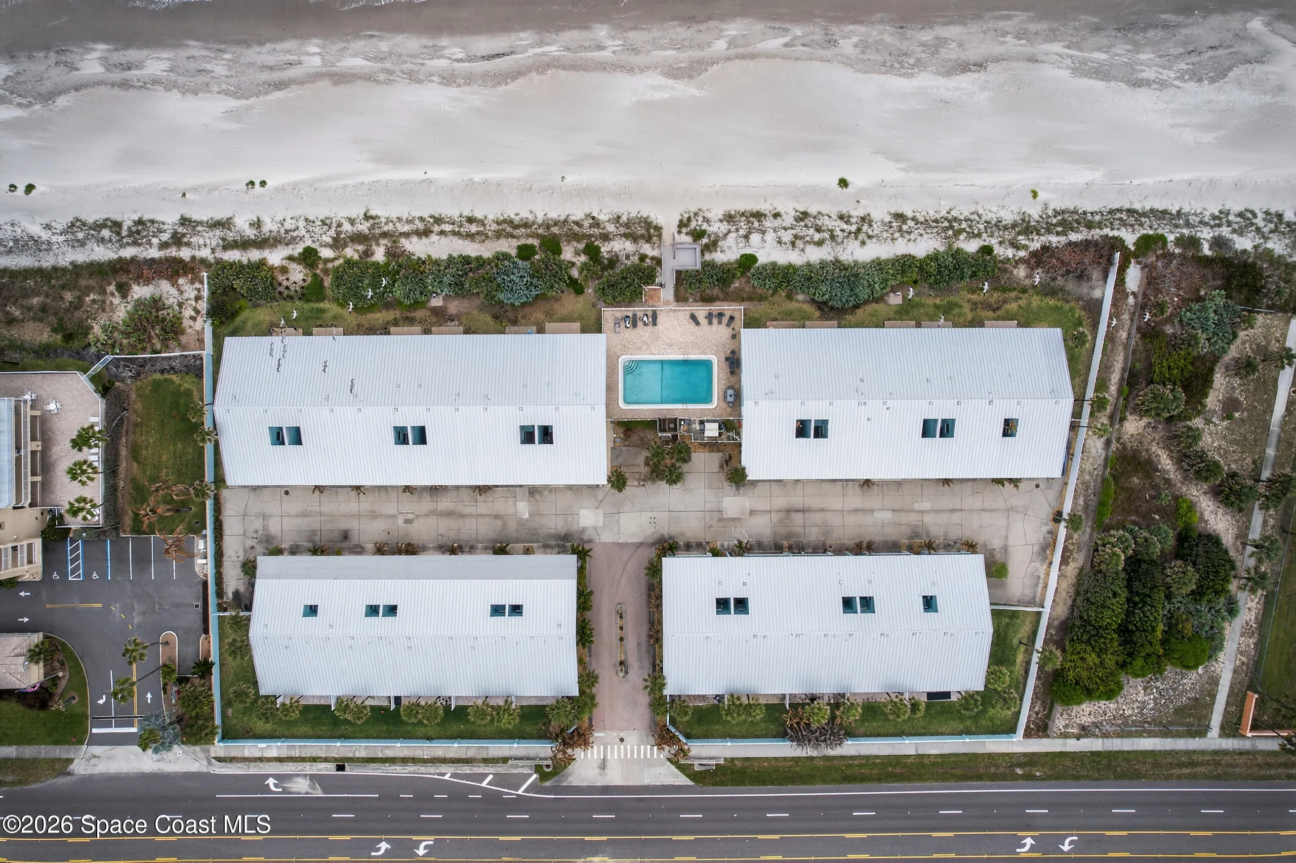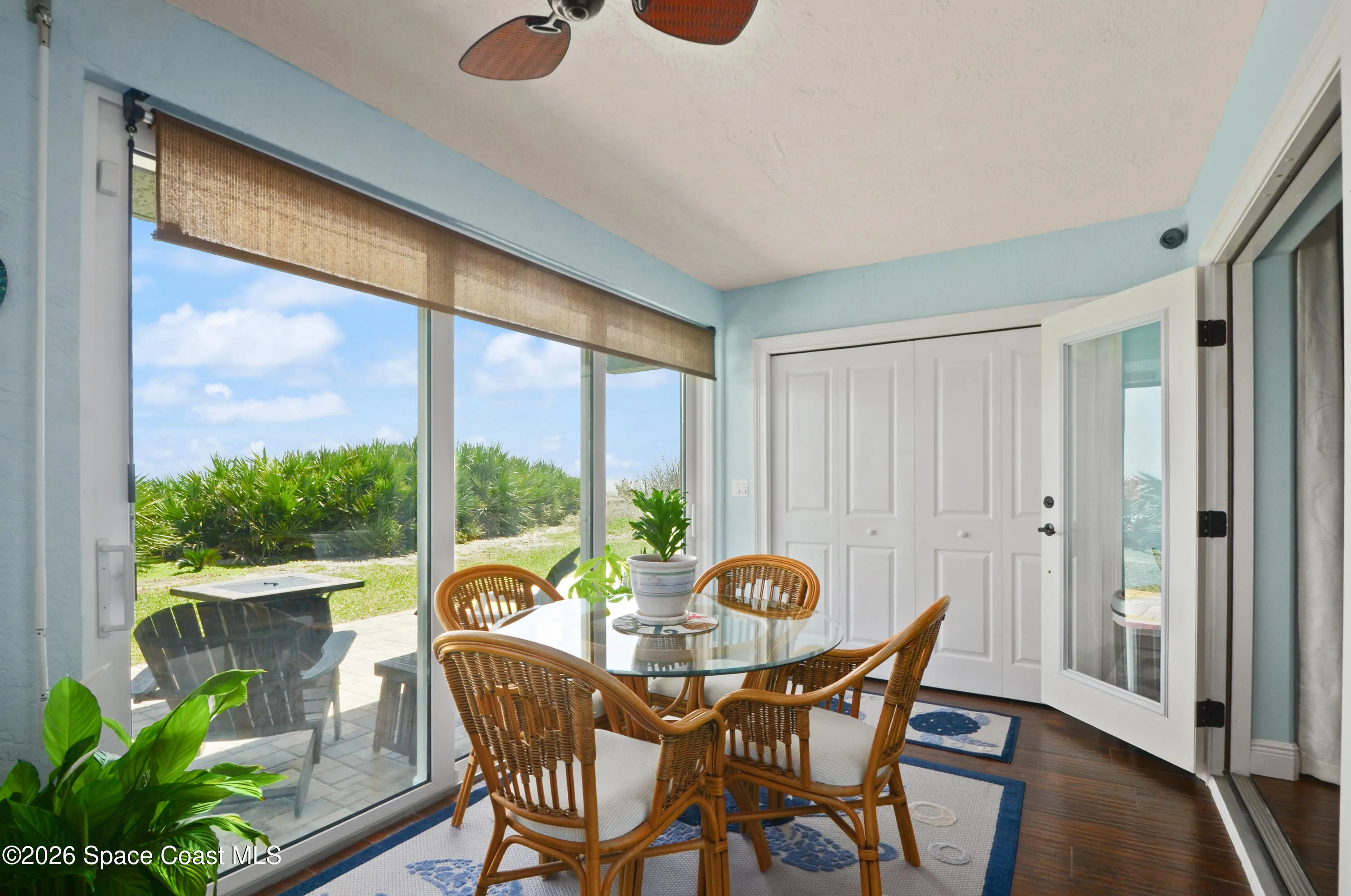 Immaculate 3/3 2-story oceanfront condo with 2-car, *attached* garage, *no pet restrictions* one year *home warranty* included, large, heated pool Ocean views from balcony, kitchen, dining, family & Florida room & 1st floor bedroom.The automatic storm shutters are both manually and electronically employed, depending on situation and the generator and/or power block (both convey) can be used to power them. A/C (2021) has a dedicated surge protector (2024) & condenser coils replaced (2025) Hot water heater (2022) Metal roof (2017). First floor is perfect as an in-law and/or guest suite w/ mini kitchen and laundry. The main kitchen has induction stove (2026) & microwave/airfryer (2025). Beautiful, richly colored porcelain tile throughout the entire unit. Spacious primary bedroom suite with his & hers closets. 23X8 ft Florida Room with expansive ocean views through the hurricane rated windows, as well as paver patio to enjoy fire lit nights, listening to the waves on the shore.