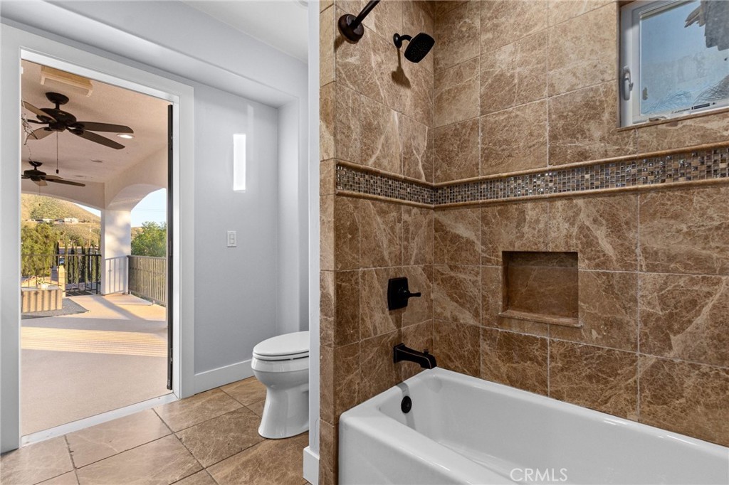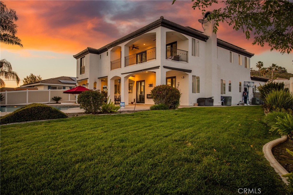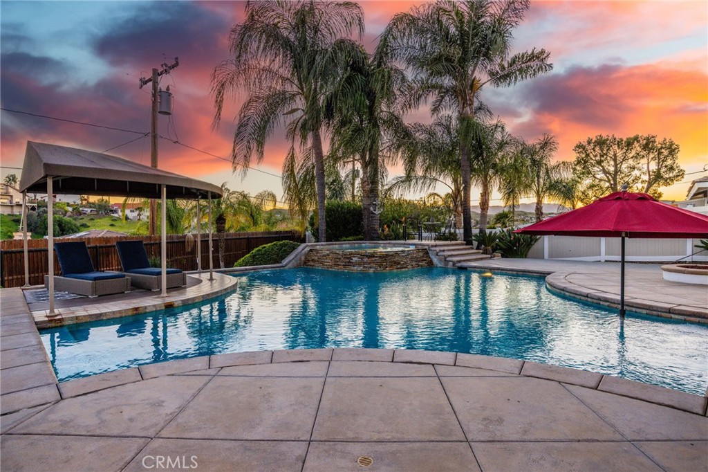 Located in the heart of Southern California's private waterfront community of Canyon Lake, this stunning Tuscan-inspired residence offers the perfect blend of luxury, comfort, and resort-style living. Built in 2005 and extensively remodeled in 2021, this impressive 5-bedroom, 4-bath home sits on a quarter-acre cul-de-sac lot with space, privacy, and beautiful curb appeal. Step through the custom iron entry doors into a grand interior featuring soaring two-story ceilings, a wide entry hallway, and sightlines leading directly into the main living area. The living room showcases coffered ceilings and flows seamlessly into a spacious chef's kitchen designed for entertaining. The kitchen features double ovens, built-in refrigerator, large center island, bar seating, and abundant cabinetry and pantry space. Just off the kitchen is the formal dining room, perfect for hosting dinners with friends and family. Throughout the home you'll find high-end finishes and thoughtful upgrades, including travertine and bamboo flooring, granite countertops, custom stone showers, elegant wainscoting, surround sound, a private theater room, central vacuum system, custom interior paint, and epoxy garage floors. 42 owned solar panels on NEM 2.0, along with a Vivint security camera system. Upstairs offers three spacious secondary bedrooms, including two connected by a Jack-and-Jill bath and a third with its own en-suite bath and deck access. The primary suite serves as a private retreat, featuring a cozy fireplace and French doors opening to a deck with sweeping views of the surrounding community and hillsides. The primary bathroom offers a soaking tub, walk-in shower, dual sinks, and generous closet space. Step outside and the property becomes a private backyard resort. The oversized pool features a Baja shelf, swim-up bar stools, and raised spa with a new heater additionally approximately 1,500 square feet of outdoor living space, including a beautiful California Room and large grass area. The home is completed by an oversized garage with insulated doors providing ample space for all your toys. Canyon Lake offers a 1.1% tax base with no Mello Roos, 384 acre waterski/fishing lake, 16 parks most with beaches and playset, basketball courts, baseball fields, tennis & pickle ball courts, equestrian center, 18 hole golf course, pools, dog park, golf cart friendly streets, slalom course, ski jump, restaurants, community events and so much more!!! Live life on vacation in Canyon Lake!