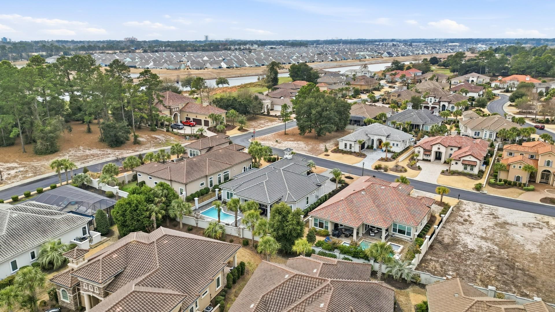 Tucked inside the prestigious Grande Dunes, this Mediterranean-inspired retreat at 9106 Sanremo Lane feels less like a house and more like a private escape. Built by Arthur Rutenberg and still practically brand new, every inch of this custom home was designed with intention--elevated, elegant, and effortlessly comfortable. From the moment you arrive, the dramatic tower entrance sets the tone. Step inside and you'll immediately notice the new hardwood flooring that flows throughout the home, adding warmth and a seamless, high-end feel to every room. In the bathrooms and laundry room, new tile flooring adds both durability and a polished finish that complements the home's sophisticated style. The thoughtfully designed split floor plan offers privacy for both owners and guests. At the center of it all is a stunning kitchen anchored by a show-stopping waterfall island, with additional cabinets, new RH lighting, and a hidden walk-in pantry--perfect for everything from quiet mornings at home to hosting elegant dinner parties. With three beautifully appointed bedrooms and three full baths, the home strikes the perfect balance between luxury and livability. A versatile flex space provides room for a home office, den, or creative studio. Even the garage was elevated with epoxy flooring, creating a clean, finished look that matches the rest of the home's quality. And then there's the backyard. Expansive 90-degree sliding glass doors open the living space completely, creating that unforgettable indoor-outdoor wow moment. Step outside to your private resort-style retreat featuring a pool with waterfall and spa, surrounded by mature landscaping that creates a serene, secluded atmosphere. It's the kind of space where evenings stretch a little longer and every day feels like you're on vacation. Living in Grande Dunes means more than owning a beautiful home---it means embracing a lifestyle. This premier 2,200-acre coastal community stretches from the Atlantic Ocean to the Carolina Bays Preserve and offers unmatched amenities, including a 25,000-square-foot Ocean Club with oceanfront pools and dining, two championship 18-hole golf courses, a deep-water marina, Har-Tru tennis facilities, on-site restaurants, and miles of scenic biking and walking trails. If you've been searching for a home that combines custom craftsmanship, modern upgrades, and true resort-style living in Myrtle Beach, this is it. Welcome to your Mediterranean oasis in Grande Dunes!