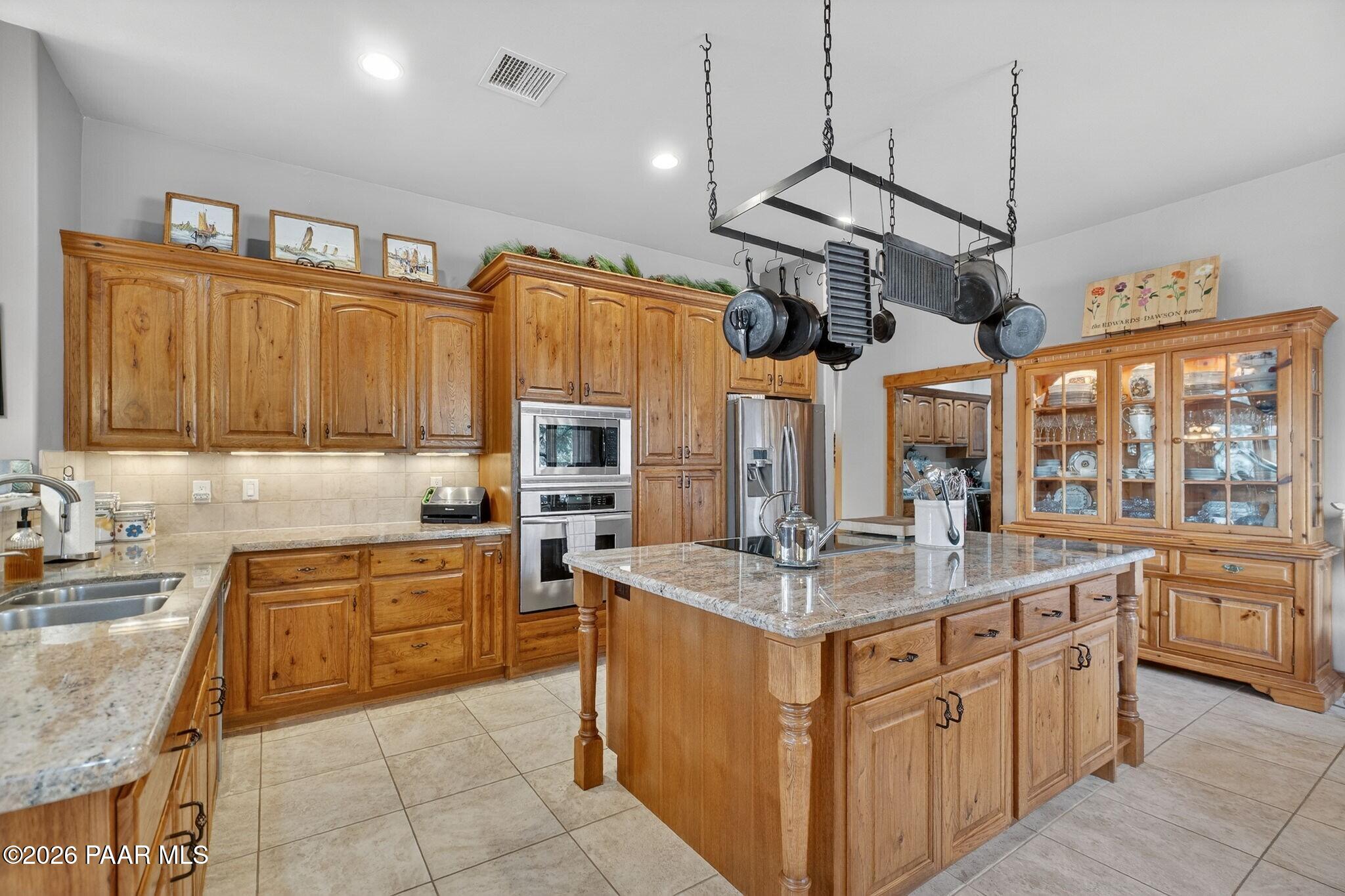 Luxury Single Level Living with Iconic Views in American Ranch! Welcome to 9820 N Clear Fork, where refined living meets true Arizona ranch elegance in the prestigious American Ranch community. Set on 1.06 acres, this 3,400 sq. ft. single level residence offers sweeping Granite Mountain views & an exceptional blend of comfort, space, & style. Inside, vaulted ceilings & a dramatic stone fireplace anchor the light filled living room, framed by a wall of windows that capture the surrounding beauty. The home offers 3 spacious bedrooms, 3 baths, & an additional 400 sq. ft. flex room--ideal for a home office, studio, or craft space with custom built ins. Designed for both everyday living & entertaining, enjoy time in the inviting family room or step outside to the patio & hot tub. A standout feature is the separate cowboy kitchen, complete with a wood burning fireplace, grilling area, & dining space--perfect for gatherings year round. Surrounded by manicured landscaping & native plants, this premier equestrian community provides privacy & serenity while remaining close to Prescott amenities. A 3 car attached garage completes the home. In addition, there is a 10 x 16 site built shed with power & overhead space for seasonal storage, a shop, outdoor equipment... just use your imagination. This home seamlessly blends country comfort with refined luxury--an exceptional opportunity for quiet moments or memorable celebrations. A true must see!