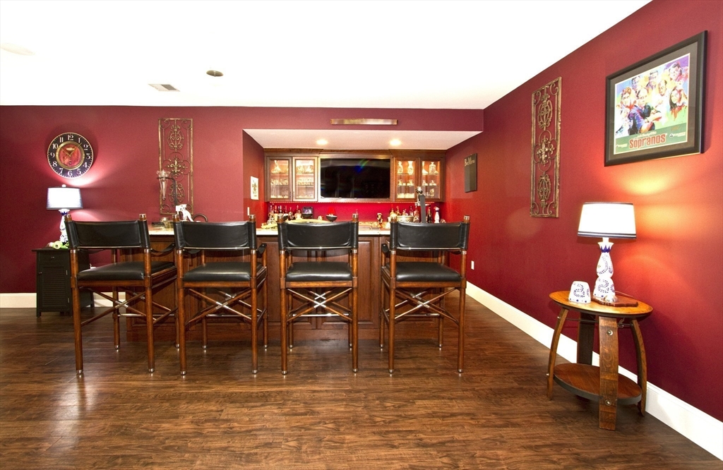 Perched majestically atop a private hilltop setting, this extraordinary residence offers sweeping, unobstructed views of the Raritan Bay and the iconic New York City skylinedelivering a truly elevated living experience defined by luxury, design, and breathtaking scenery. This completely reimagined raised ranch seamlessly blends sophisticated elegance with modern functionality. The main level spans approximately 3,000 square feet, complemented by an additional 1,500 square feet lower-level living space featuring soaring ceilings, a walk-out to both the patio and garage. The designer kitchen is a true showpiece, thoughtfully curated with premium finishes and top-tier functionality. Highlights include a large center island with quartz countertops and breakfast bar, custom cabinetry with crown molding and gold hardware (lifetime warranty), a farmhouse sink with dual faucets, pot filler, herringbone tile backsplash, and a full suite of high-end appliances including double ovens, a microwave drawer, French-door refrigerator, beverage fridge, dishwasher, and a built-in cup washer with filtered hot and cold water. A spacious pantry and abundant pot drawers complete this culinary masterpiece. The open-concept layout is enhanced by rich wood flooring throughout, recessed lighting, and refined entertaining spaces. The family room features a striking stone-front wood-burning stove, while the sunken living room is framed by a dramatic accordion wall of glass that fully opens to an impressive 1,500-square-foot wraparound deck accessible from nearly every room deck, creating an unparalleled indoor-outdoor experience. Whether entertaining or enjoying a quiet morning, the panoramic water and skyline views provide a stunning backdrop at every turn. The luxurious primary suite is a private retreat, offering direct deck access, a walk-in closet plus additional closets, and a spa-inspired bath complete with dual vanities, quartz countertops, a soaking tub, and an oversized walk-in shower with rain head, dual shower systems, handheld fixtures, and elegant tilework. A state-of-the-art Japanese toilet and designer finishes complete the space. The guest suite is equally impressive with cathedral ceilings, skylights, private deck access, and a beautifully appointed bath with glass-enclosed shower. Additional bedrooms are generously sized, each with wood flooring, recessed lighting, and custom details. Bathrooms throughout the home are fully updated with high-end materials and finishes. Surrounded by paradise yet less than 3 miles from train station, shopping, dining, and all major roadways. A rare opportunity to own a one-of-a-kind property where luxury, craftsmanship, and awe-inspiring views converge.