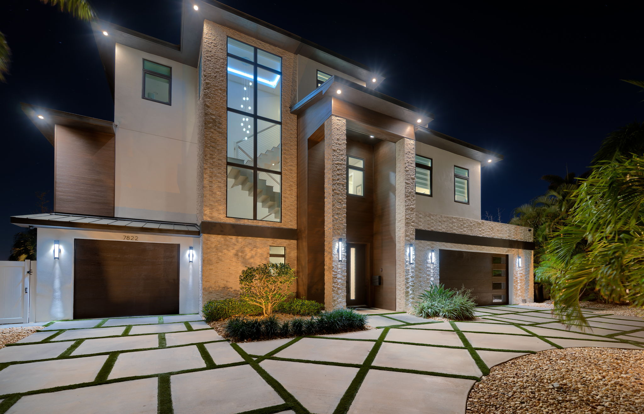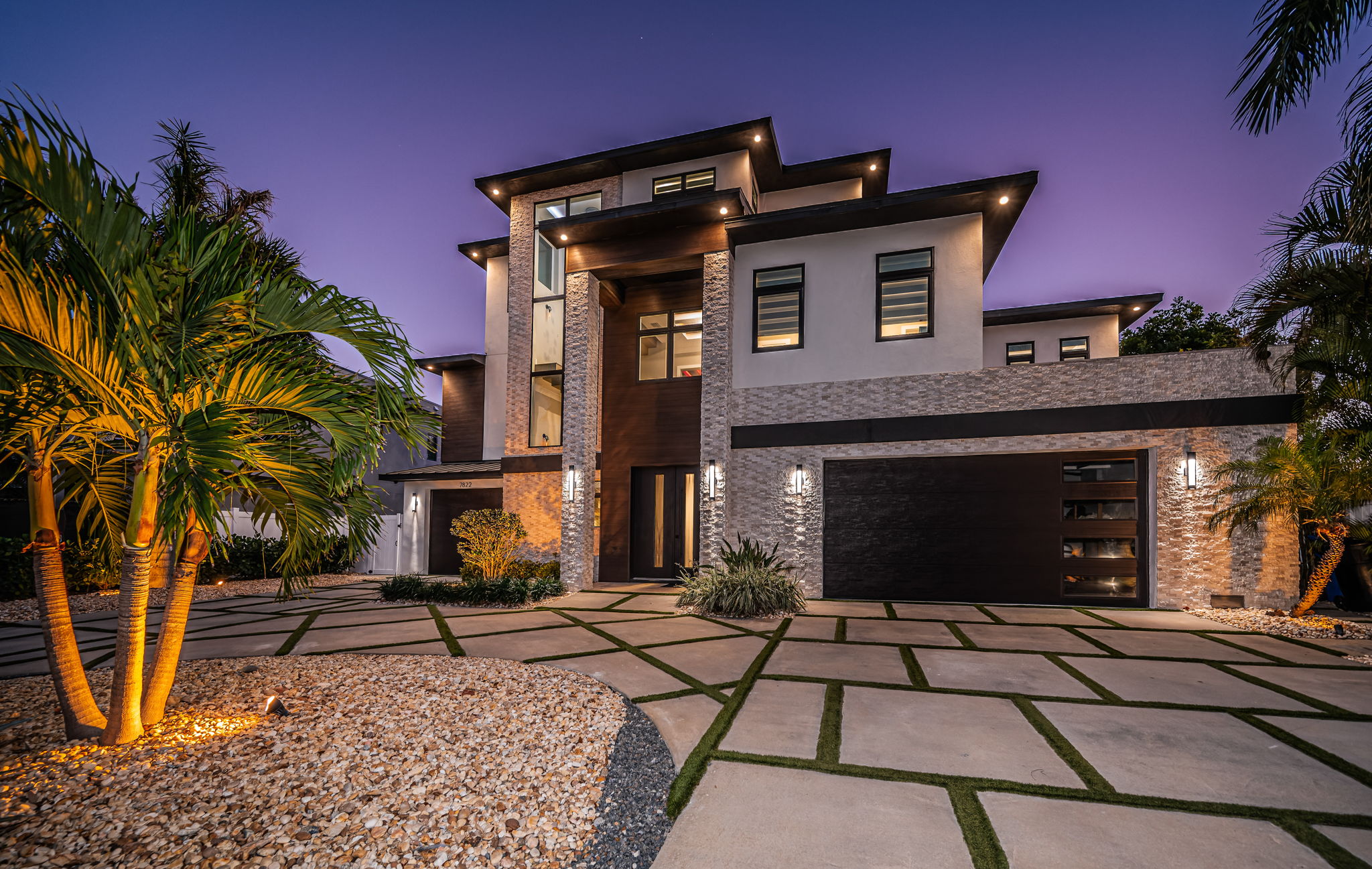 DAZZLING COASTAL CONTEMPORARY ELEGANCE WITH EXCEPTIONAL CUSTOM DESIGNER FINISHES! Lushly landscaped with a striking curbside appeal, this remarkable waterfront estate residence boasts rich structural symmetry and elite exterior finishes.