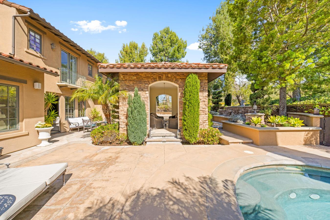 Located within the exclusive guard-gated Summit at Turtle Ridge, 20 Blue Summit is an Italian-inspired estate exuding luxury, privacy, and resort-style living. Resting on a quiet cul-de-sac corner lot with an expansive wraparound parcel of about 11,114 square feet, the property offers a large front yard, a private backyard oasis, and travertine flooring throughout. This approximately 4,221-square-foot residence features 4 bedrooms and 5.5 bathrooms, including a luxurious main-level primary suite. Elegant living areas include a formal living room and dining room, a family room, a high-ceiling office, and a versatile bonus room. A beautifully appointed gourmet kitchen-featuring a large island, custom backsplash, and a walk-in pantry-anchors the home. The outdoor experience is equally captivating, with lush landscaping, fountains, a courtyard with a fire pit and fireplace, a cabana, and an outdoor bar and cooking area. Residents enjoy exclusive Turtle Ridge amenities-resort-style pools, fitness centers, parks, trails, and top-rated Irvine schools-completing this rare offering of refined, resort-like living.