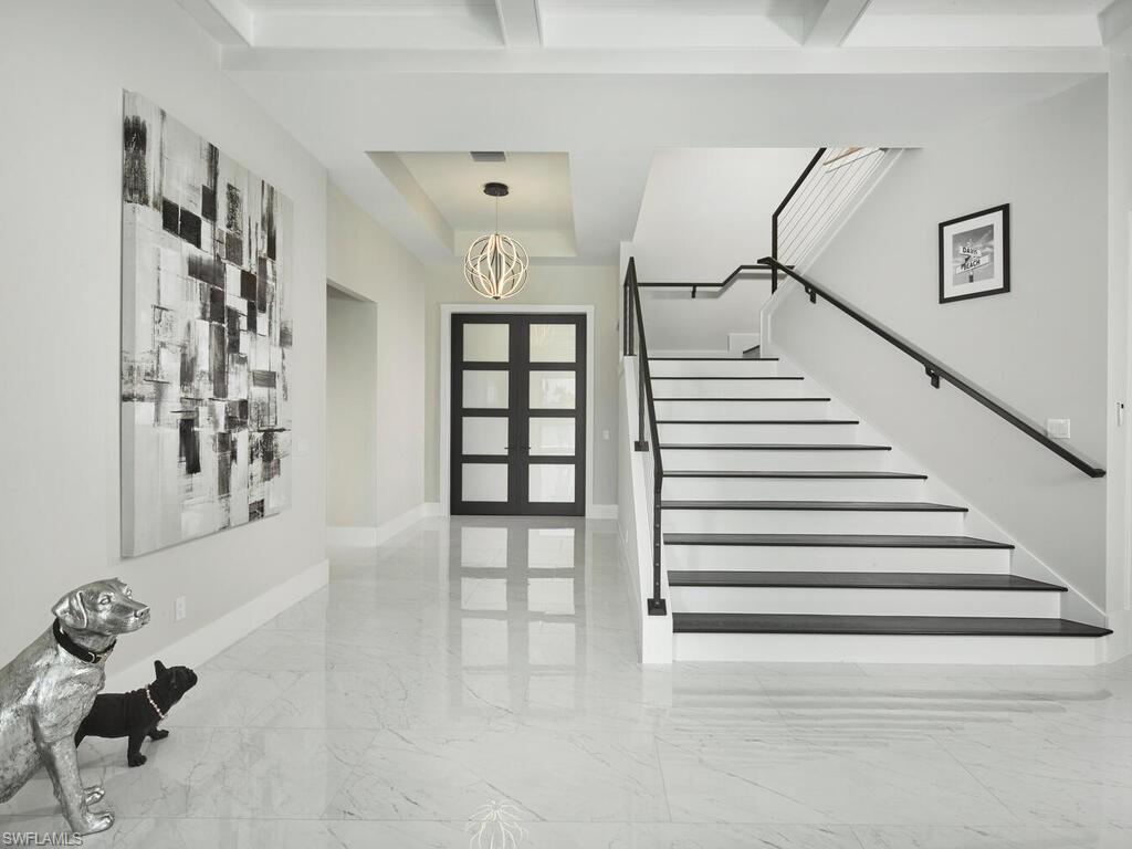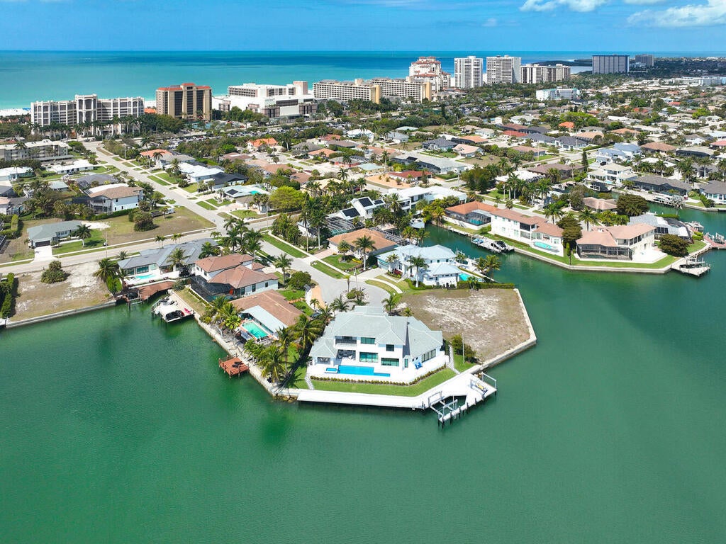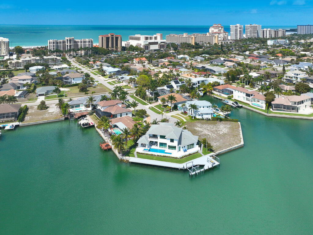 Experience the pinnacle of waterfront living at 999 Spruce Court. This magnificent, custom-built home located on a highly desirable tip lot offers 5 bedrooms plus den, 5 and half baths, 3 car garage, 169 of waterfrontage, spectacular wide water views and is only minutes from Marco Islands pristine white sand beach. Upon entering the home, you will immediately be impressed by the soaring ceilings, dramatic staircase, luxurious finishes, and stunning views. The gourmet kitchen features custom cabinetry, large center island, gas cooktop, and spacious walk-in pantry. The main-floor master suite is a private retreat with access to the lanai and spa-like ensuite bath with dual vanities, walk-in shower, and custom walk-in closet. Guests will enjoy the convenience and privacy of the spacious cabana bedroom suite on the main floor featuring water views, lanai access, and ensuite bath. The second story boasts a large family room with wet bar, 3 additional guest bedrooms with ensuite baths, and balcony. The main living space of the home opens seamlessly to the spacious lanai. The covered area of the lanai features an outdoor fireplace, summer kitchen, multiple seating areas, and the convenience of rolldown screens. Enjoy soaking up the Florida sunshine and relaxing in the beautiful pool and spa overlooking the water. The new dock (2026) and seawall (2021) with a 20,000lb lift and 6,000lb platform lift will delight boating enthusiasts and fisherman alike. The gorgeous, tropical landscaping and outdoor lighting create instant curb appeal. Do not hesitate to make this impressive home your slice of island paradise.