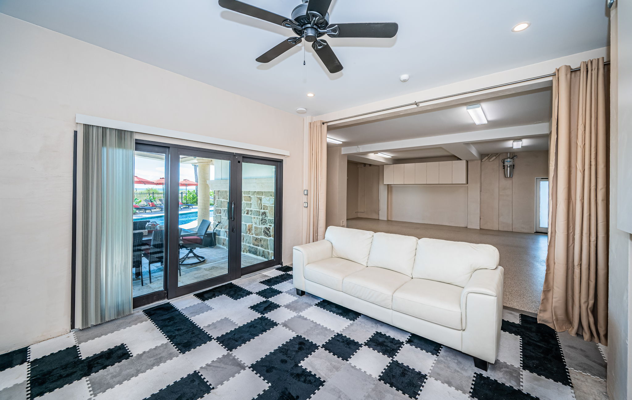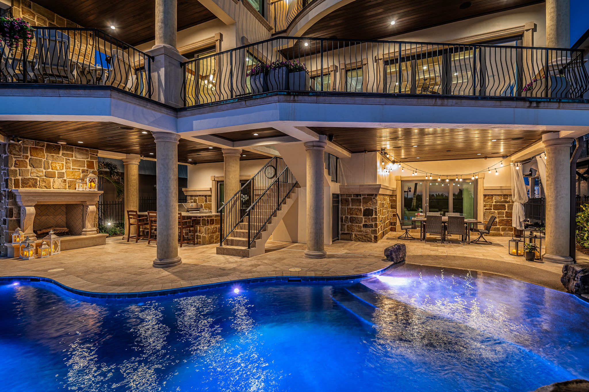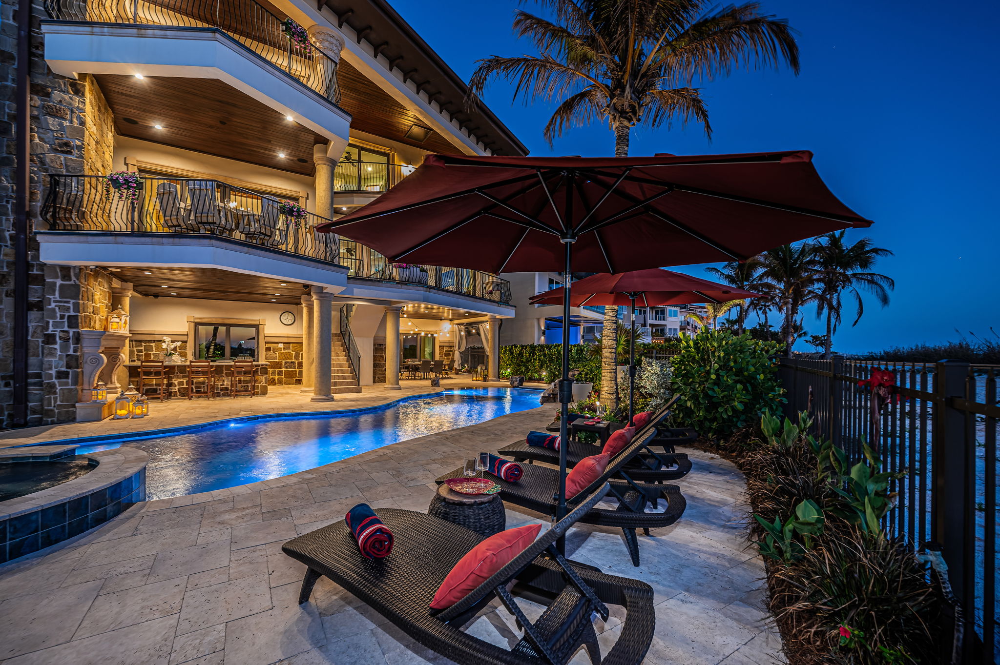 What happens when Tampa Bay’s premier architect, most accomplished structural engineer, and most respected builder come together? The result is an extraordinary beachfront residence that merges architectural brilliance, meticulous engineering, and beautiful state-of-the-art construction. Dan Dawson, Koly International, and Monogram Builders have created a modern 7719 sqft under one roof Gulf-front masterpiece where every detail has been carefully considered, tested, and refined. Balanced and cantilevered concrete engineering minimize columns and maximize sweeping Gulf views. Built on a foundation of 47 pilings, poured concrete structural columns, and poured concrete floors on every level, the home offers superior strength that is unmatched in the Tampa Bay area. Hurricane-rated windows and doors, and a roofing system engineered for the harshest coastal conditions help create a residence that is designed to last for generations. The impressive structural integrity is matched by luxurious, finely crafted finishes. Cast stone accents and custom exterior detailing set the tone, leading into a grand covered entry. Inside, you’ll find an open floor plan designed for Gulf-front living, with porcelain floors that echo the look of distressed Brazilian hardwood, level 5 drywall, intricate woodwork, designer lighting, custom ceilings, and integrated whole-house audio, lighting, and electronics. The gourmet kitchen is a chef’s dream – boasting expansive granite counters, custom cabinetry, double islands, two bar seating areas, Wolf / Subzero appliances, dual Miele luxury dishwashers, gas cooking, and a hidden pantry with built-in work center. The adjoining dining space opens to a covered beachfront balcony, while the Gulf-front living room offers coffered ceilings, a gas fireplace, and wide balcony access. A unique 3-stop glass elevator with custom hammered copper finish adds artistry to function. The beachfront owner’s suite is an indulging retreat, with luxe ceilings, a private balcony and a custom mahogany closet system. The spa-like bath contains a hammered copper soaking tub, dual vanities, cosmetics station, and a glass-enclosed rain shower. The four additional bedroom suites include two with Gulf-front balconies and two bedrooms with their own private terrace overlooking the Intracoastal Waterway. Step out back and discover a true beachfront oasis: a zero-entry PebbleTec pool and spa with cascading stone waterfall, expansive Travertine paver deck, 800 sq ft of covered outdoor living space with a built-in gas cooking center and bar, a stone-encased gas fireplace, and separates area for dining and entertaining. With additional features including a 22KW Generac gas generator, dual Rinnai tankless water heaters, central vacuum system, and countless luxury details, this home delivers an uncommon luxury Gulf front living experience built with unparalleled precision, quality and elegance. Dimensions are estimates, buyer to verify.