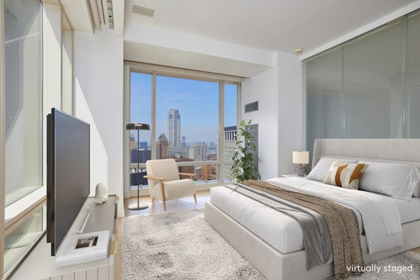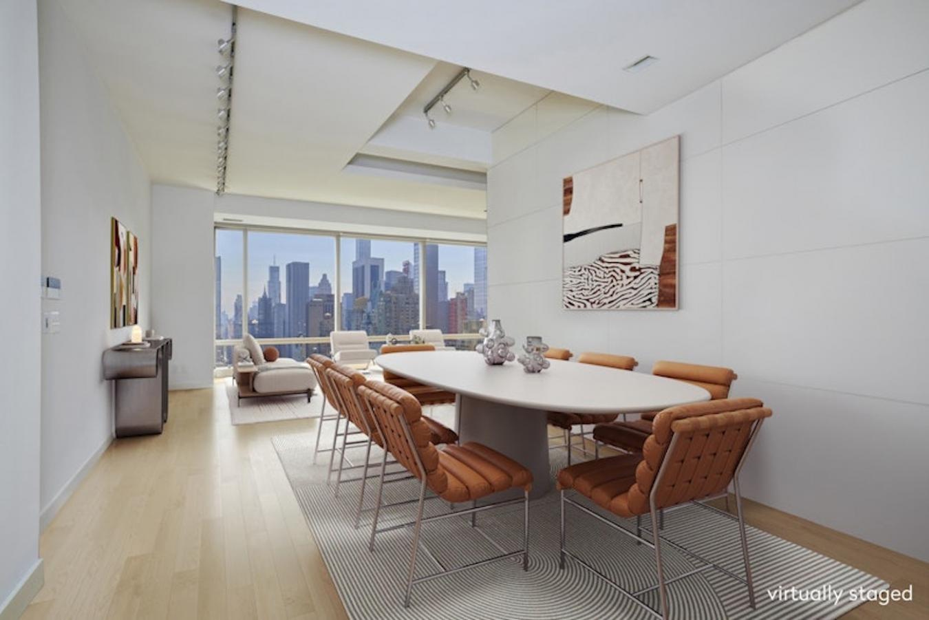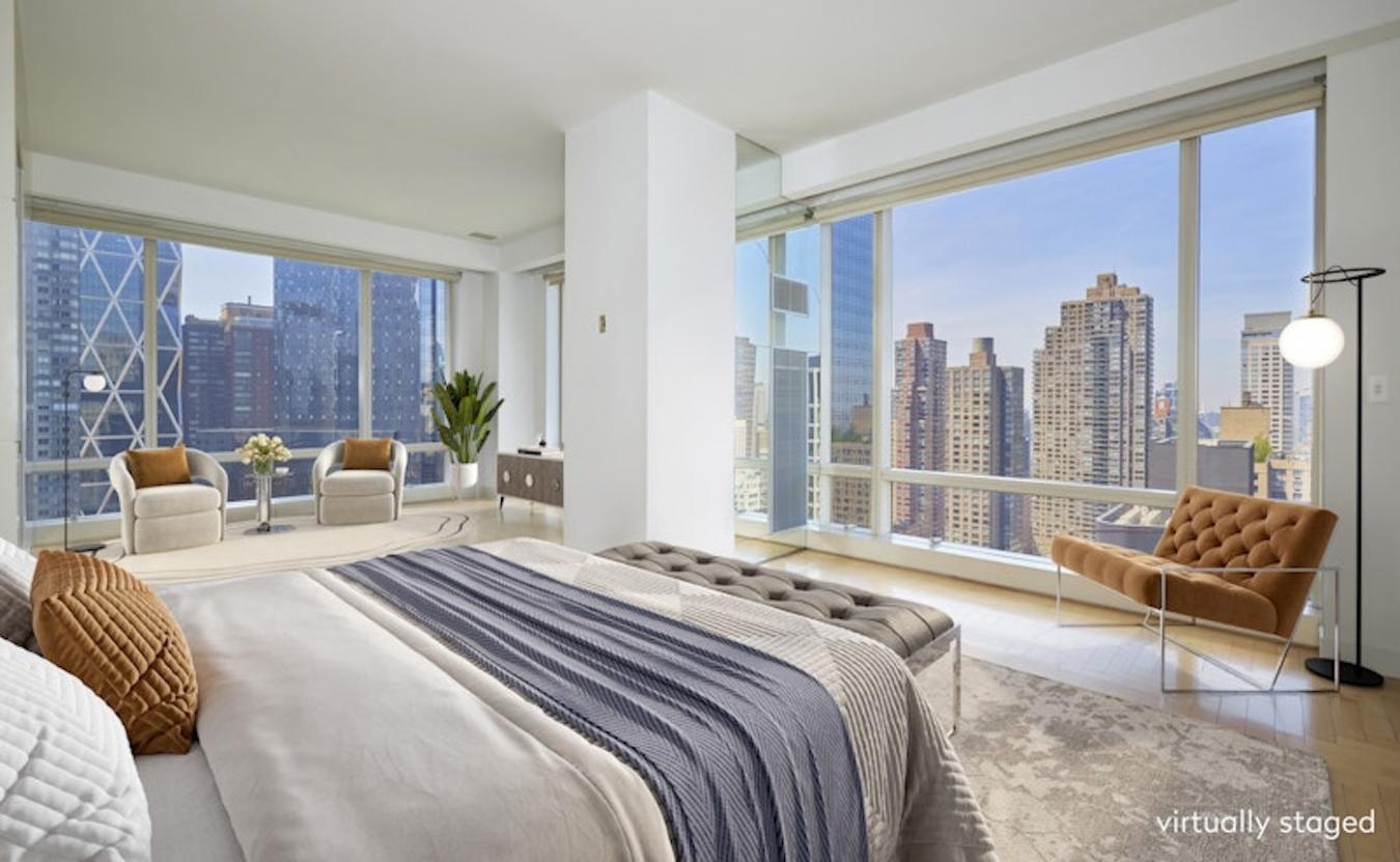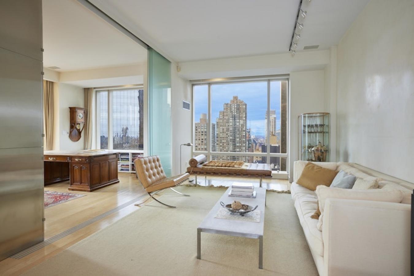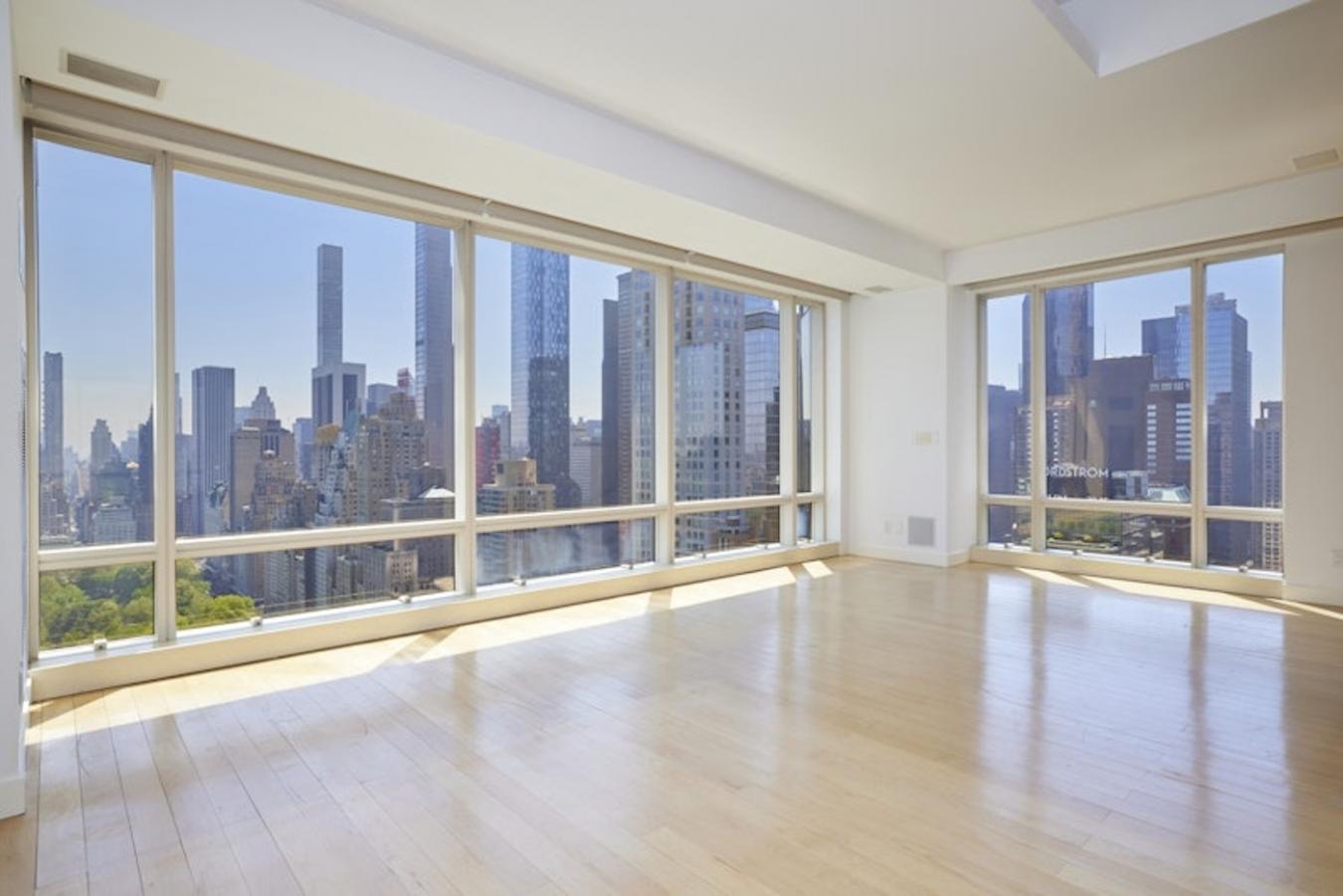 Welcome to unit 36D at 1 Central Park West, a stunning 2,525 square foot apartment that epitomizes luxury and sophistication. This recently renovated residence spans the entire end of the building, offering unparalleled views in three directions: Southeast, South, and West. Originally a 4-bedroom, 4.5-bath layout, the open-concept apartment now features 2 bedrooms, 2.5 baths, a dining room, and a den. Given its expansive space, views, and world-class amenities, it is truly a rare find. The homes grand 26-foot living room directly overlooks Central Park, providing a breathtaking natural panorama. The impressive, double primary bedroom spans 27 feet by 15 feet, featuring two full baths and four walk-in closets, including a full-size safe. The South rooms offer views over Columbus Circle, while the West rooms face the Hudson River, delivering stunning sunset vistas. Floor-to-ceiling windows throughout the apartment, with some ceiling heights reaching up to 11 feet, are perfect for natural light, with electric shades allowing for privacy with ease. A high-end sound system integrated into all rooms is included in the purchase. Its sunlit, stainless steel chefs kitchen is a delight for any culinary enthusiast, offering a Sub-Zero fridge and Miele appliances. What makes the unit even more unique is its versatile design. An entire wall of stainless steel cabinets in the office can remain or be removed with ease, and a sliding glass wall between insert rooms provides additional options for space usage.