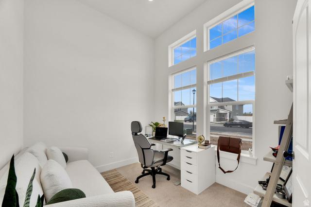 Located in the 55 community of Fields at Indian Creek, this single home is the largest model in the neighborhood and offers a spacious open layout with over 3,000 square feet of living space. A dramatic foyer with soaring ceilings welcomes you inside and leads to a private library or study featuring custom cherry built in shelving to create a comfortable space for relaxing with a good book.The main living area features vaulted ceilings, LVP flooring, plantation shutters, and a cornered gas fireplace. The space flows openly into the kitchen and eating areas, creating an inviting layout suited for both everyday living and entertaining.The kitchen includes quartz countertops, subway tile backsplash, wall oven/microwave, and a large center island with slide-in range and statement vent hood. The adjacent dining area features a built-in serving buffet cabinetry and quartz countertop that functions as a butlers pantry while providing additional storage and serving space.The main level provides convenient first floor living with a spacious primary suite featuring two walk-in closets and an en-suite bath with dual vanities and an oversized tiled shower with built in bench seating. A second bedroom and full bath are also located on this level. The laundry room is positioned between the hallway and the primary suite, allowing easy access from both areas.Upstairs, a large loft provides additional living space along with a third bedroom and full bath, creating a pleasant space for guests. This level also includes a substantial unfinished insulated storage area with built in workbench offering excellent space for storage, hobbies, or workshop use.Outdoor access from the kitchen leads to a deck and stone patio.Additional features include an extra wide two car garage, central vacuum system, generator hookup, and beadboard panel styled interior doors throughout.Residents of Fields at Indian Creek have access to community amenities including a clubhouse, fitness center, pool, pickleball and bocce courts, and walking trails. A seamless blend of timeless elegance and refined detail, this home offers a truly elevated living experience.