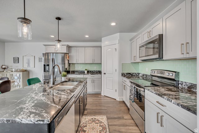 Spacious 3-bedroom home in the amenity-rich Quailhill community with 3,623 square feet, an unfinished walkout basement, and room to grow. The three bedrooms are generously sized - the primary suite is large and well-appointed with its own bathroom and closet, while the other two share a jack-and-jill bath. Updated finishes throughout including quartz countertops and LVP flooring. Covered patio and deck off the back. Solar panels included. The Quailhill neighborhood has it all: playgrounds, dog run, and pickleball courts. 2-car garage. Built in 2019. Thunder Ridge Elementary, Vista Heights Middle, and Westlake High all within 5 minutes. Easy access to Pioneer Crossing and Mountain View Corridor.