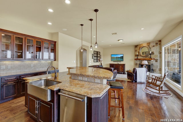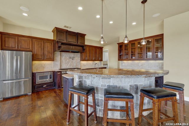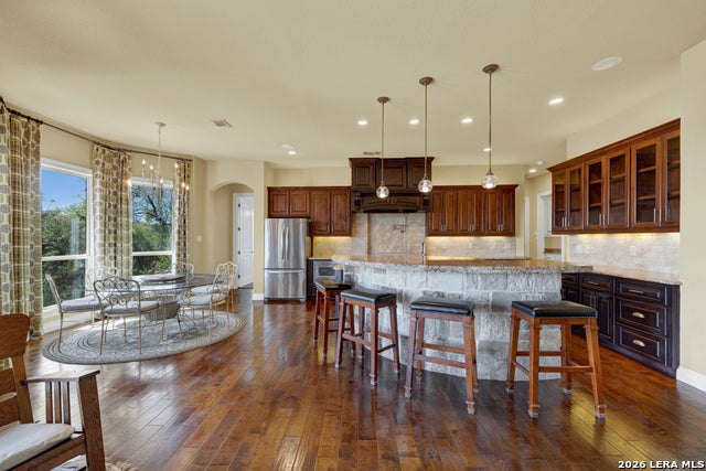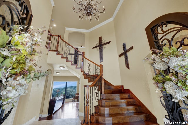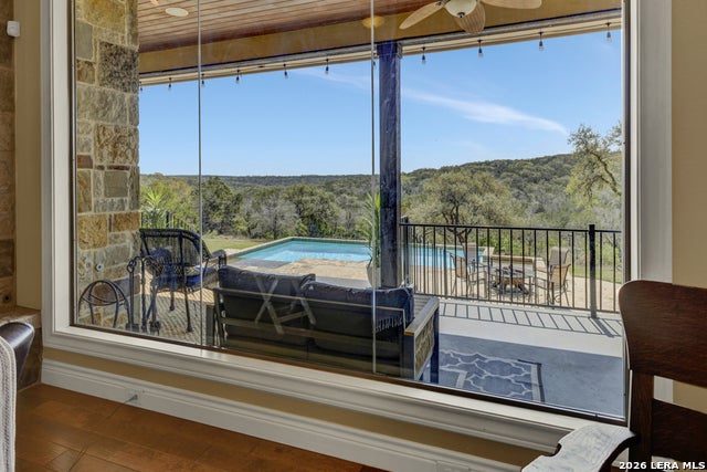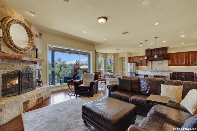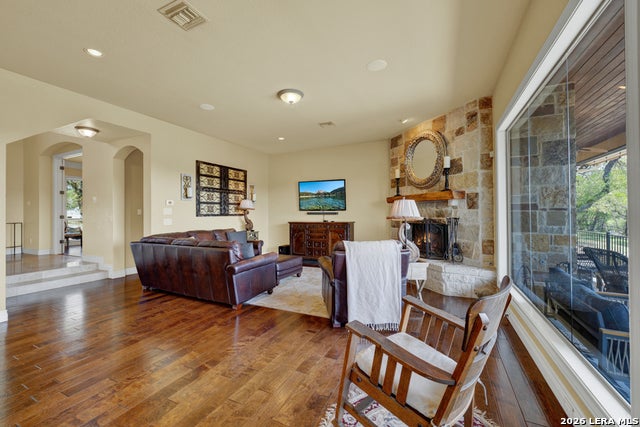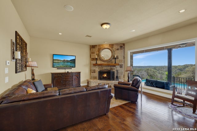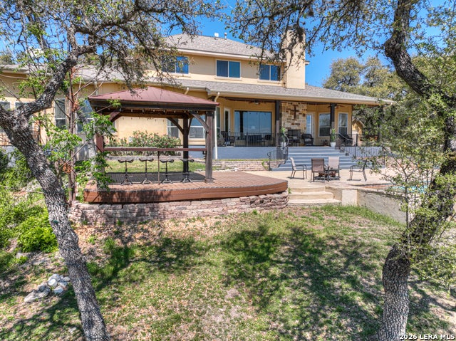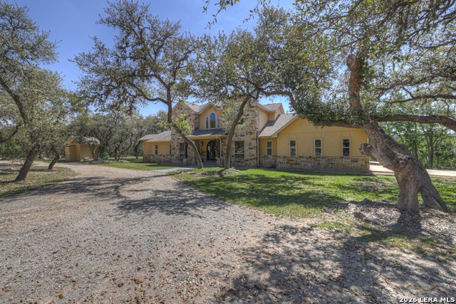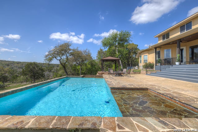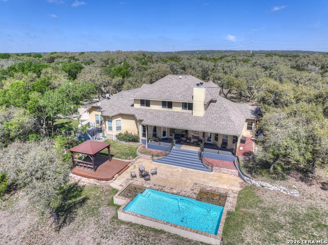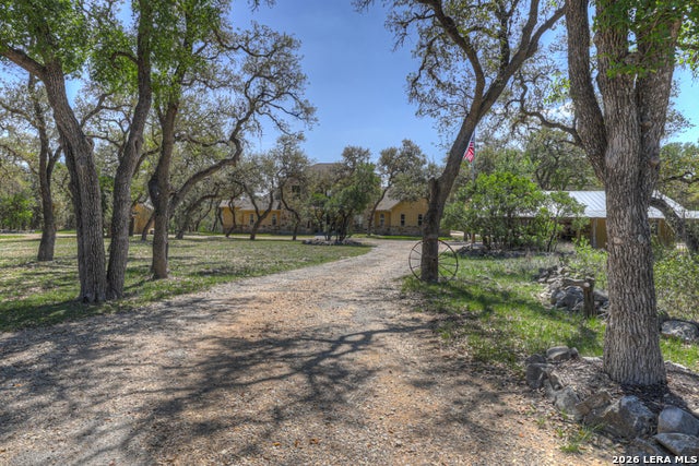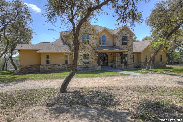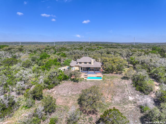 Timeless Hill Country Elegance on 10 secluded Acres with 5 acre private Guadalupe River access. Perched on a scenic bluff in the exclusive Elm Creek Ranch Estates in New Braunfels, this exceptional custom home spans 10 private acres and offers breathtaking panoramic views of the Texas Hill Country along with a rare sense of privacy and tranquility. Thoughtfully designed around the natural landscape, the home blends timeless architecture with its stunning surroundings. Enhancing the lifestyle appeal, residents with 10 or more acres, enjoy exclusive gated access to a private 5-acre Guadalupe River park, providing a serene escape for relaxing, kayaking, fishing or enjoying the natural beauty of the river, an uncommon and highly sought-after amenity in the Hill Country. Step through custom glass front doors into a grand formal entry that sets the tone for the homes refined yet relaxed style. The expansive floor plan features 6 bedrooms, including a dedicated office, a spacious owners suite with a large walk-in closet, and a separate attached in-law suite thoughtfully designed for privacy and comfort. The in-law suite includes its own living area, private patio, large walk-in closet, and separate exterior entrance, making it ideal for multigenerational living, long-term guests, or private accommodations. The home offers 4 full baths and 1 half bath, with walls of windows framing sweeping Hill Country views from nearly every room. Open-concept living spaces are perfectly suited for entertaining, anchored by a custom chefs kitchen featuring a gas range, built-in microwave, wine refrigerator, and generous gathering space. Designed for comfort and convenience, the home includes two laundry rooms, one upstairs and one downstairs. Outdoors, enjoy a resort-style pool, covered patio, and peaceful wildlife sightings, in your own private Hill Country sanctuary. Additional features include two storage sheds, a workshop, and covered RV parking with dedicated 30amp plug in. All of this, just minutes from New Braunfels and historic Gruene. This home offers the perfect balance of secluded luxury and Hill Country living. Private showings for qualified buyers available by appointment.
