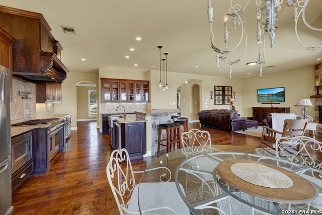 Timeless Hill Country Elegance on 10 secluded Acres with 5 acre private Guadalupe River access. Perched on a scenic bluff in the exclusive Elm Creek Ranch Estates in New Braunfels, this exceptional custom home spans 10 private acres and offers breathtaking panoramic views of the Texas Hill Country along with a rare sense of privacy and tranquility.